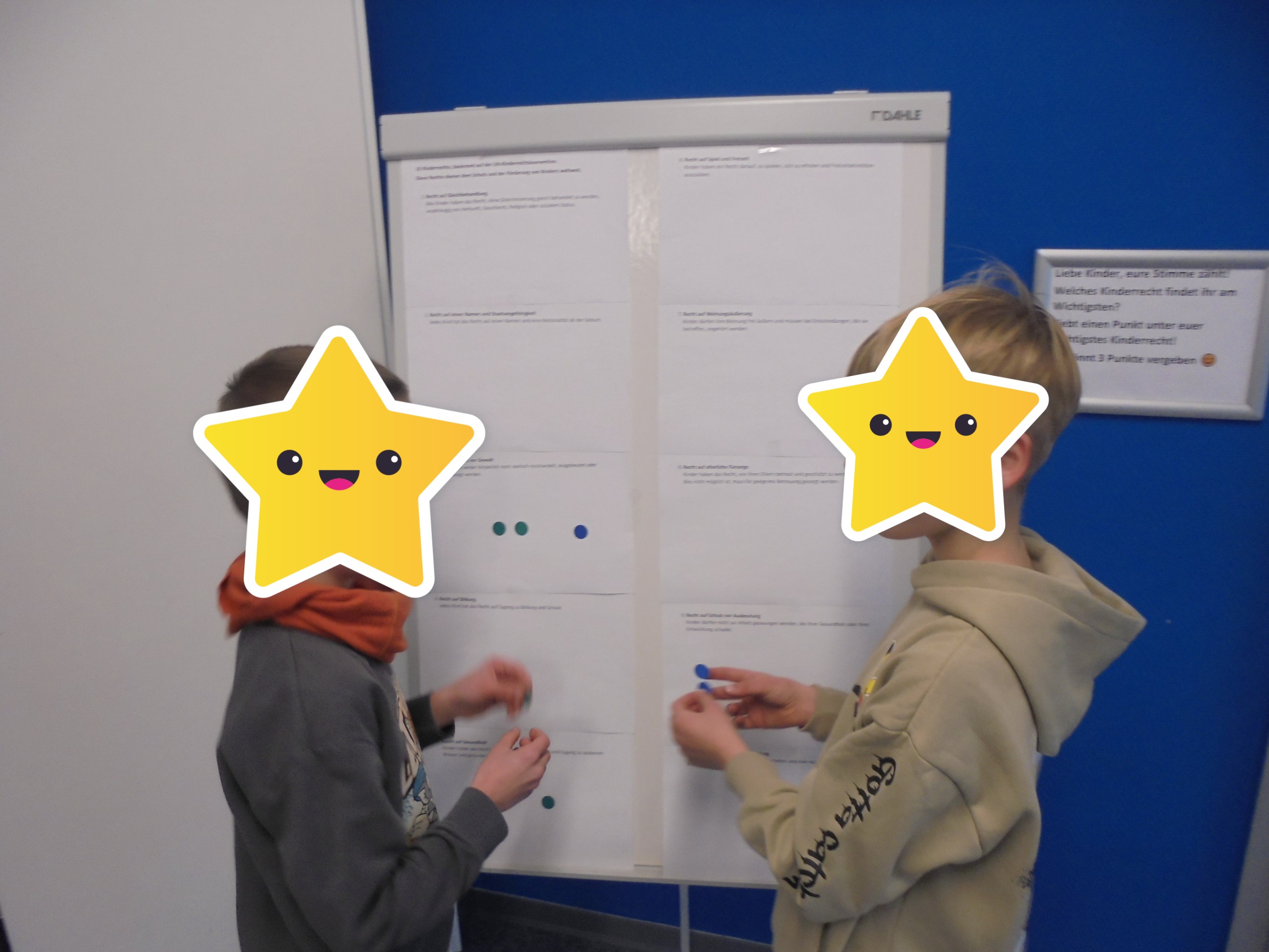 Am Mittwoch dem 20.11.2024 hatten die Kinder und Eltern anlässlich des 35ten Jahrestages der UN-Kinderrechtskonvention sich einen kleinen Input bezüglich dieses Themas zu holen. Sowohl die Kinder, als auch de Eltern hatten die Chance ihre Meinung Kund zu tun, welche Kinderrechte für sie am "wichtigsten" sind. Die Veranstaltung war jedoch nur ein Startschuss, um das Thema Kinderrechte einzuleiten, das wir mit den Kindern weiter verfolgen werden.