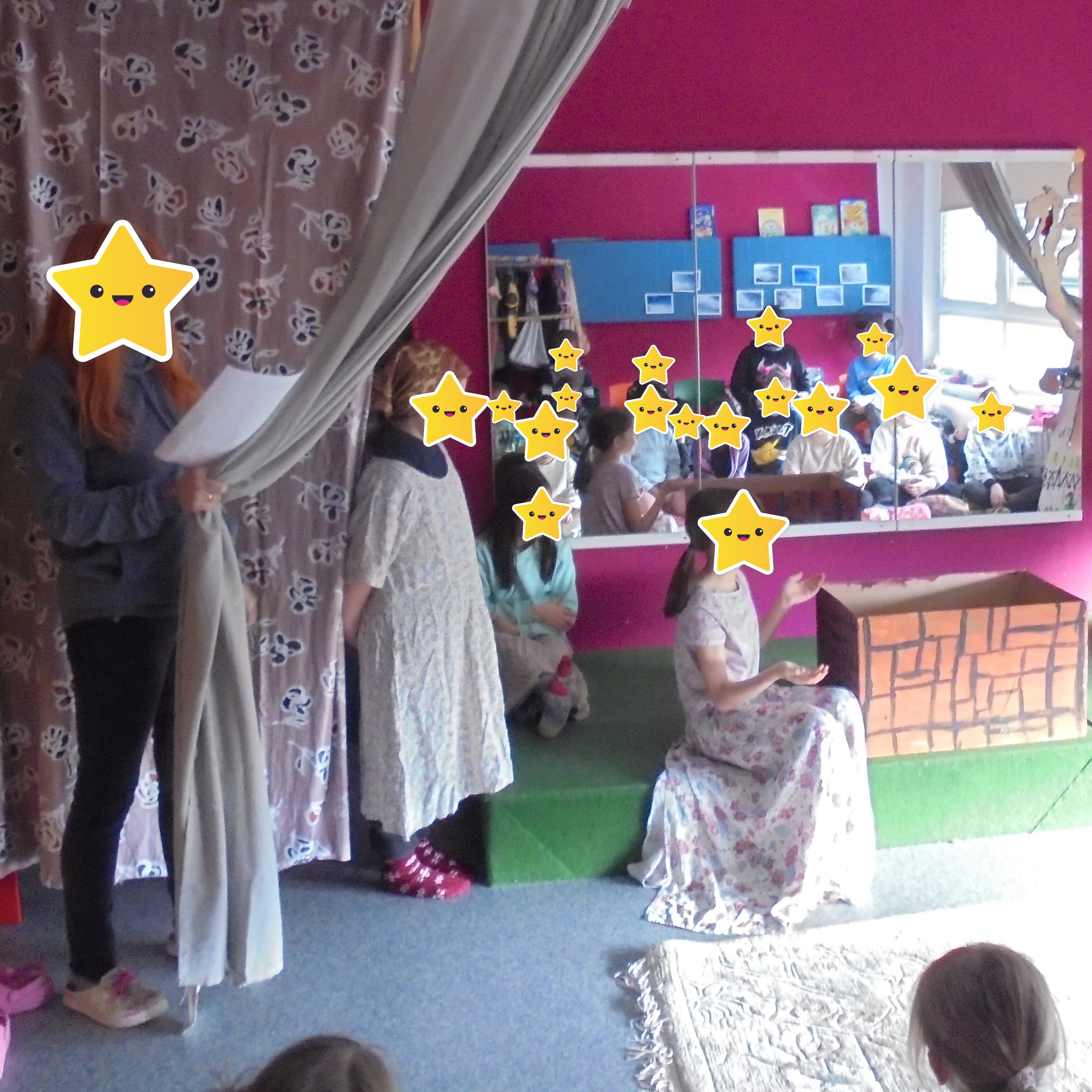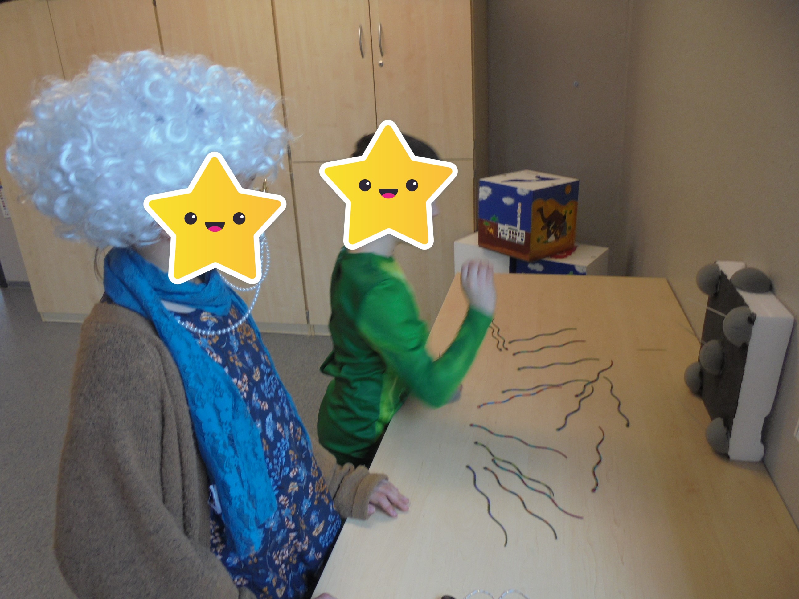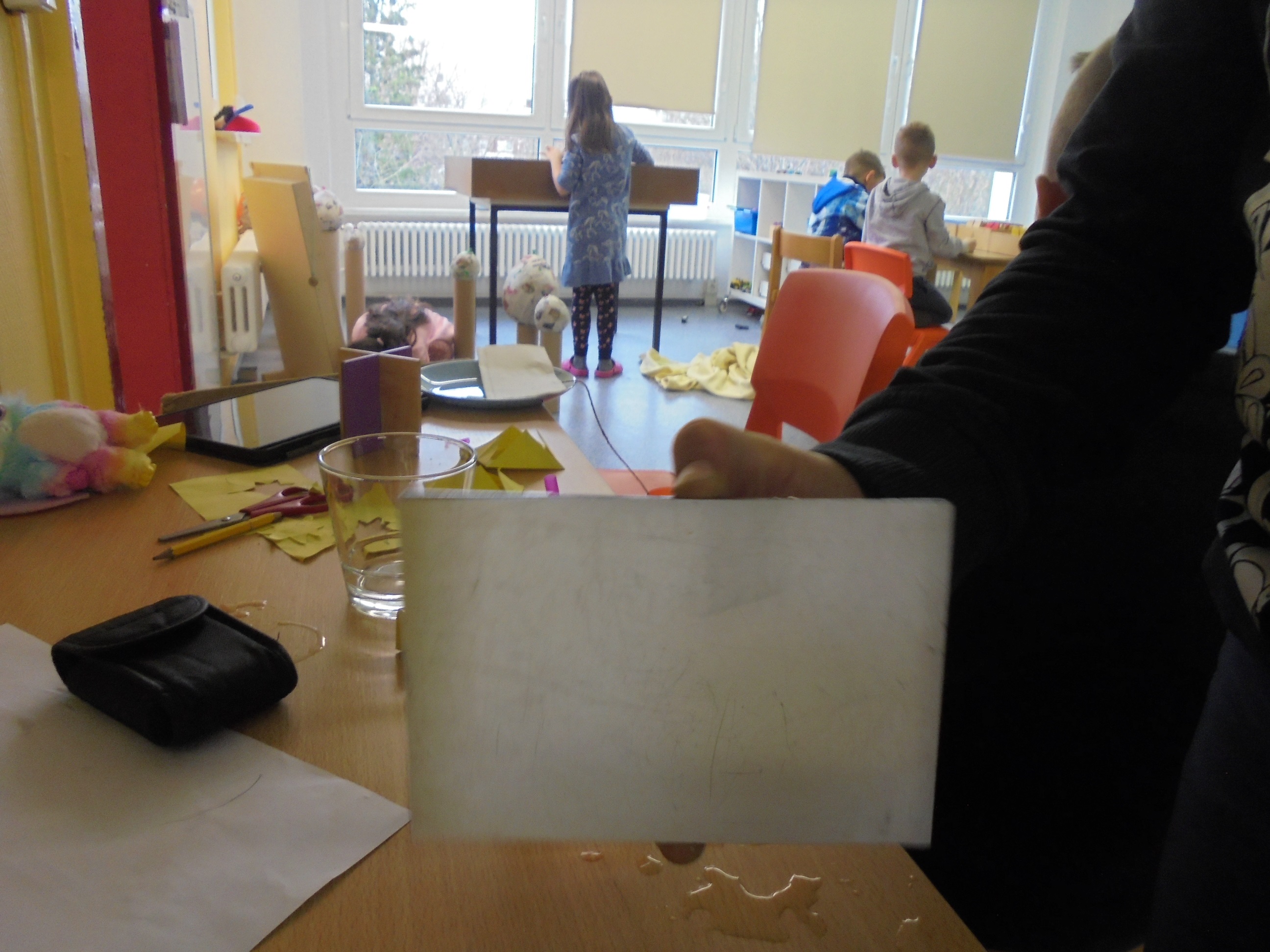 In den Winterferien beschäftigten sich die Kinder mit unterschiedlichen Themen. Sie konnten sich im Theaterraum an dem Märchen Frau Holle ausprobieren oder im Kreativraum Bühnenrequisiten basteln. Darüber hinaus hatten sie die Möglichkeit gemeinsam ihre eigene Stadt im Bauraum zu bauen, oder die Frage, wer der/die beste Tänzer/Tänzerin ist im direkten Wettstreit klären. Wer auch dabei keinen Anklang fand, konnte selbst mit Wasser und Eis experimentieren und z.B. die Frage klären, was passiert, wenn man Salz auf Eis gibt oder ob Wasser auch nach oben klettern kann.