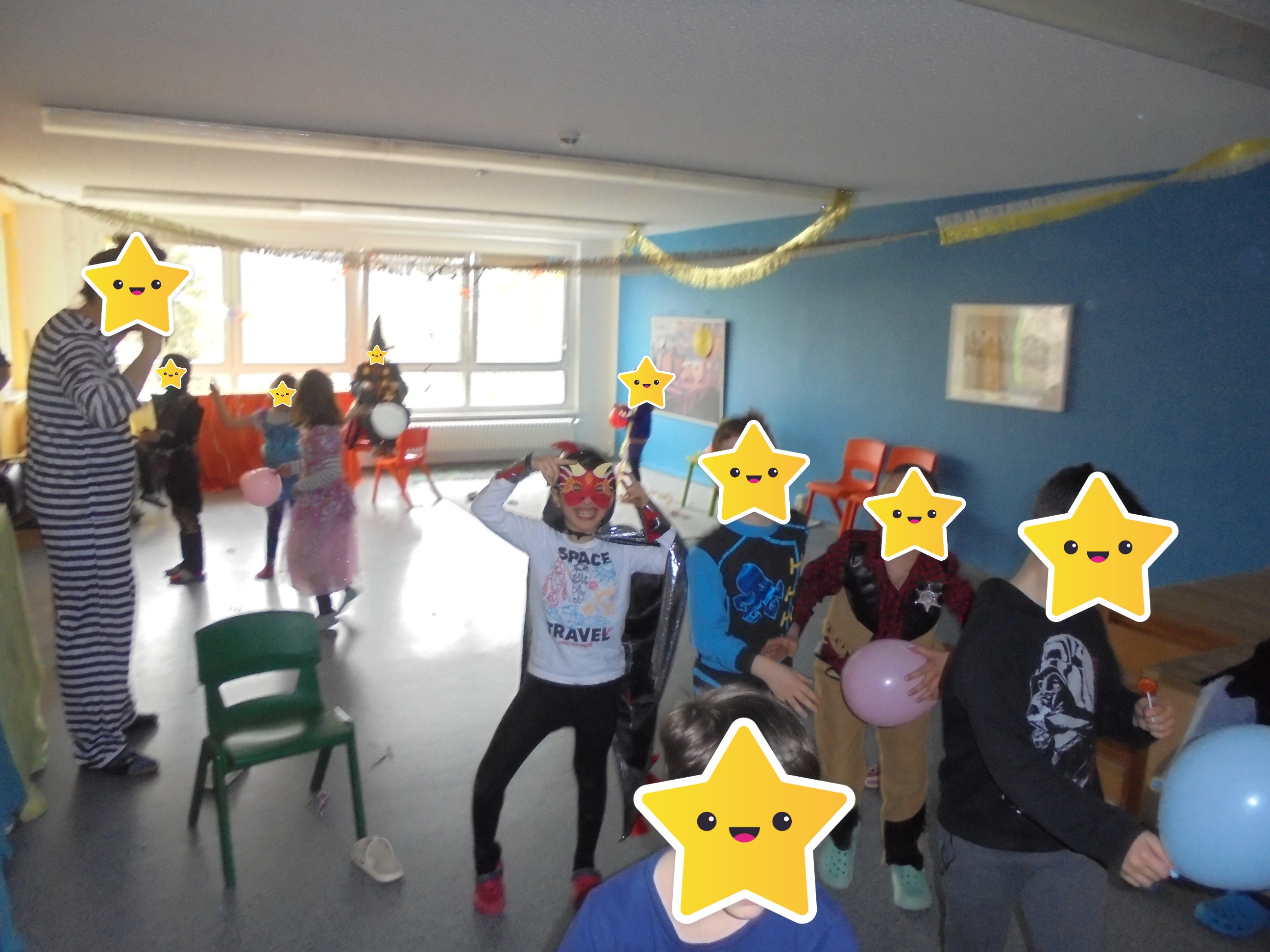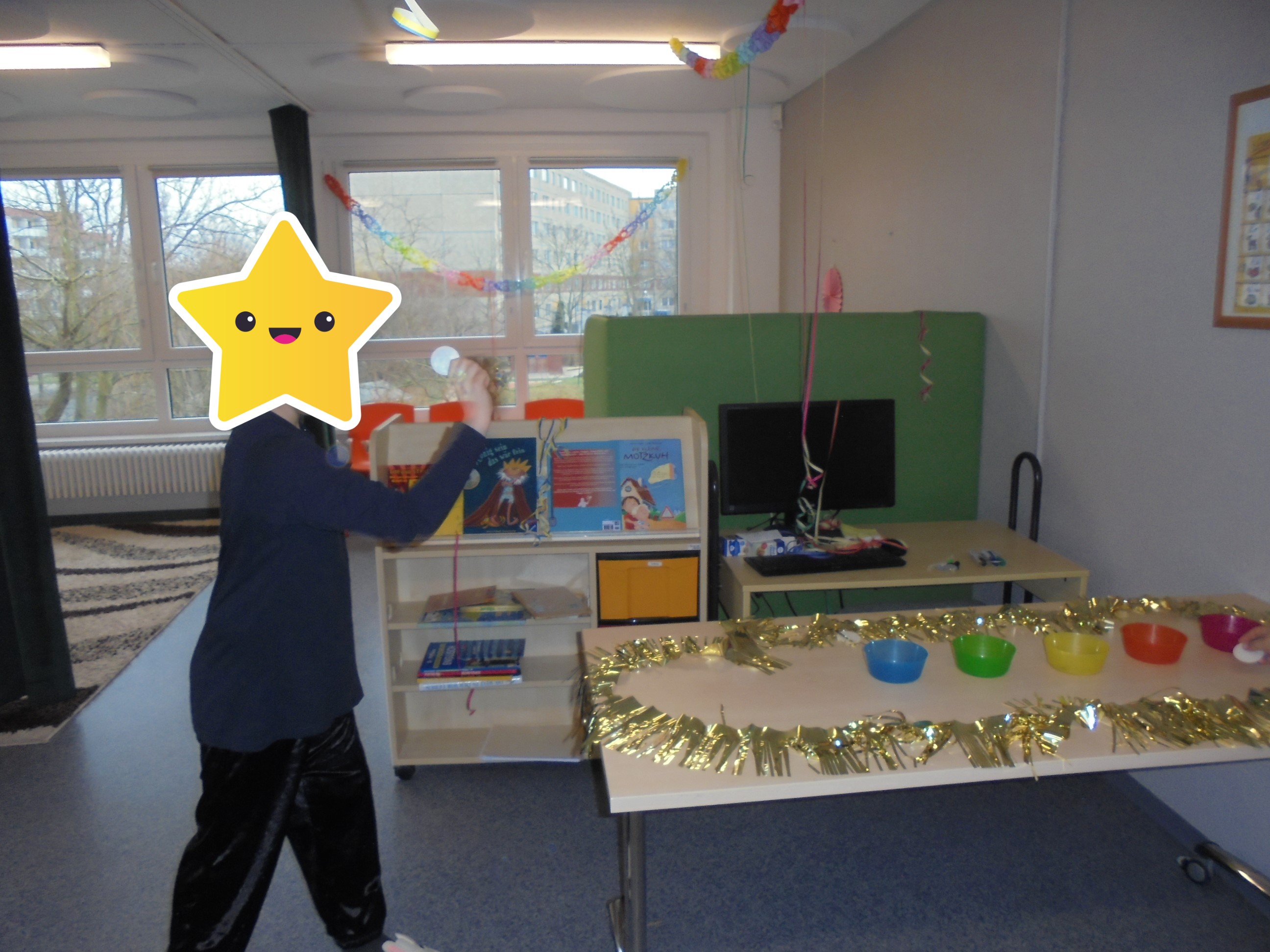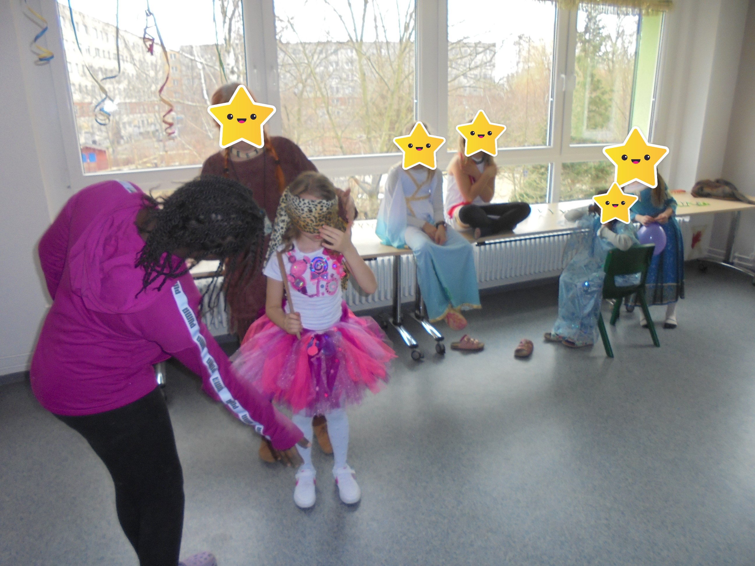 Am Mittwoch dem 12.02.2025 feierten wir gemeinsam mit den Kindern den Fasching. Neben vielen Süßigkeiten und Mini Pfannkuchen, gab es auch viele lustige Spiele, bei denen die Kinder ihr Geschick unter Beweis stellen konnten. Beim Topfschlagen mussten sie sich im Dunkeln orientieren und den besagten Topf, der Süßigkeiten verbarg finden. Im Bauraum gab es Tanzspiele und eine Tanzfläche. Im Sportraum standen sie vor der fast unmöglichen Aufgabe ganze (Spielzeug-)Autos nur mit Spagetti oder Toilettenpapier zu bewegen. Und im Sprachraum konnten die Kinder ihre Fähigkeiten im Oblaten und Speerwurf trainieren.