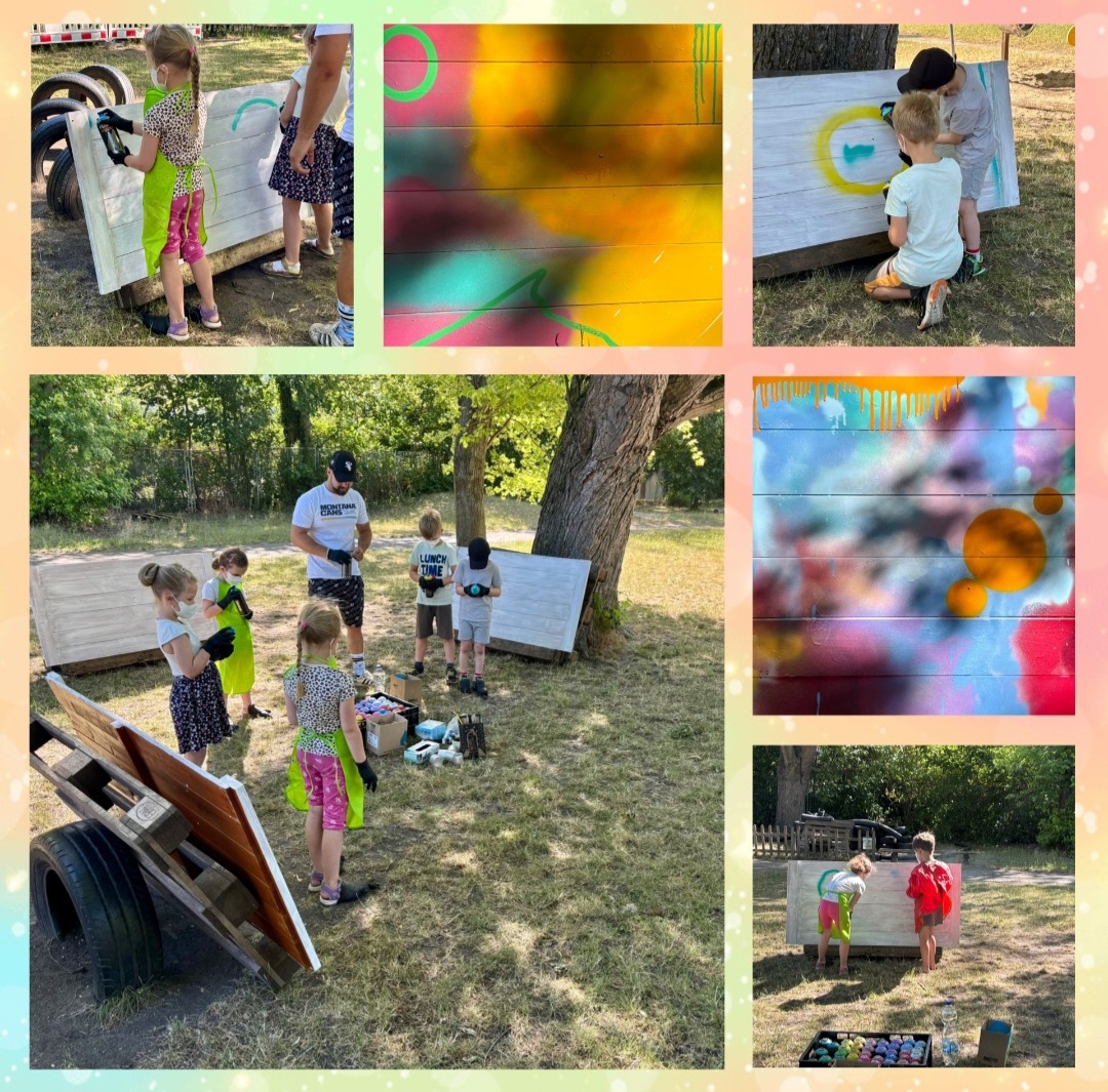 Gemeinsam mit den Eltern haben unsere Vorschüler ein ganz besonderes Abschlussgeschenk gestaltet: Ein buntes Hochbeet, das sie selbst mit Spraydosen kreativ dekoriert haben!