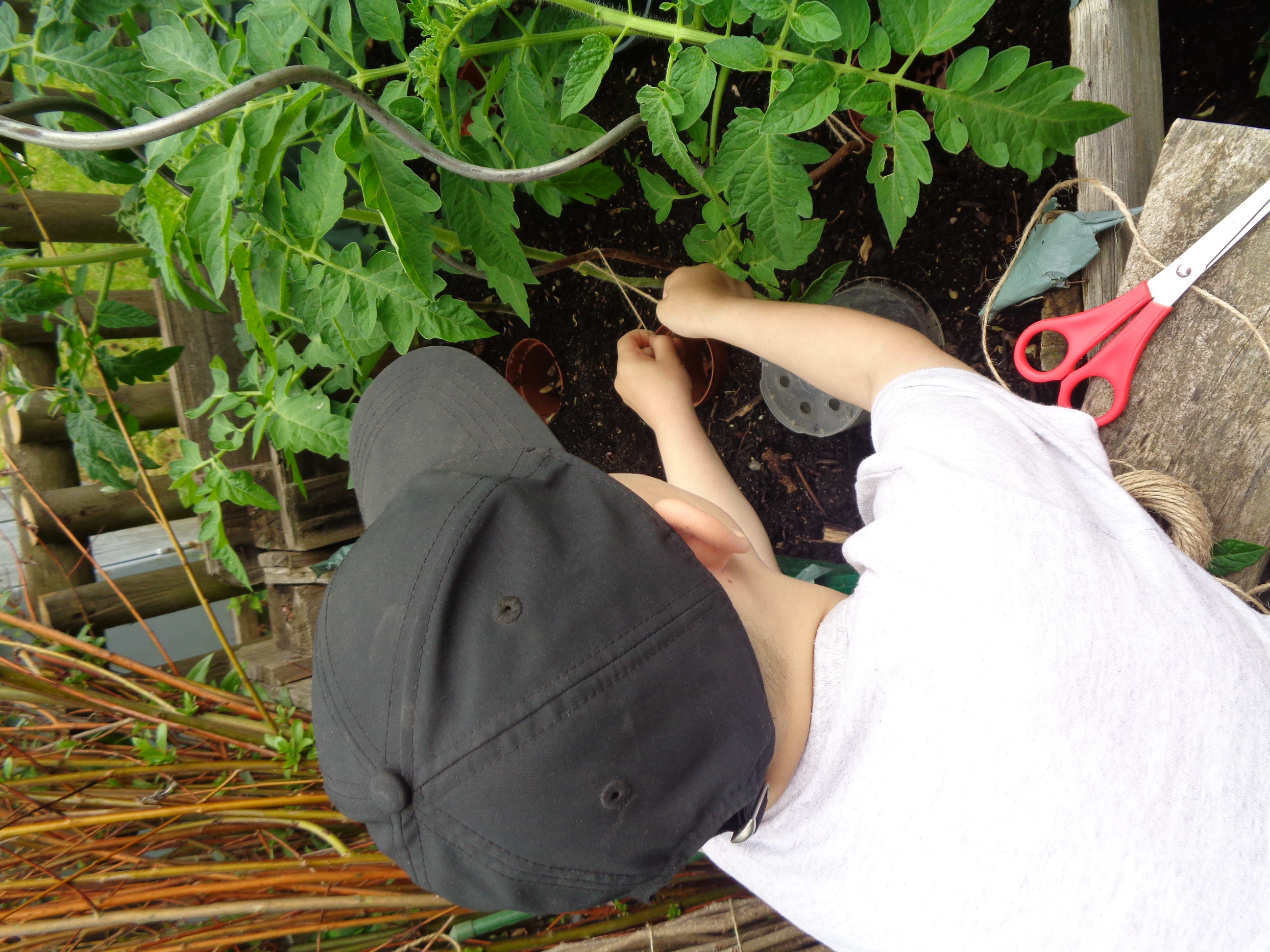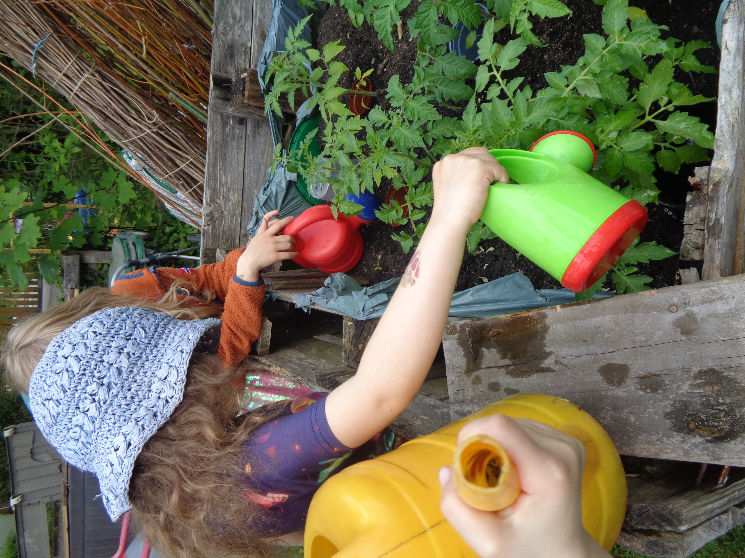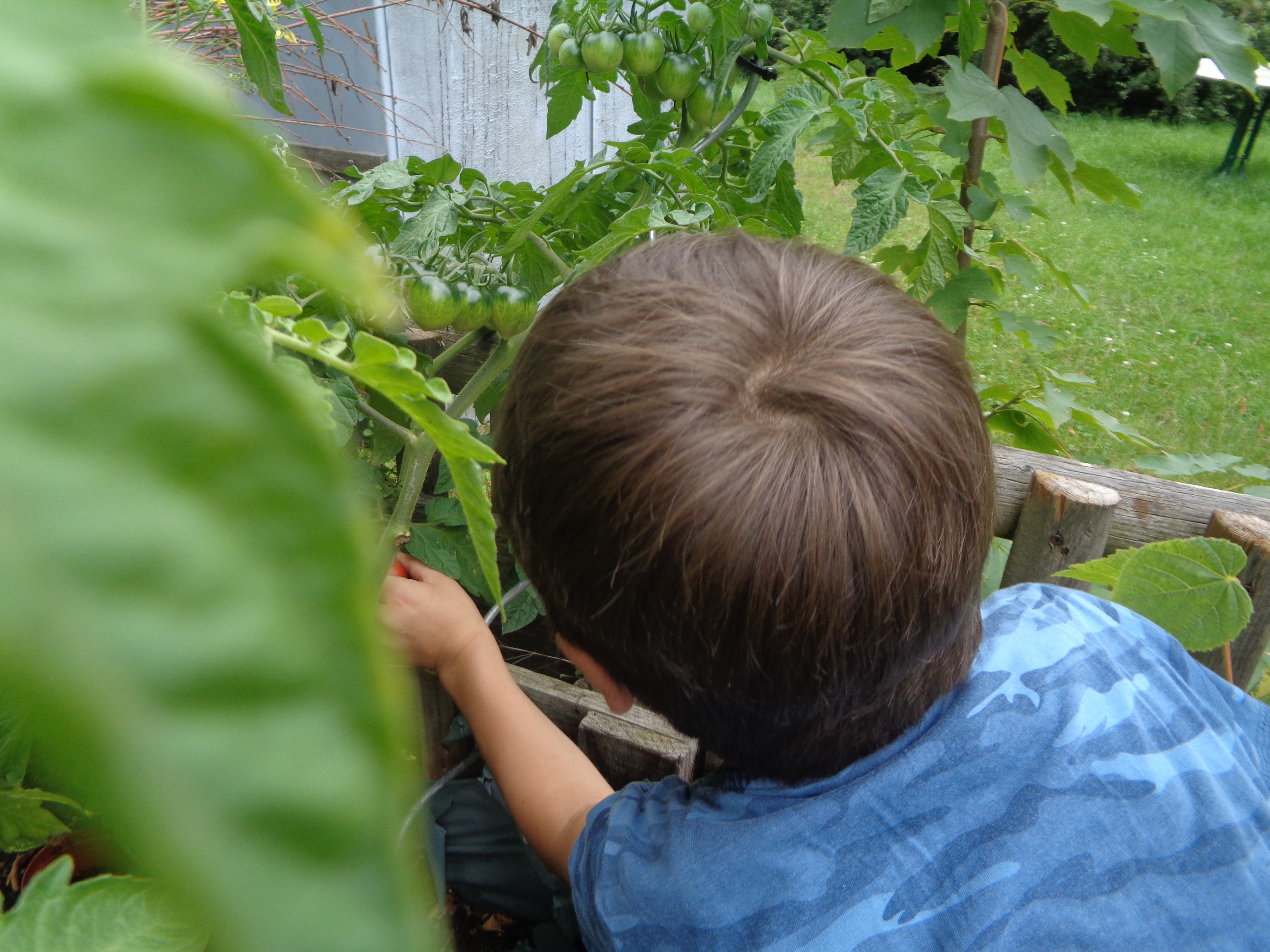 Die Kinder haben das Wachsen von Tomaten- und Gurkenpflanzen verfolgt. Nach der Zeit der Pflege können nun die ersten Tomaten geerntet werden. Egal, ob gelb oder rot, sie schmecken alle ganz lecker.