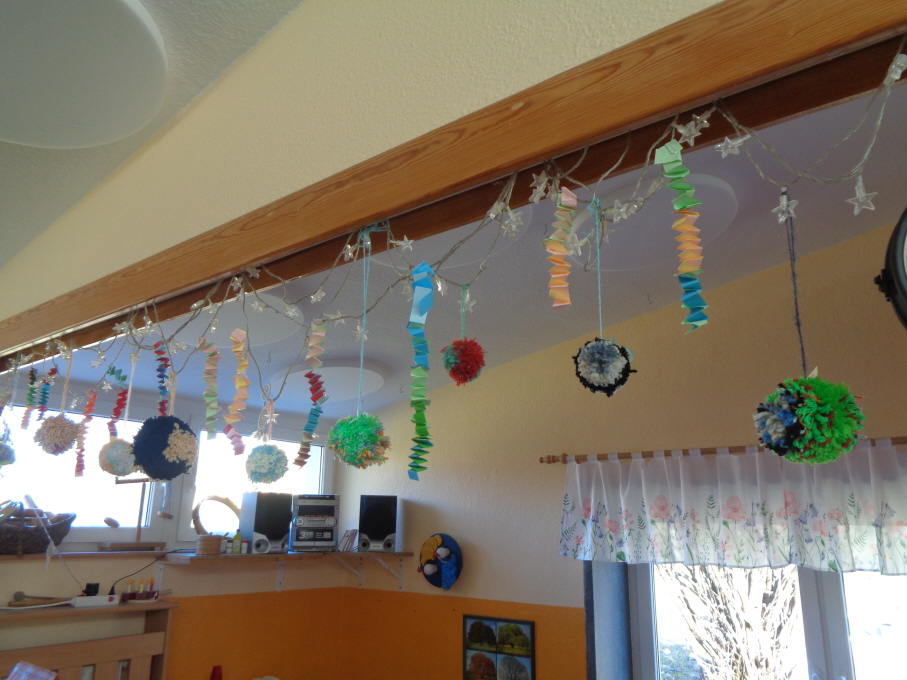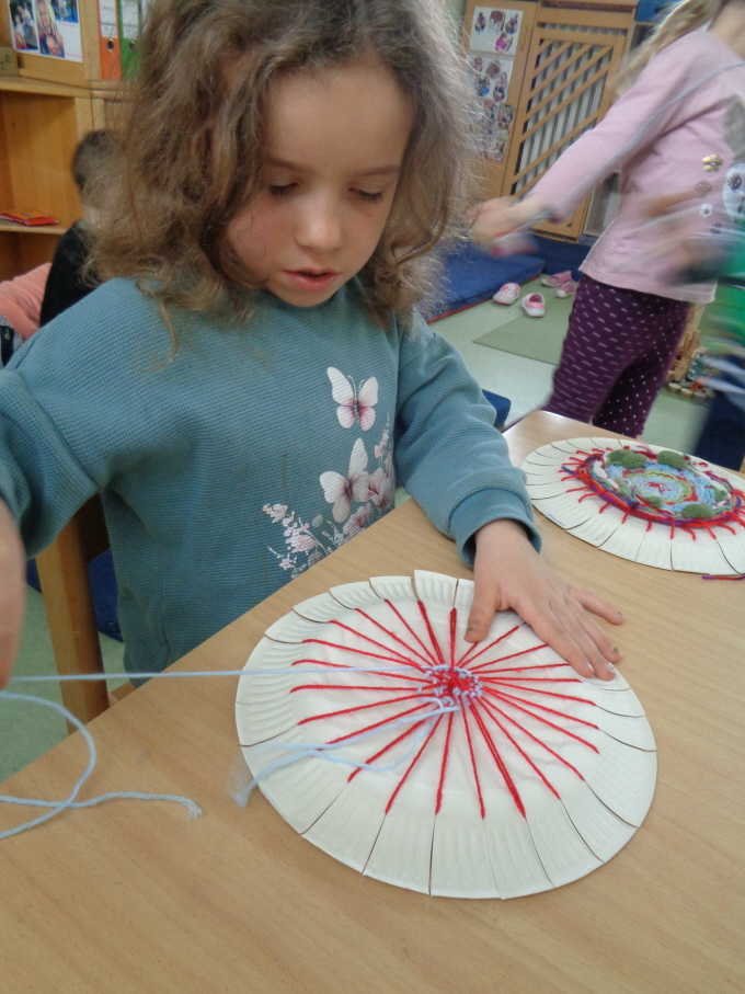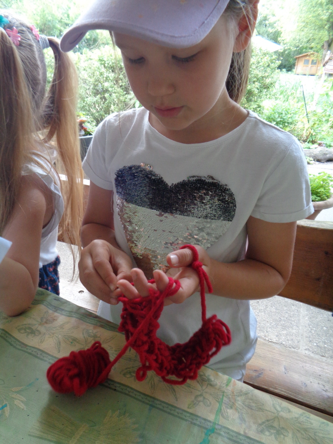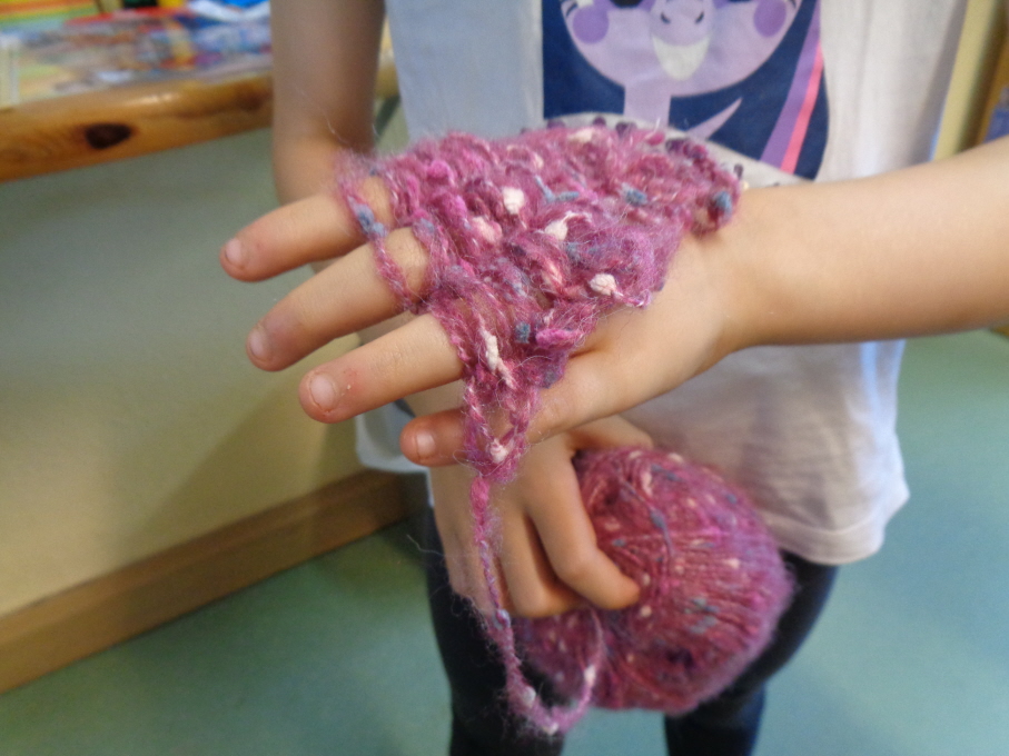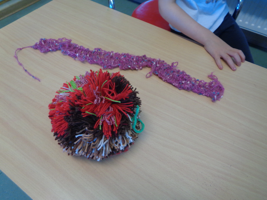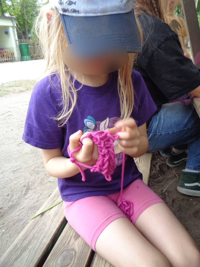 Im letzten Kita-Jahr zogen sich kreative Angebote wie ein roter Faden durch den Kita-Alltag. Die Kinder waren immer schnell dabei, wenn es um neue Ideen zum Ausprobieren ging. Sie haben dabei verschiedene Techniken kennengelernt, wie z.B. Weben, Knüpfen oder Fingerstricken. Besonderen Spaß machte das Herstellen von Bommeln in jeder Größe. Wir verarbeiteten dabei neue Wolle, aber auch Wolle, welche vorher ein Schal, Pullover oder auch ein Handschuh gewesen ist. Somit erlebten die Kinder Nachhaltigkeit und Wiederverwendung von Materialien. An dieser Stelle vielen Dank an die Eltern, Großeltern und alle anderen Helfer für die Bereitstellung der Wolle, es hat nie an Nachschub gefehlt. Das Projekt hat die Kreativität, Feinmotorik, Geduld und das Sozialverhalten gefördert, auch der Spaß kam dabei nicht zu kurz :-)