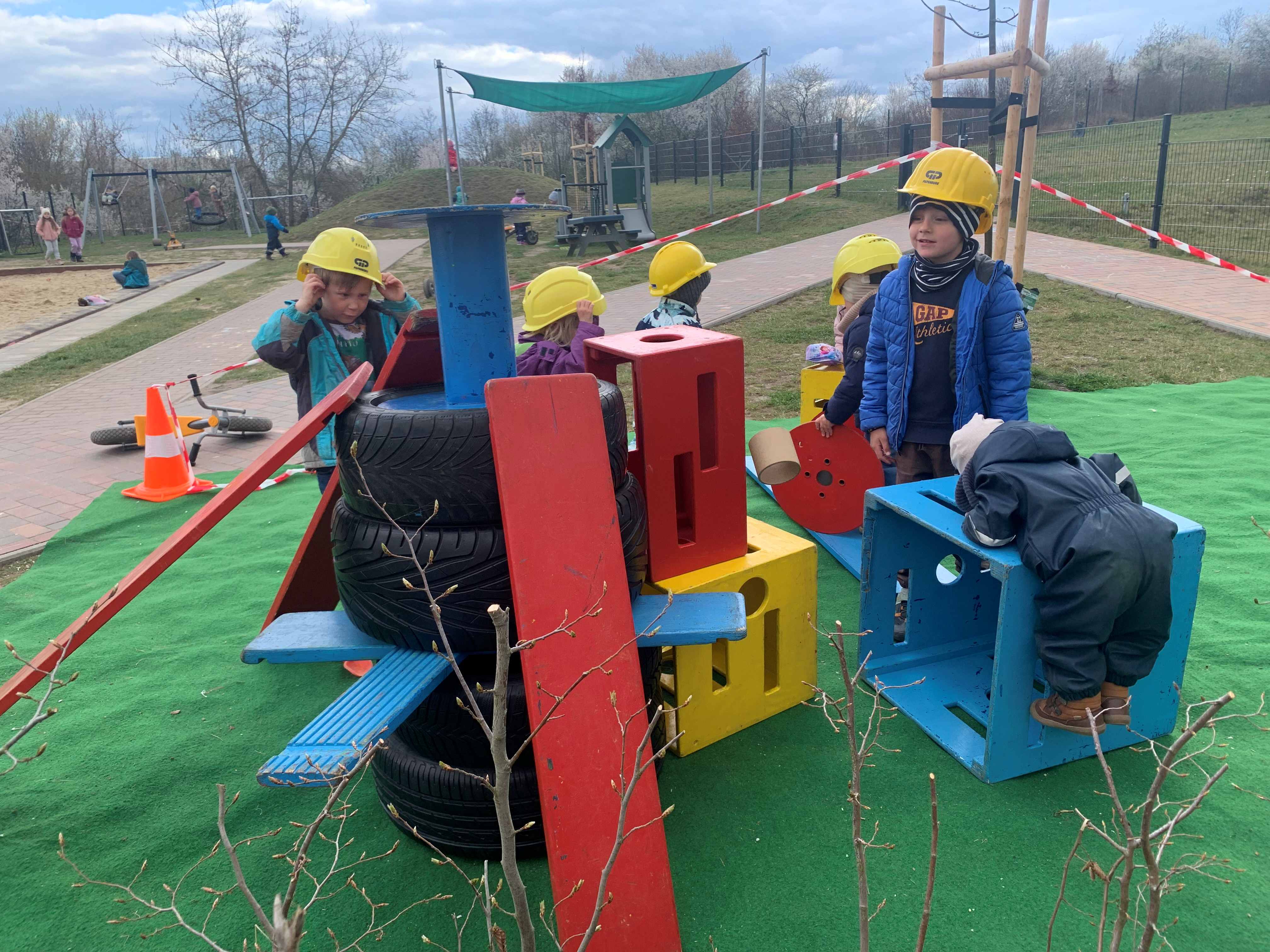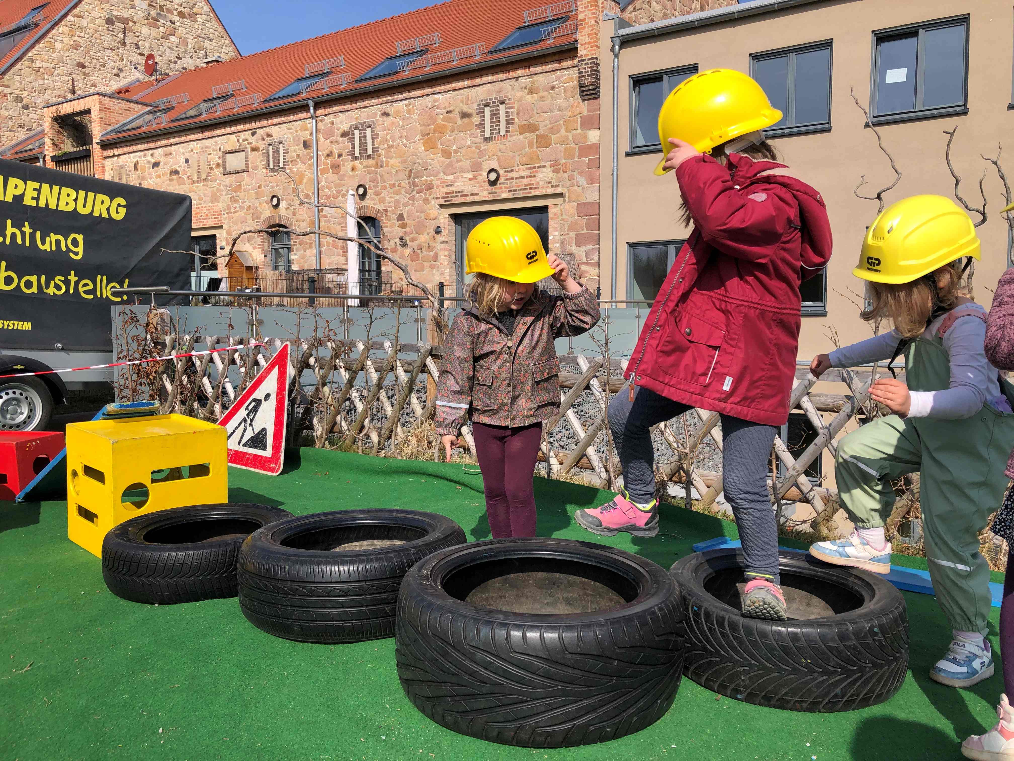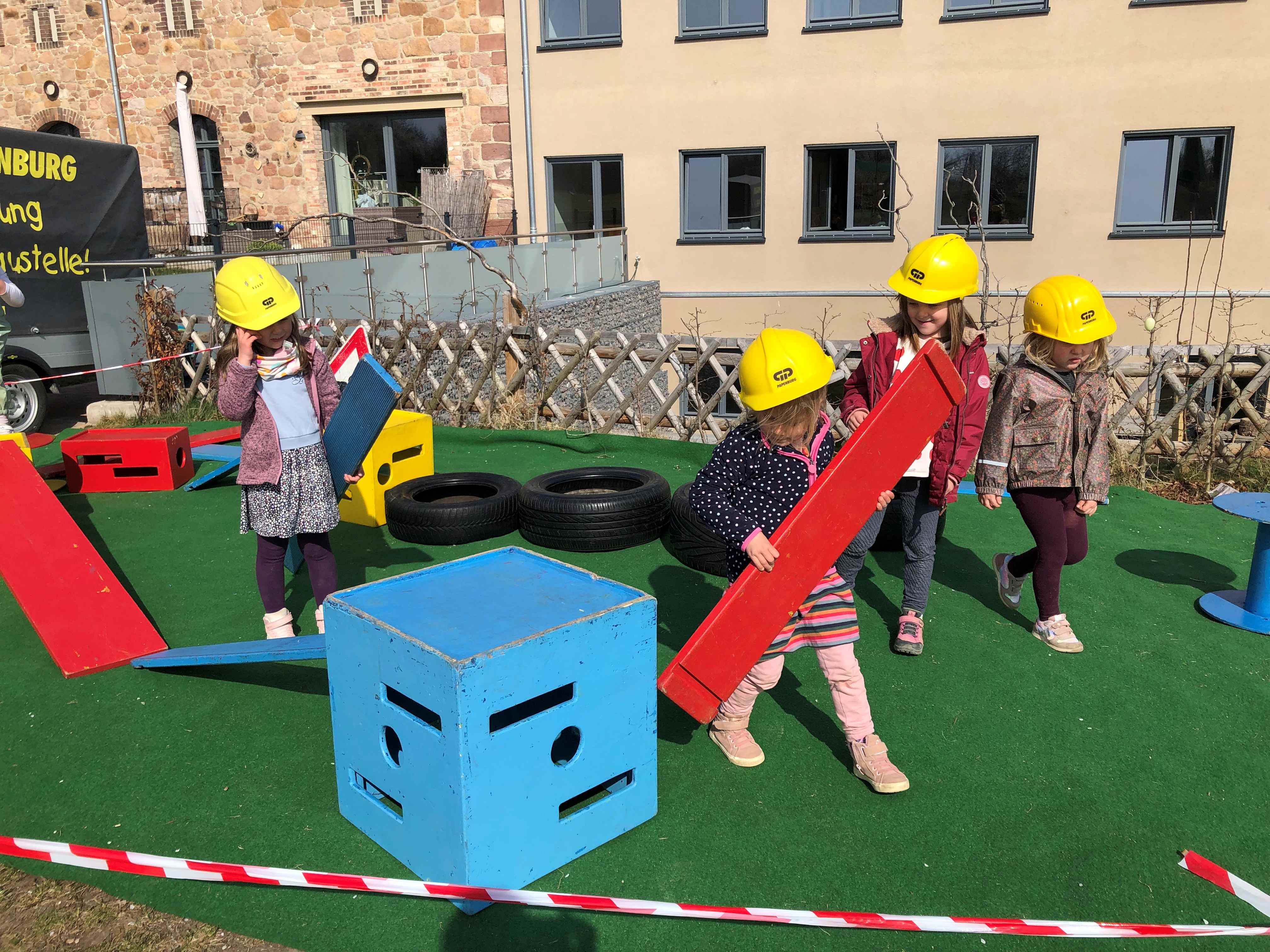 Da liegt es nahe, das tolle Angebot der Firma Papenburg anzunehmen, eine Kinderbaustelle temporär in der Kita einzurichten.