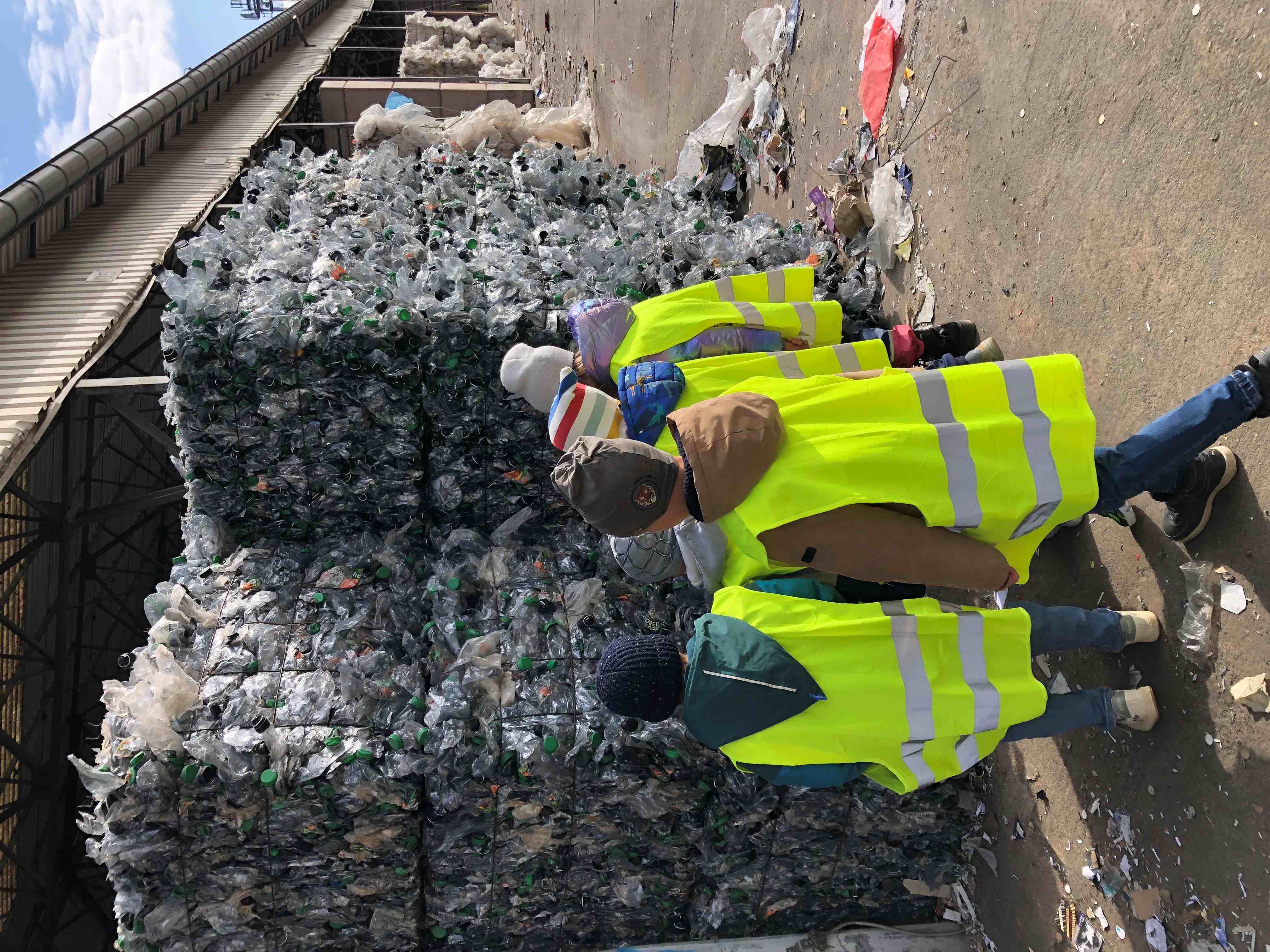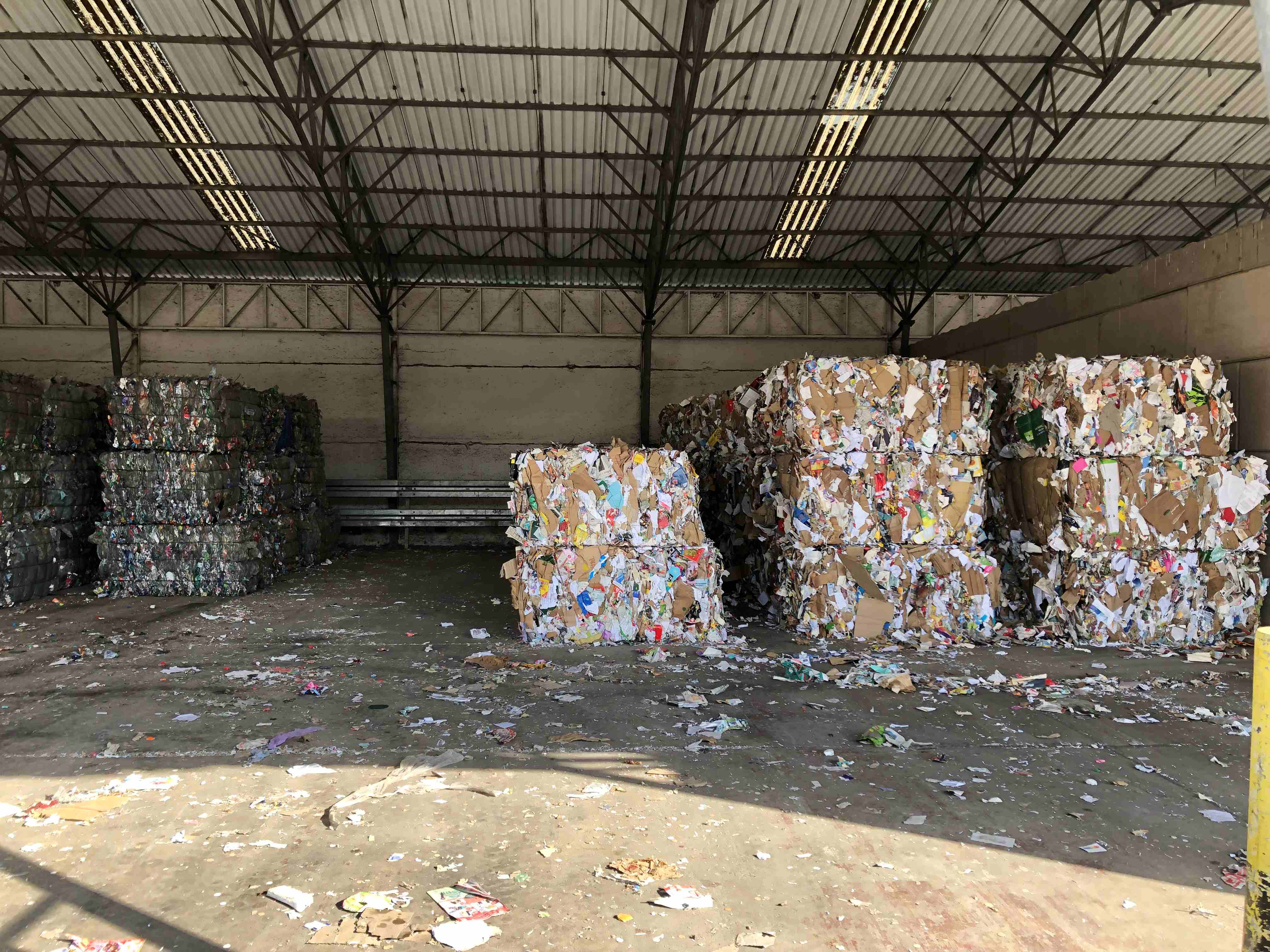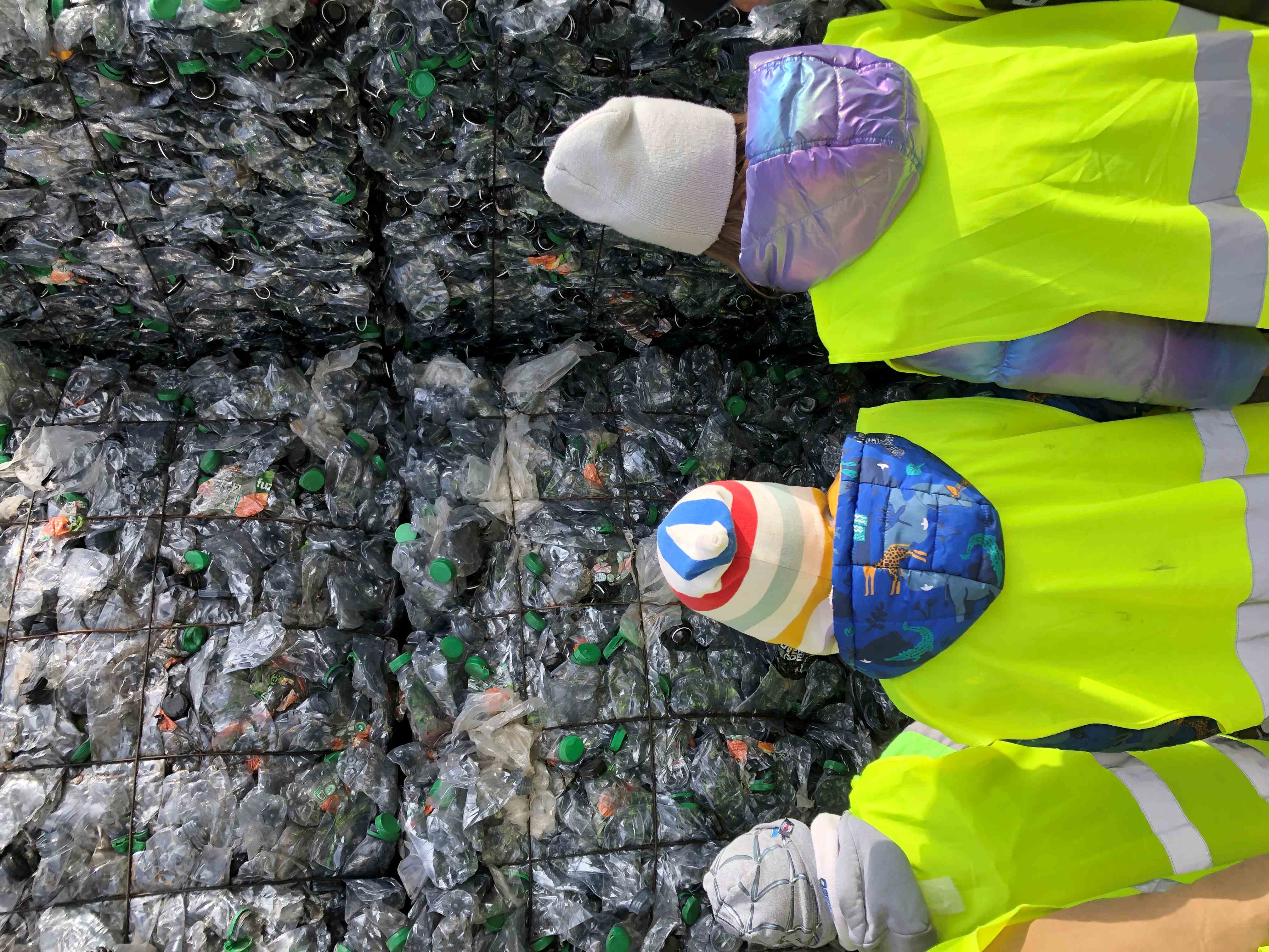 Wir bestaunen interessante Kuben, die eine Maschine herstellen kann. Sie verpresst den Müll, ob Kunststoffflaschen, Plastik oder Pappe zu interessanten Würfeln.