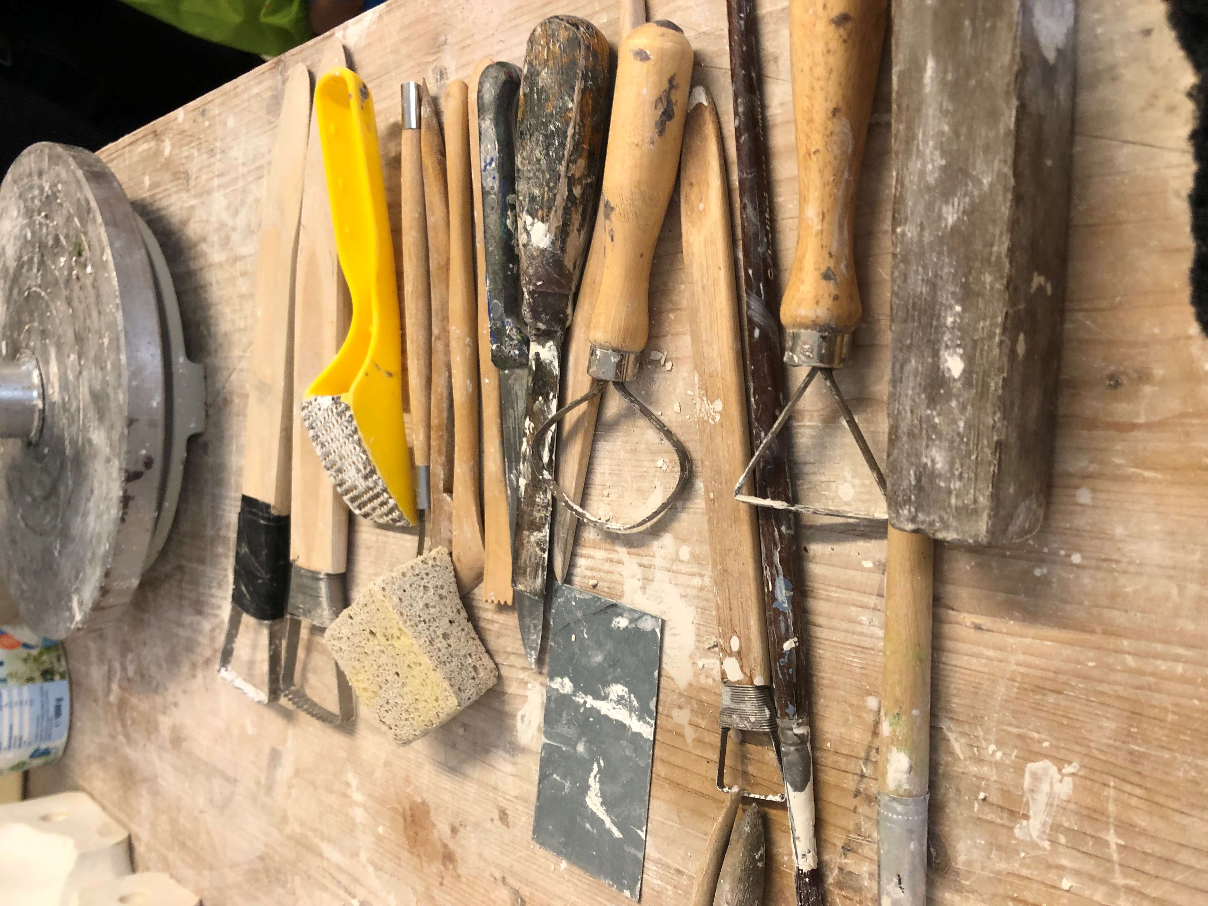 Sie lernen die Werkstatt kennen, sowie das Material, womit er arbeitet (Porzellan).