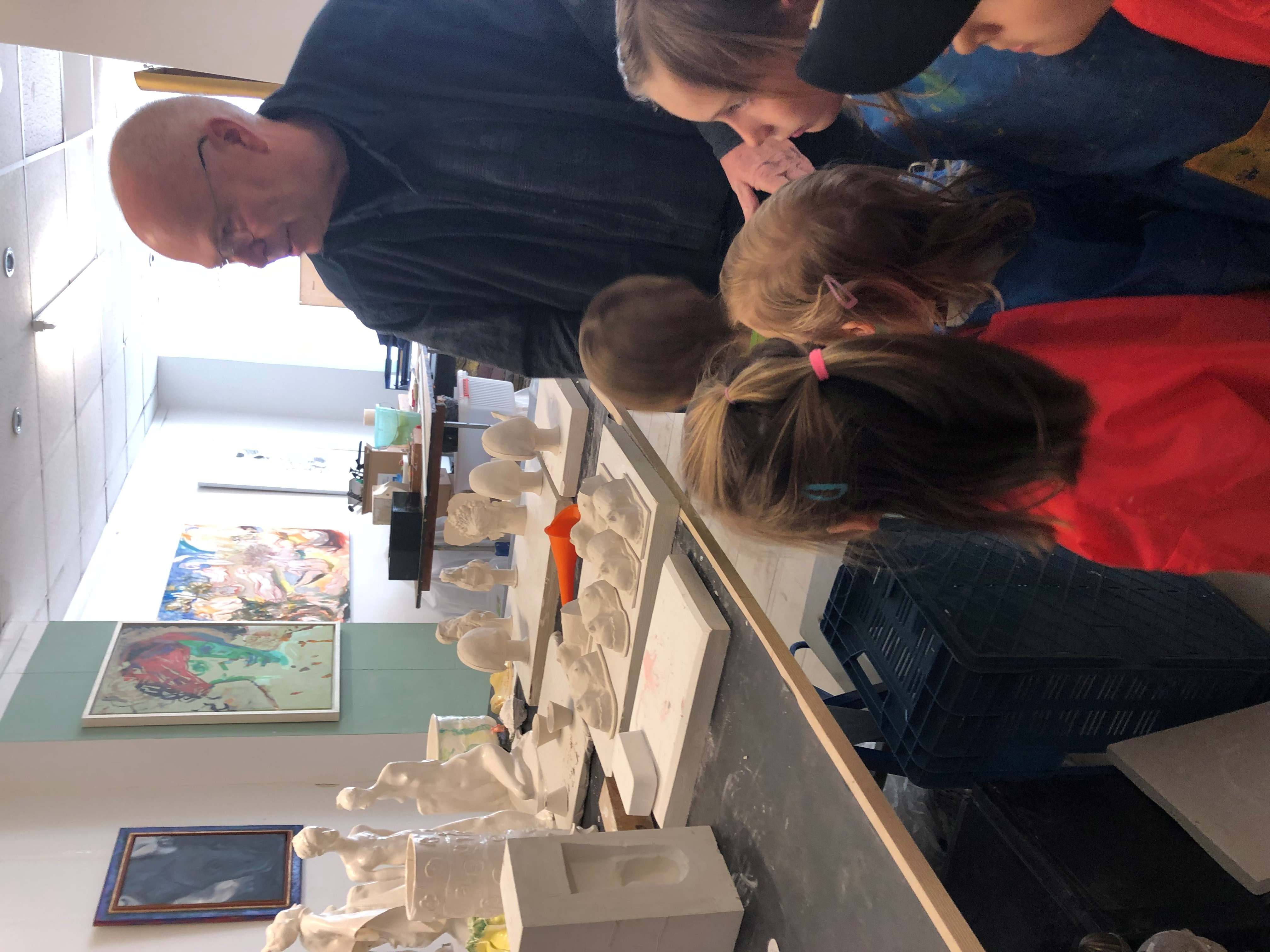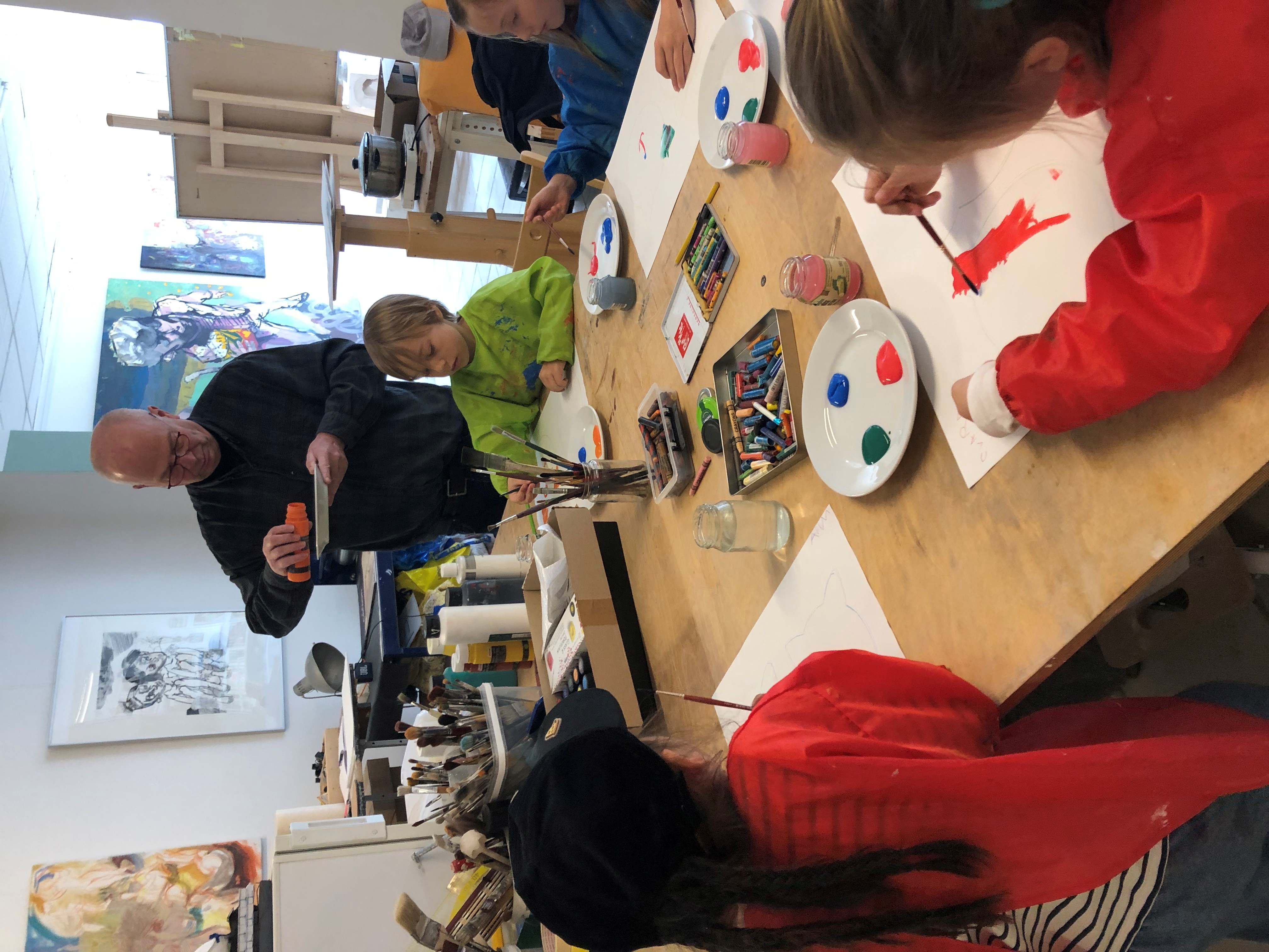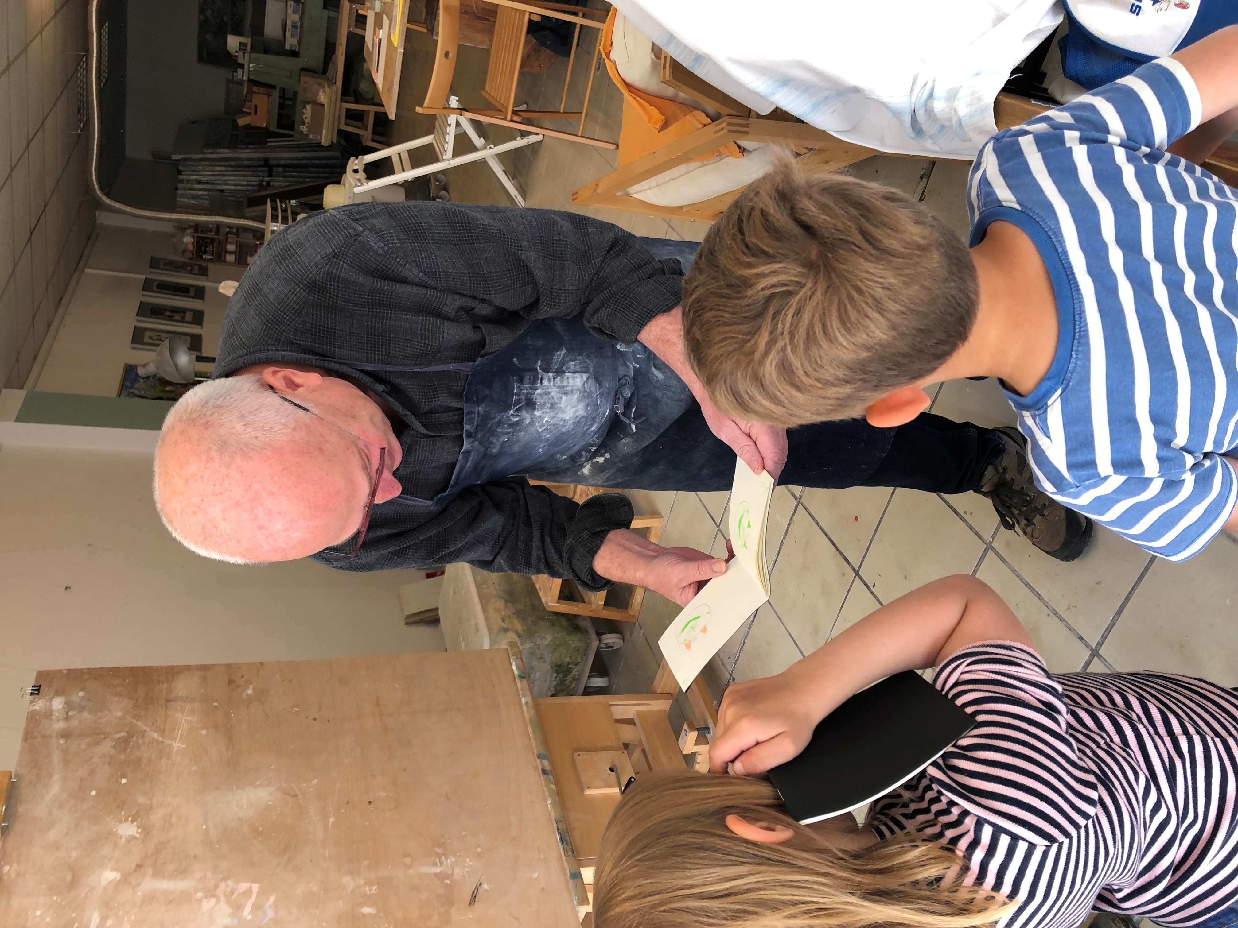 Das Kunstprojekt mit Prof. Winfried Alexander geht in den zweiten Teil. Eine neue Gruppe von fünf Kindern besucht den Künstler in seinem Atelier.