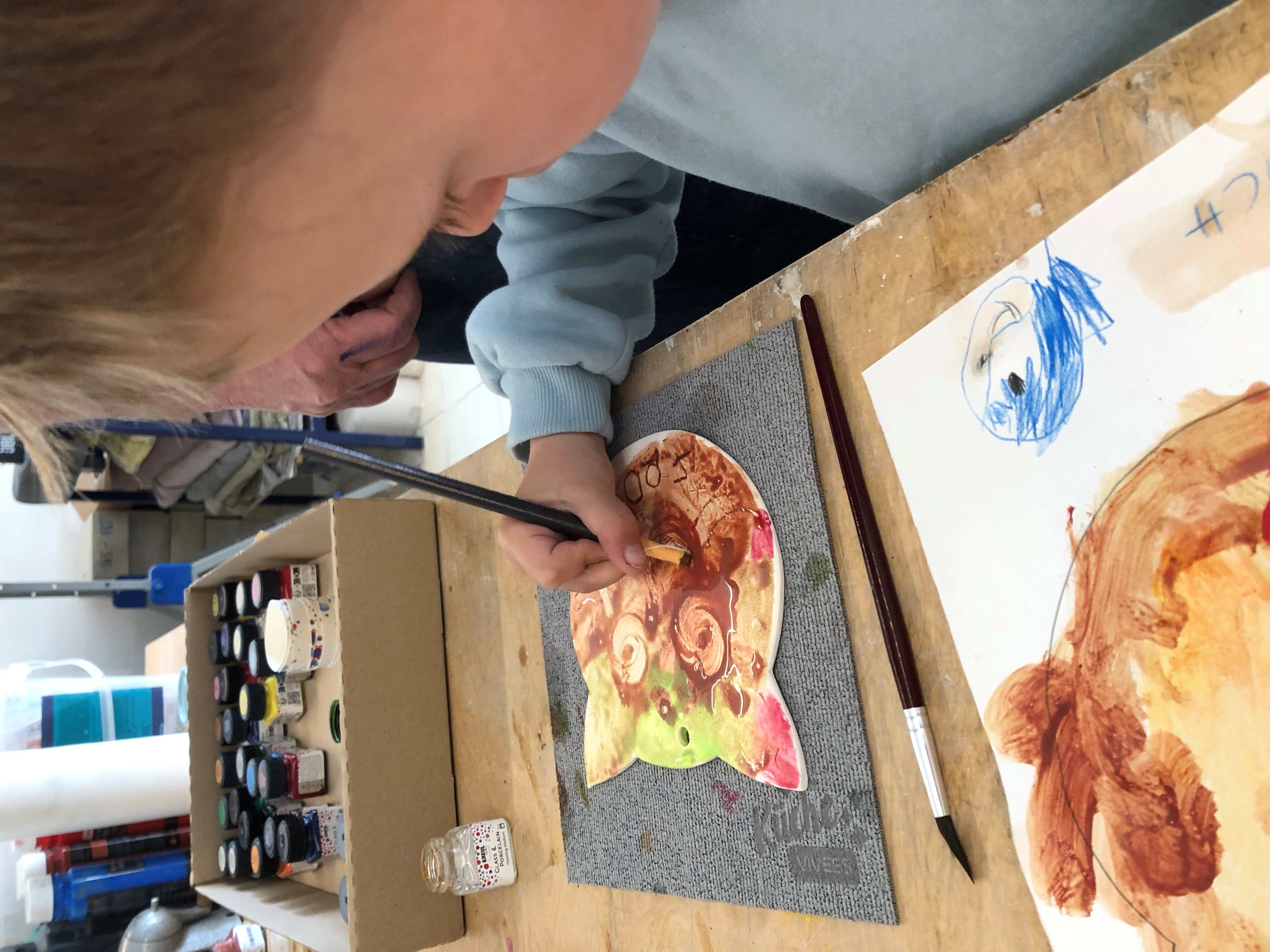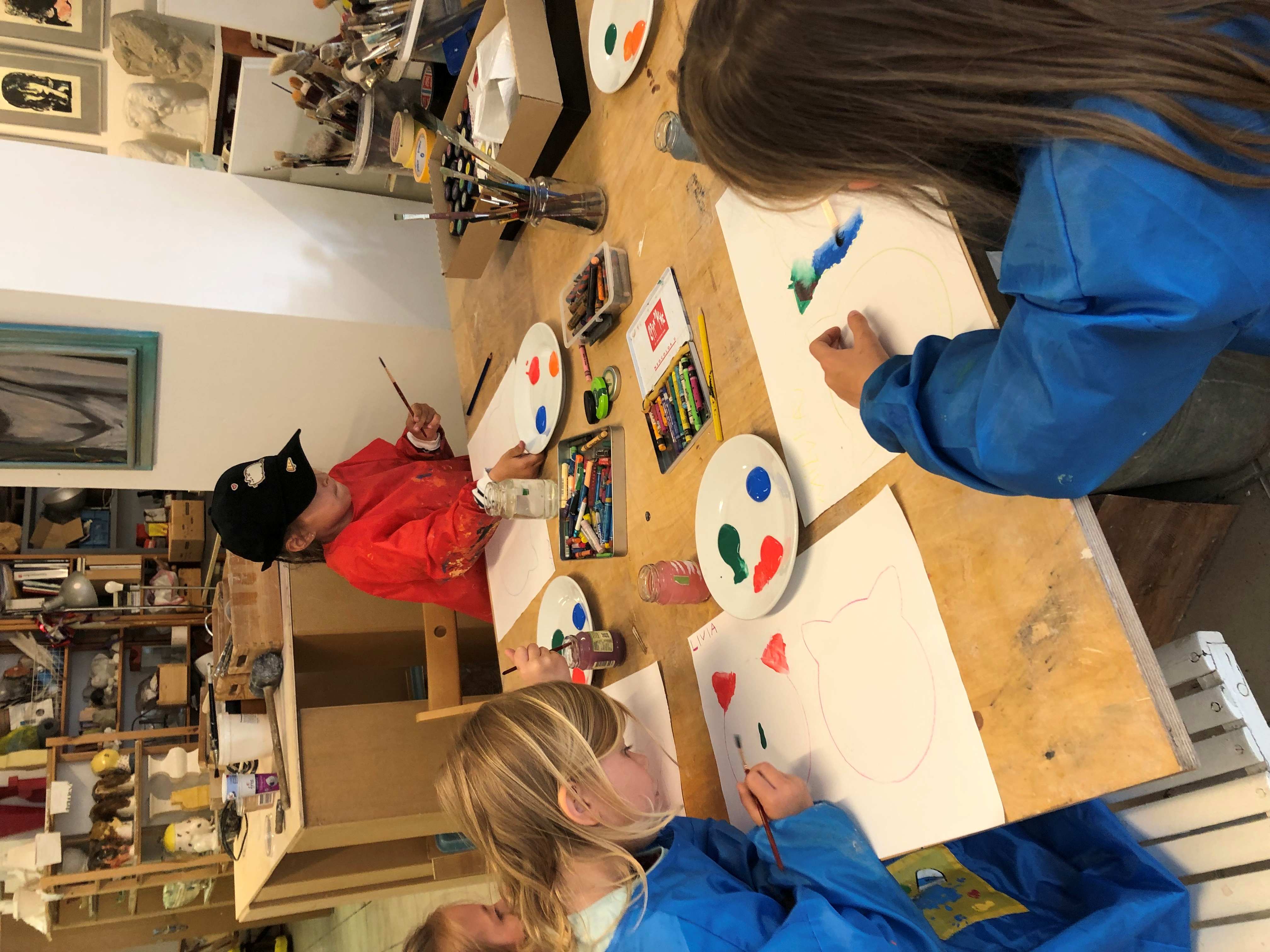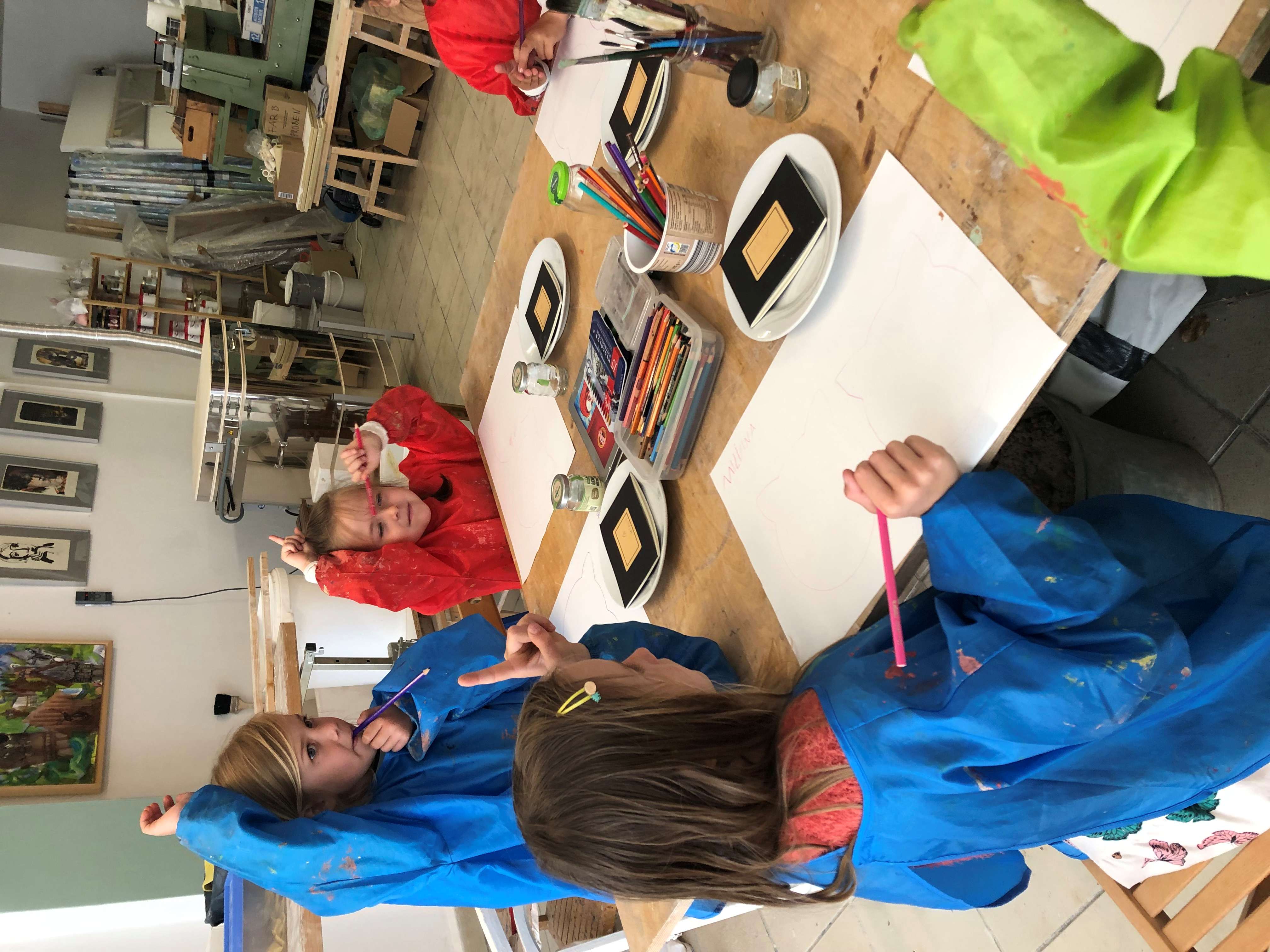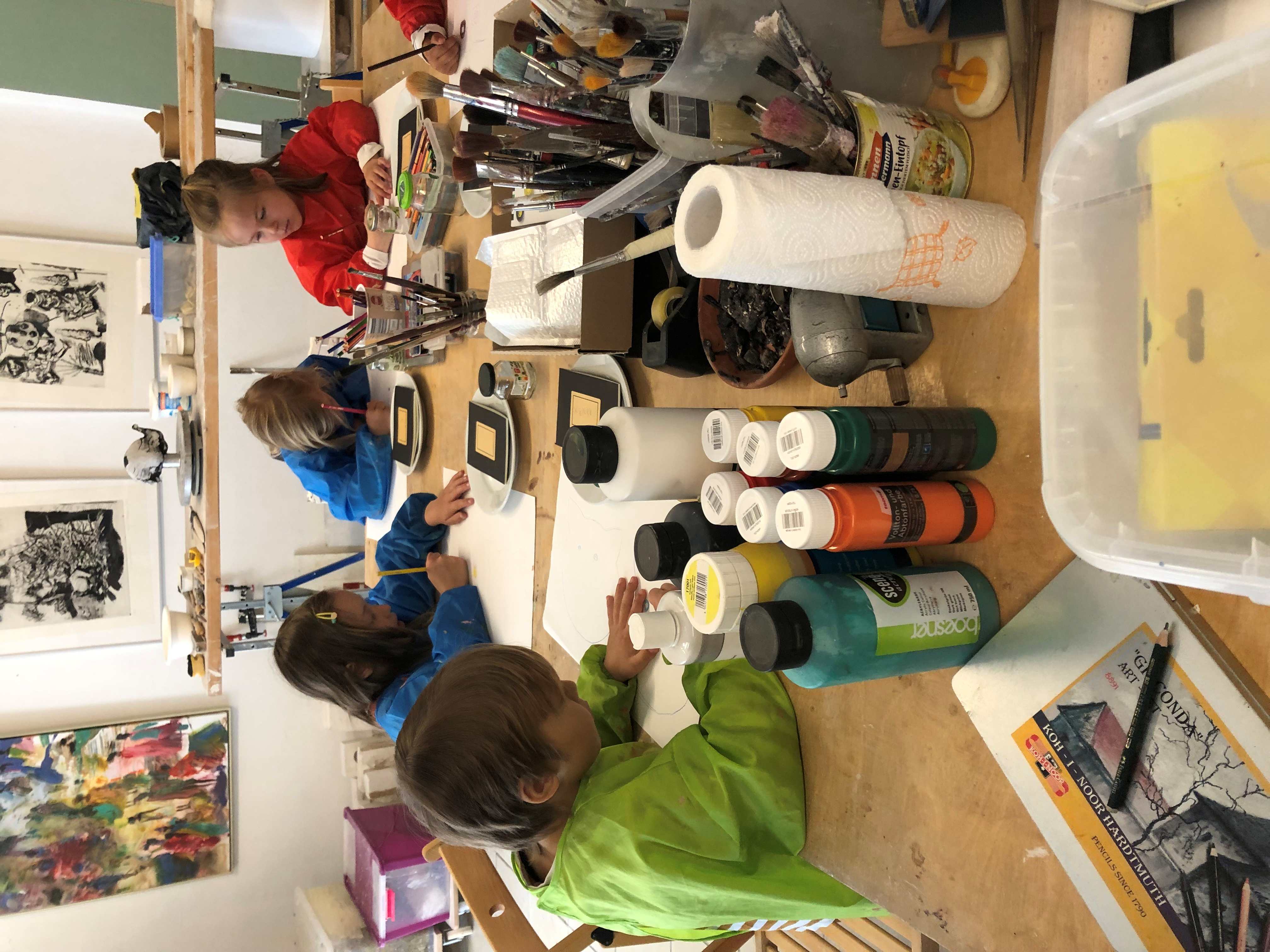 Das Kunstprojekt mit Prof. Winfried Alexander geht in den zweiten Teil. Eine neue Gruppe von fünf Kindern besucht den Künstler in seinem Atelier.