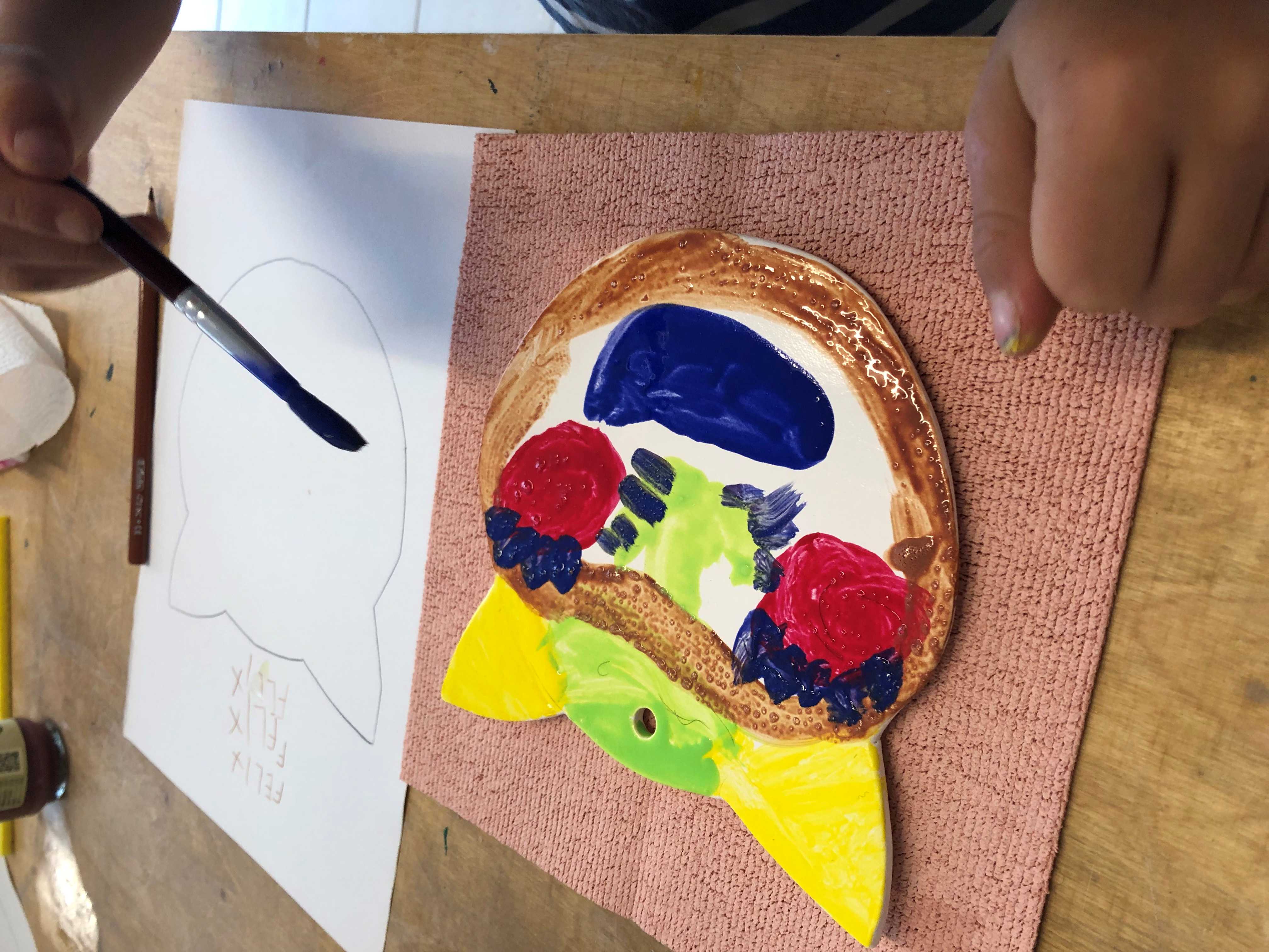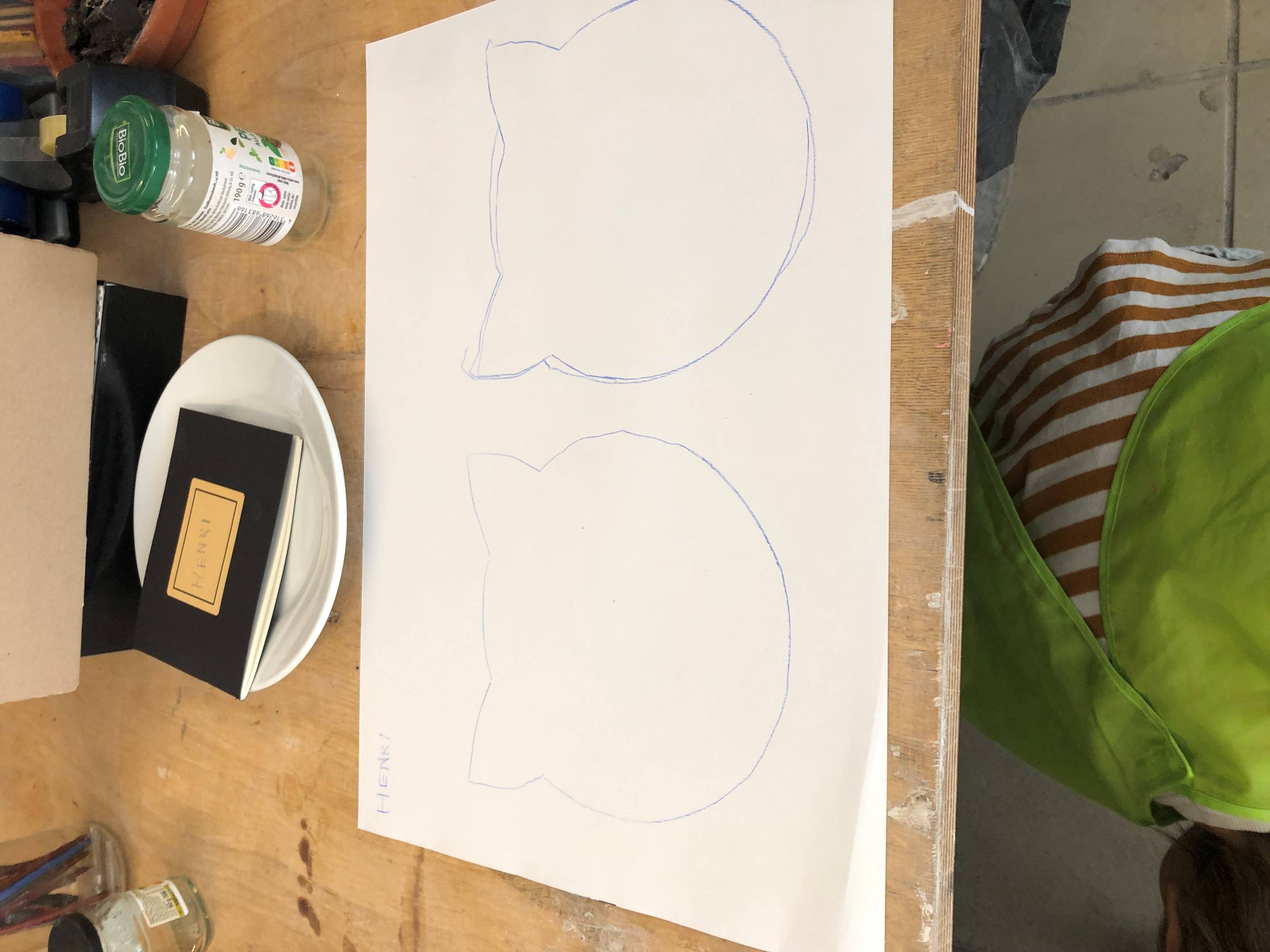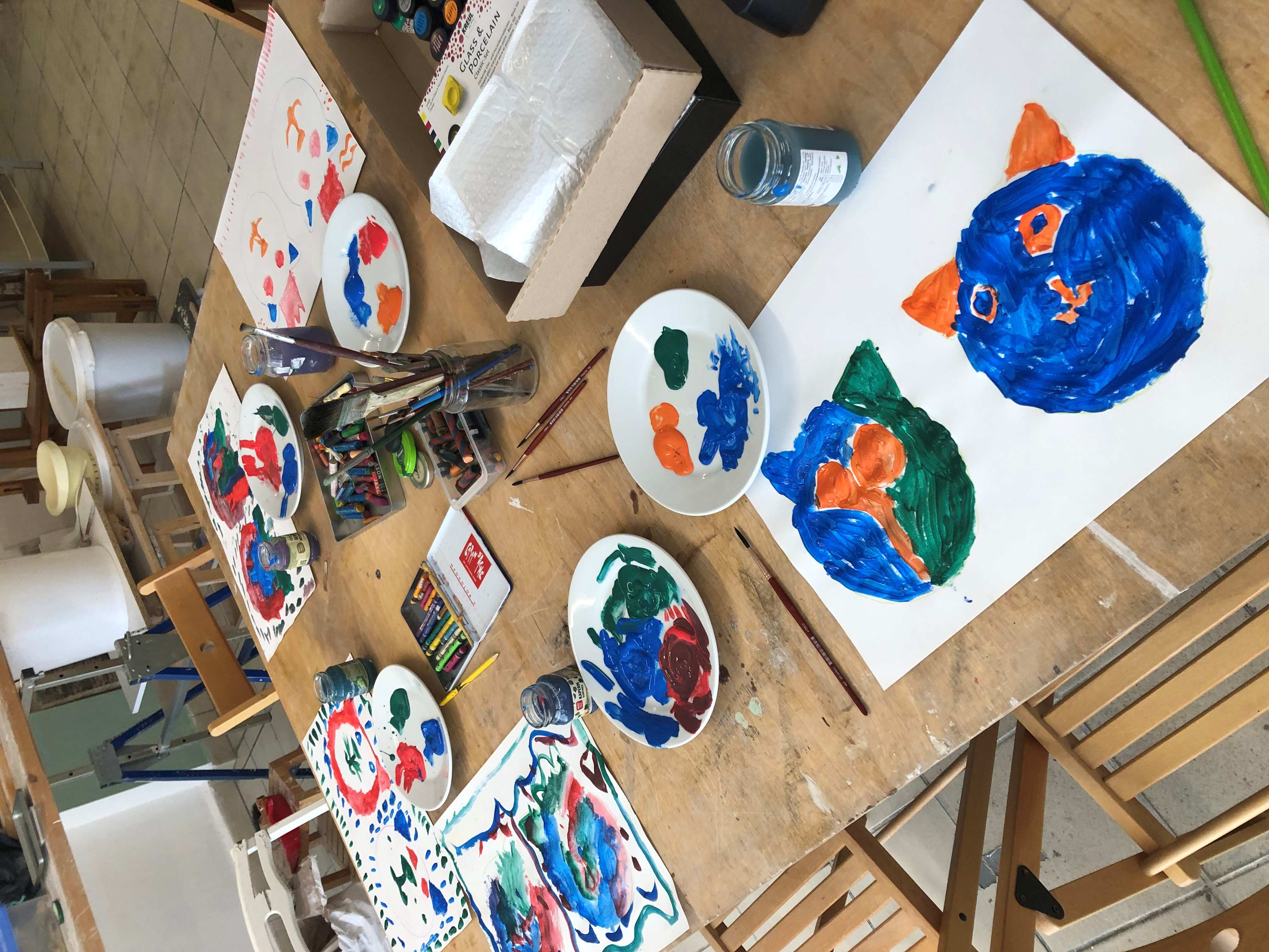 Als ersten Arbeitsschritt können die Kinder ihren Katzenkopf auf Papier malen. Im zweiten Arbeitsschritt bemalen die Kinder Porzellanplatten in Form eines Katzenkopfes. Diese müssen im dritten Arbeitsschritt gebrannt werden.