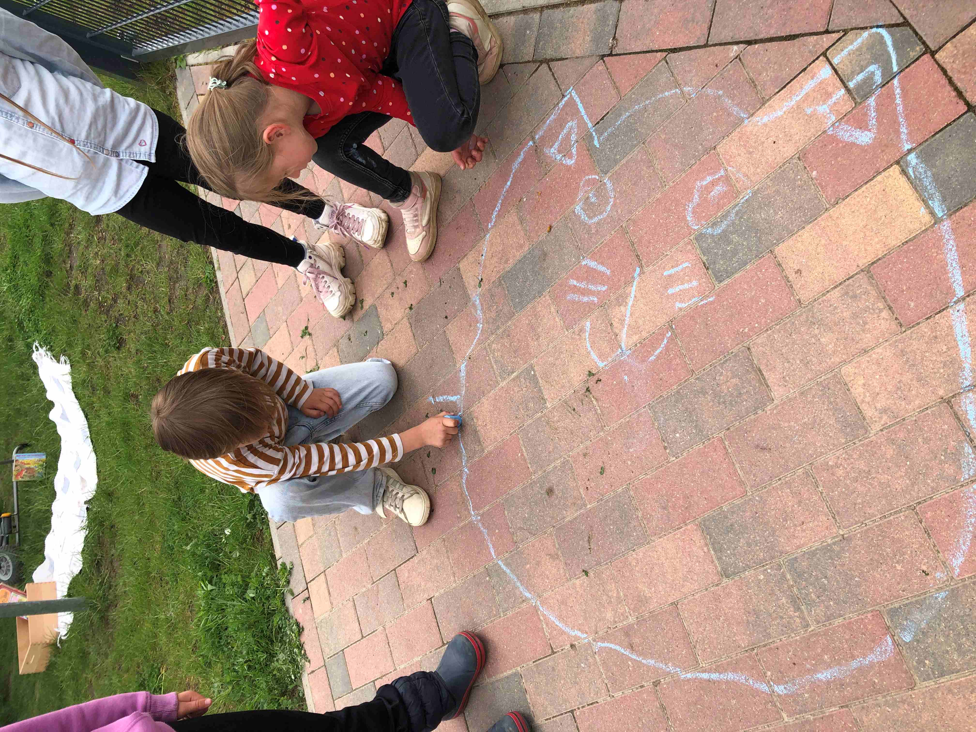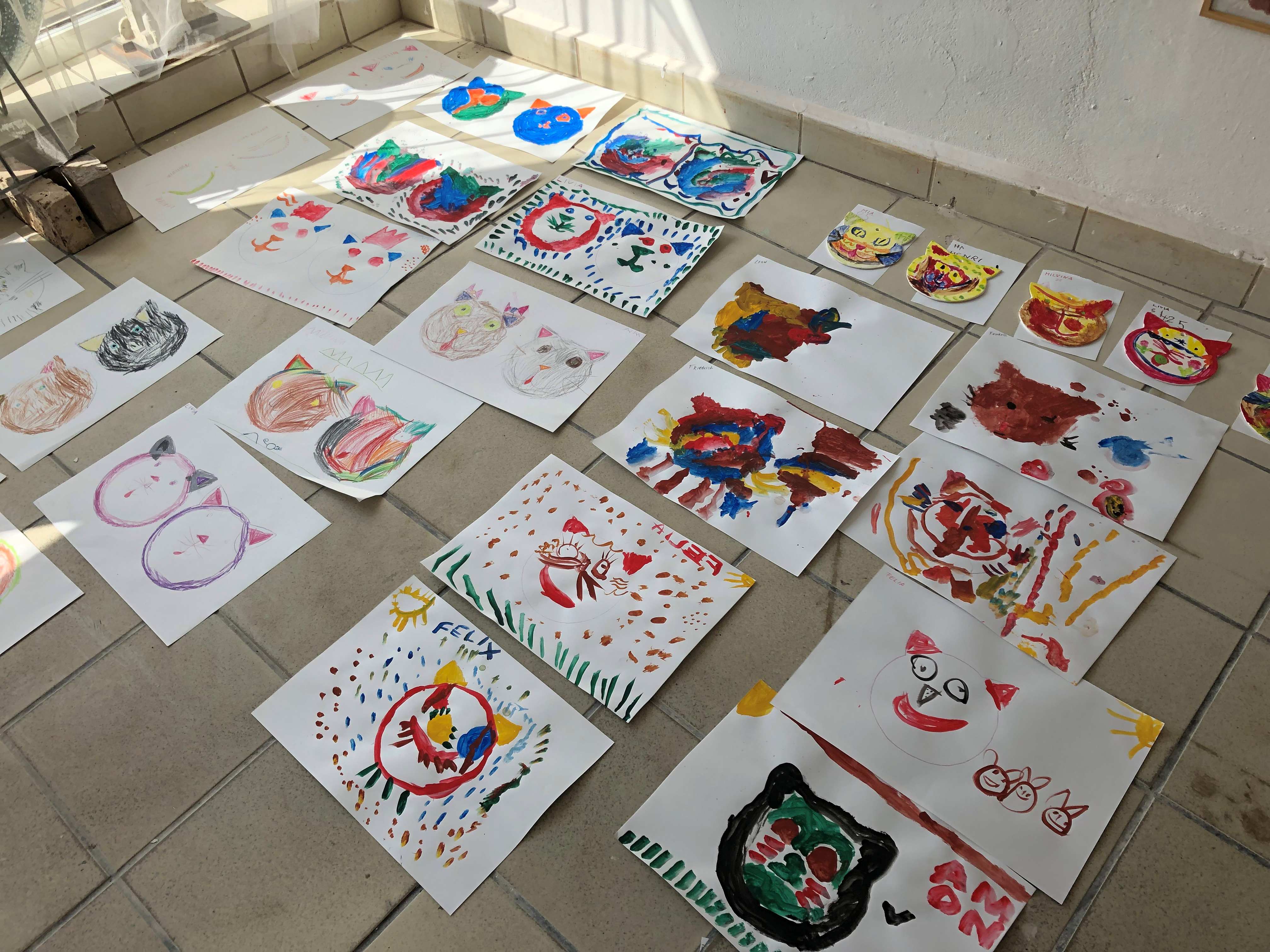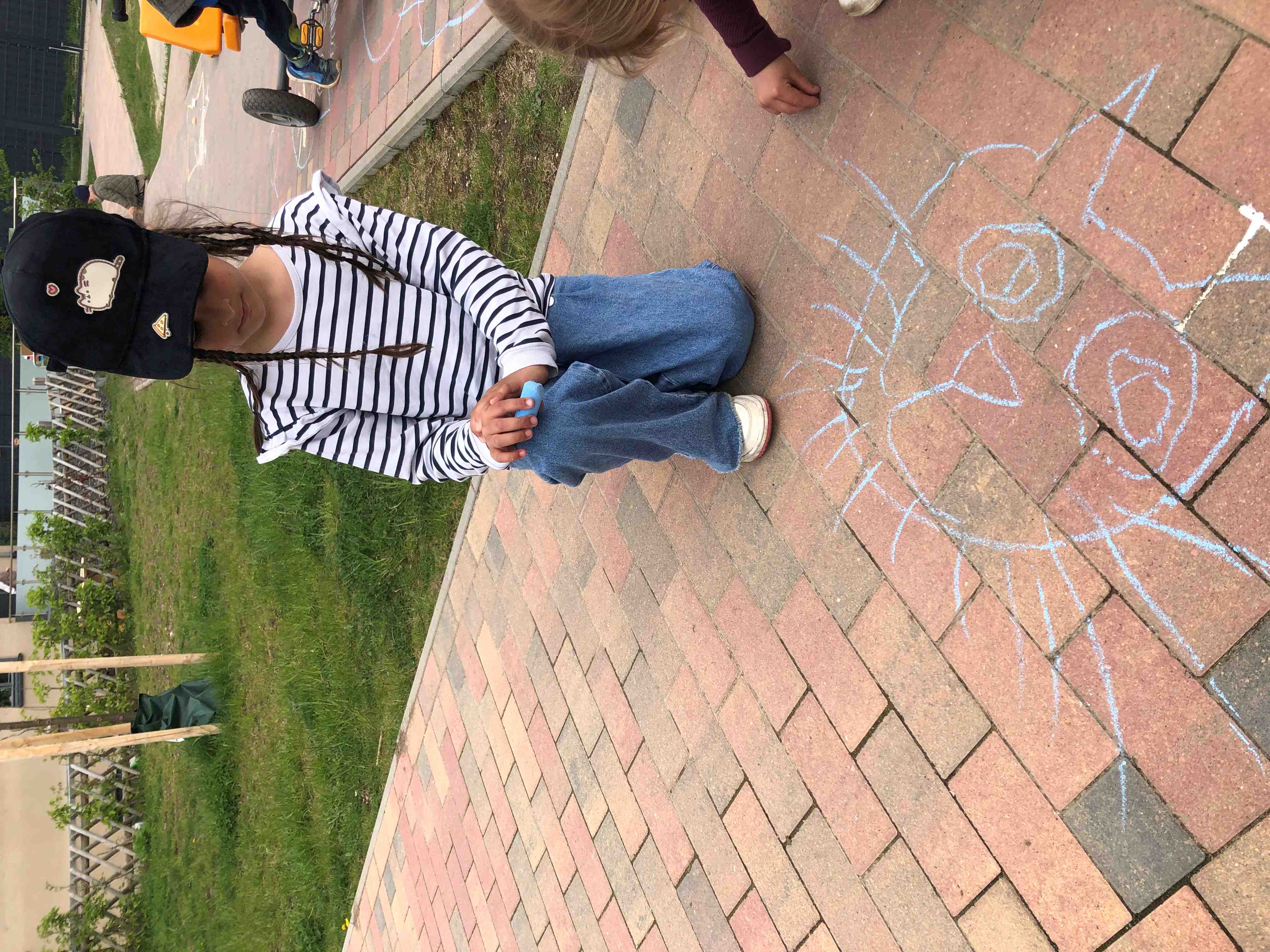 Die Kinder der Vorschulgruppe haben daraufhin einige Bilder für die Zeitkapsel gemalt - sodass irgendwann einmal in der Zukunft die Möglichkeit besteht, dass Nachfahren der Kinder diese Zeitzeugenbilder finden könnten - das hat die Kinder sehr fasziniert, sich vorzustellen, dass ihre Urenkel ihre Bilder ansehen könnten...