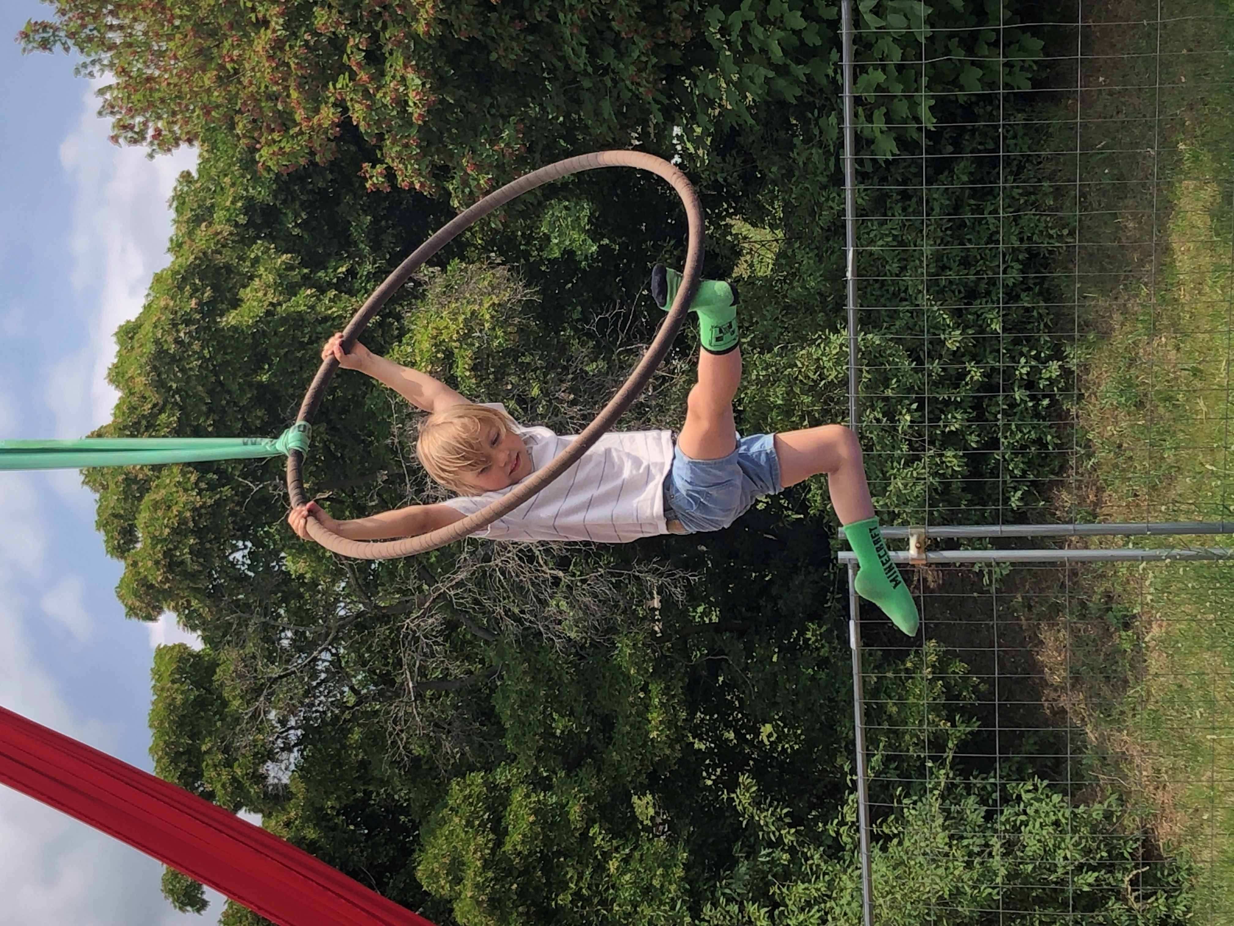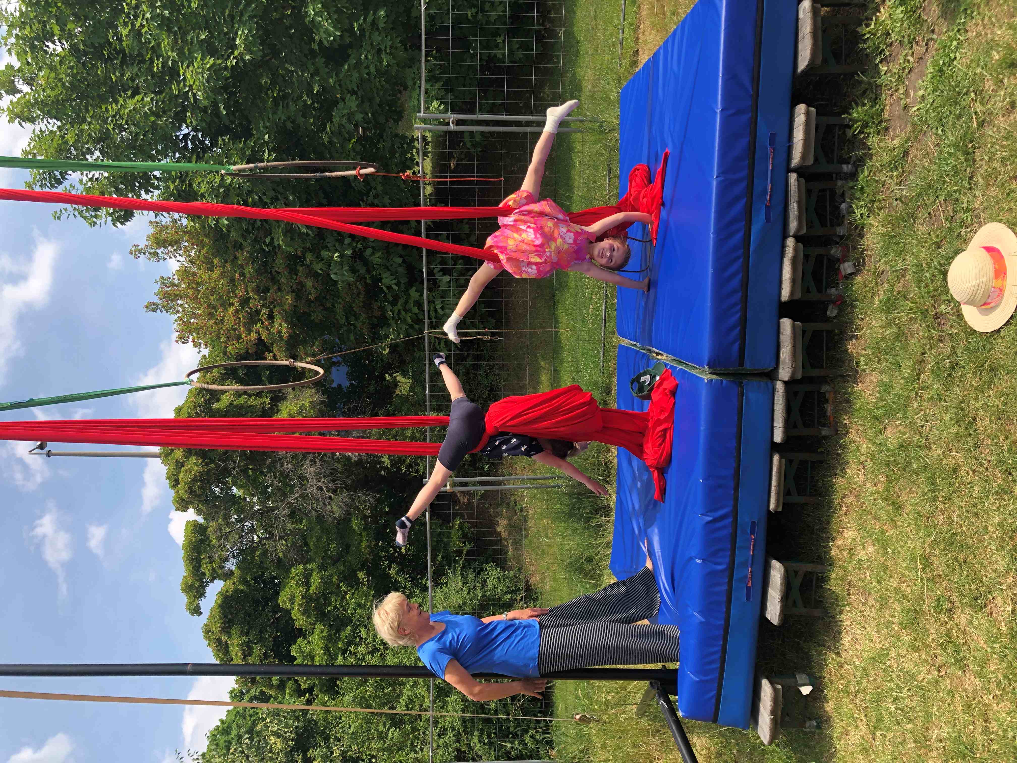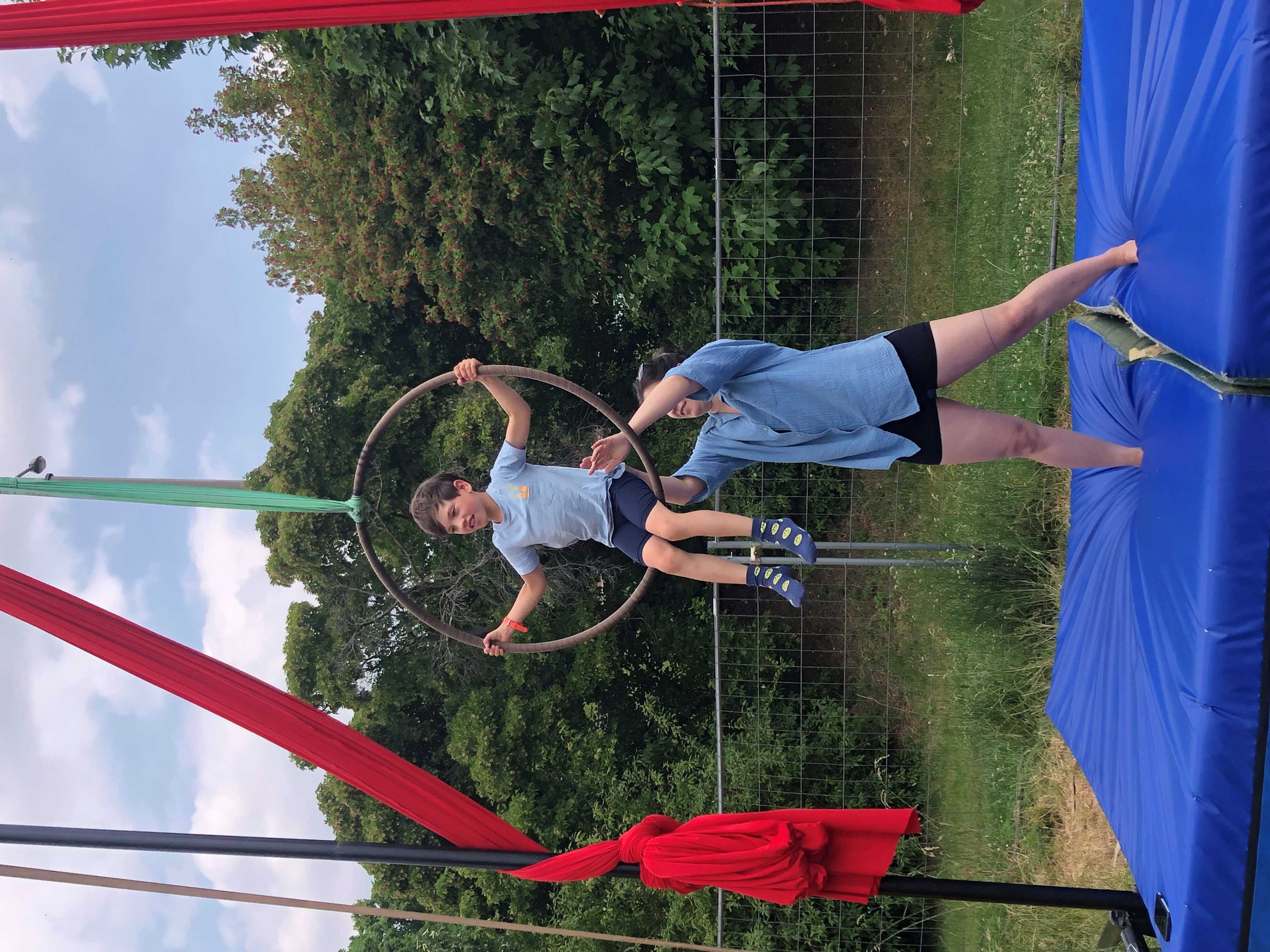 Als Abschluss-Ausflug der Vorschulgruppe verbringen die Kinder einen halben Tag auf dem Zirkusgelände und erproben die Luftanlage sowie die große Kugel.