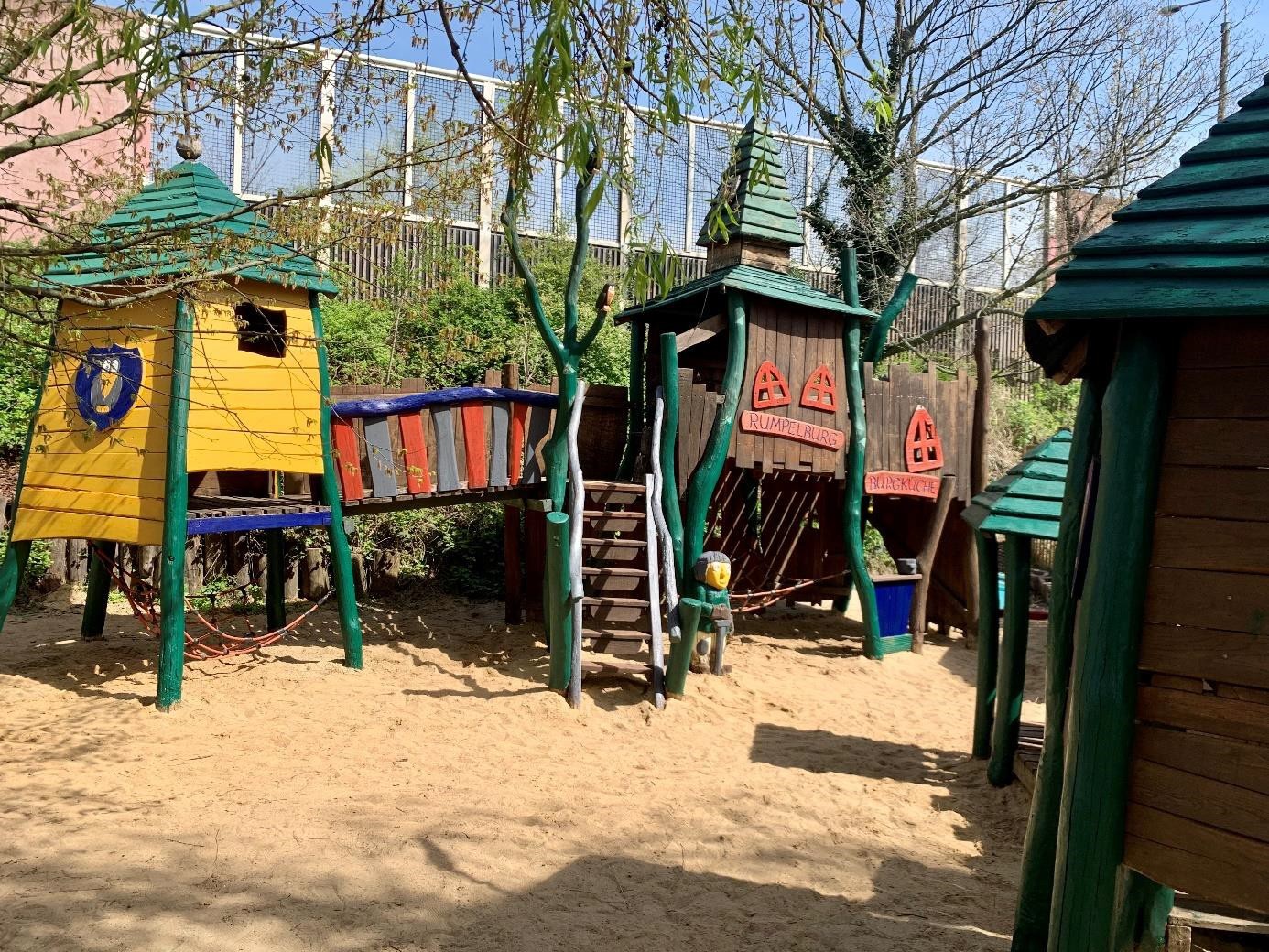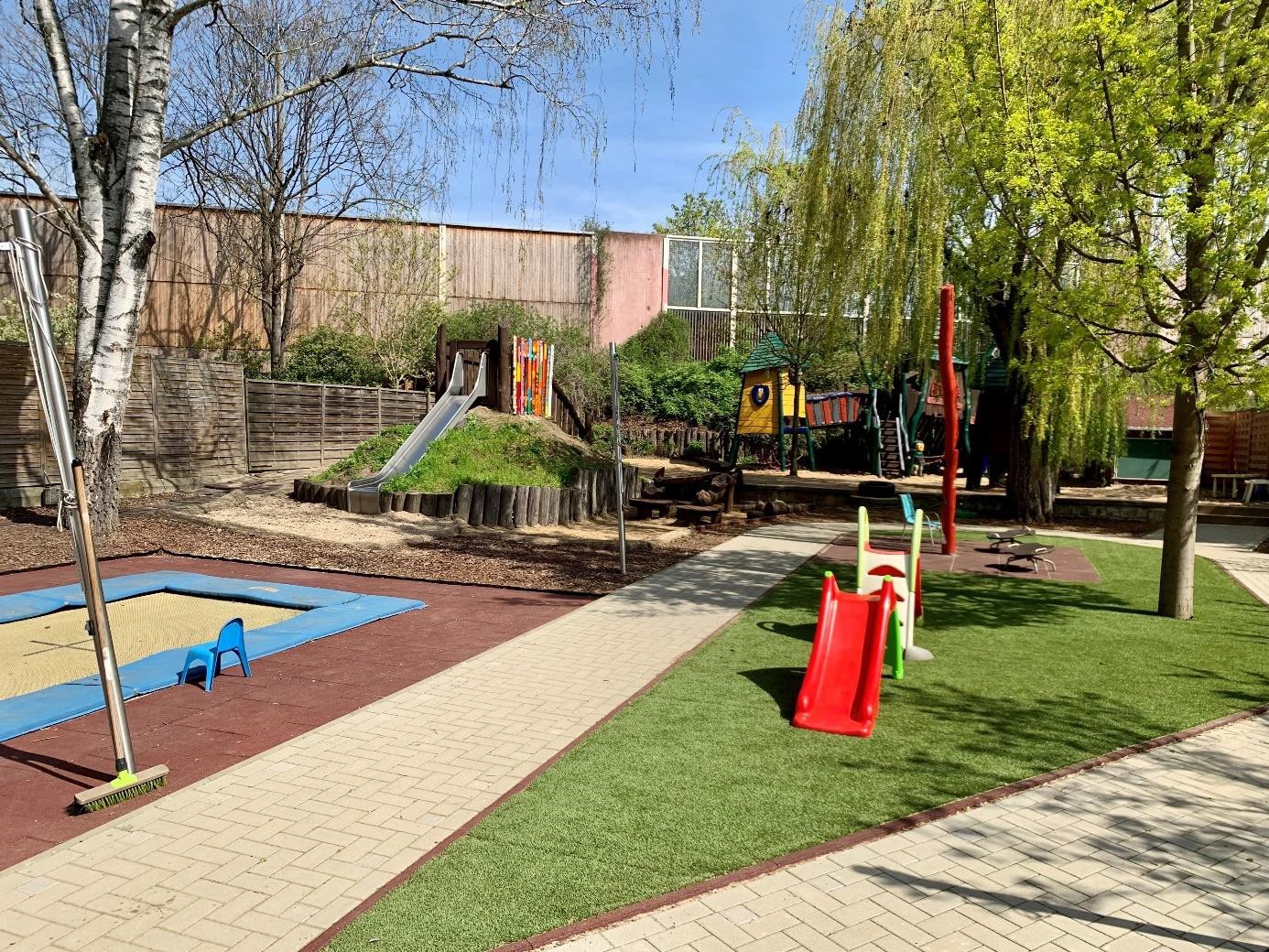 Die Kita liegt in der Nähe zur Reilstraße und unweit des Naturgebietes „Galgenberg“.