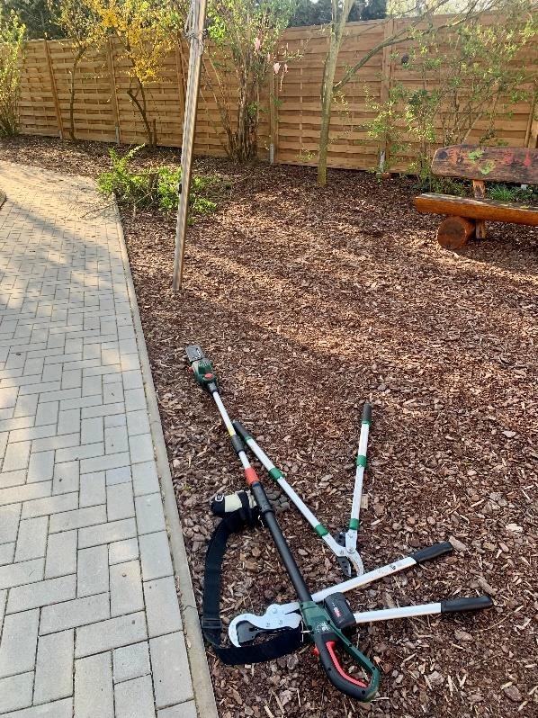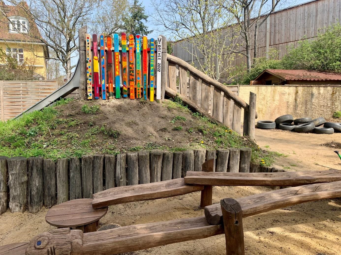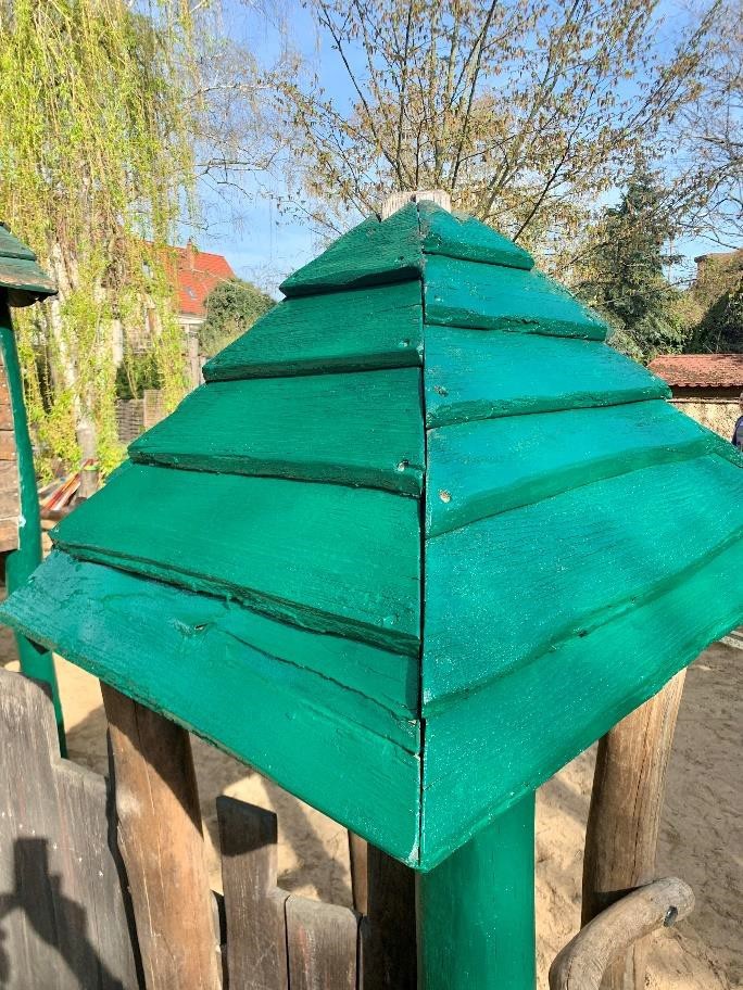 Am Samstag, den 22.04.2023 fand bei herrlichstem Frühlingswetter unser erfolgreicher Arbeitseinsatz mit vielen, fleißigen Eltern statt. Das gesamte Kita-Team war vor Ort. Es hat viel Spaß gemacht und sich gelohnt. Gemeinsam haben wir viel für die Kinder geschafft. Vorab haben die Kinder mit ihren Eltern bienenfreundliche Pflanzen mitgebracht, die wir zum Teil mit den Kindern, als auch beim Einsatz eingepflanzt haben. Einige Eltern, die nicht dabei sein konnten, haben sogar noch etwas zum Essen vorbeigebracht. Ein Vati hat für musikalische Unterstützung gesorgt, mit der die Arbeit noch leichter von der Hand ging. An unserer Rutsche wurde ein selbstgestalteter Zaun von den Kindern der ehemaligen Vorschulgruppe angebracht. Die Rumpelburg bekam wieder einen farbenfrohen Neuanstrich. Sträucher wurden verschnitten und auch unsere Gartenhütte wurde neu gestrichen. Vielen Dank an alle fleißigen Helfer!