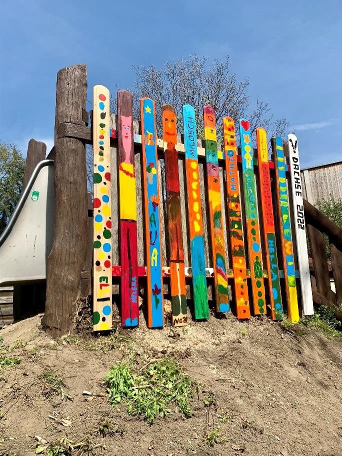 Ein bunter Zaun: Das Abschiedsgeschenk der Vorschüler 2022. Endlich an einem würdigen Platz!