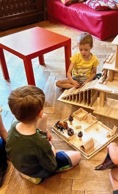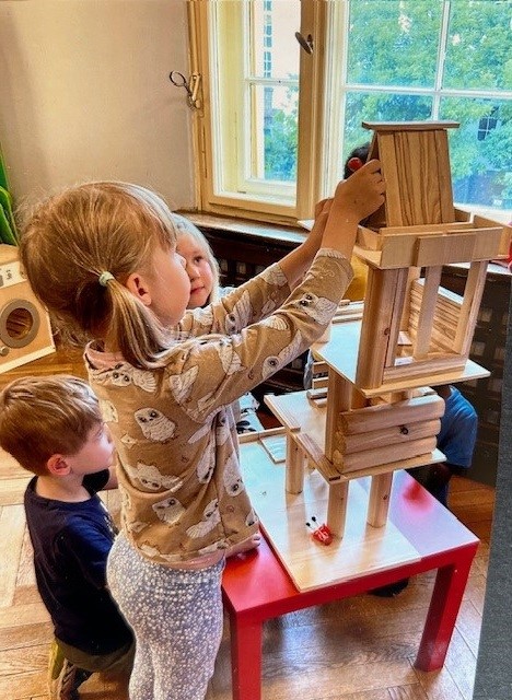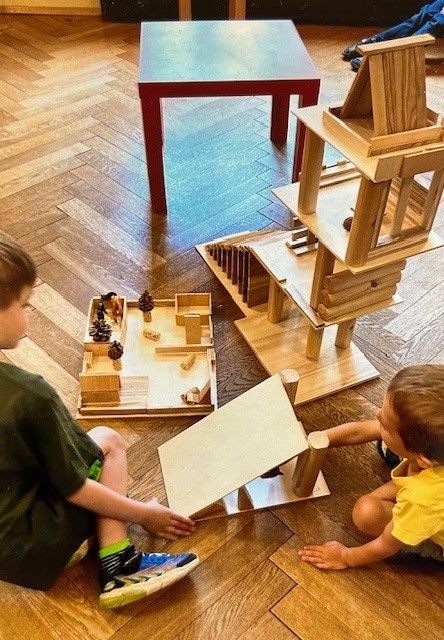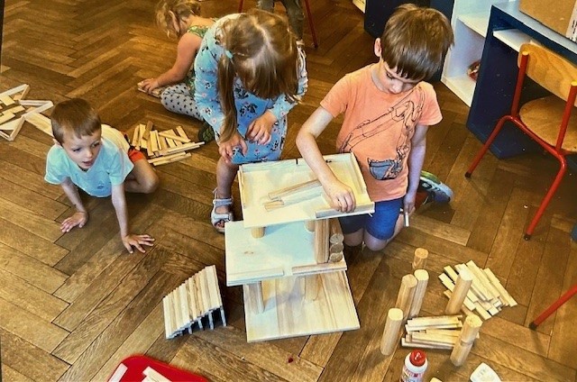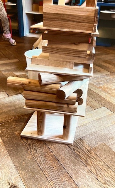 Hierfür stehen den Kindern diverse Holzelemente verschiedenster Größen und Formen zur Verfügung.