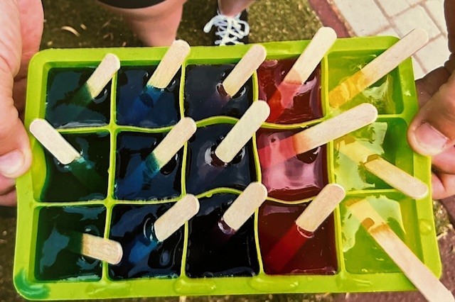 2. Mit den bunten Eiswürfeln können wir jetzt malen: