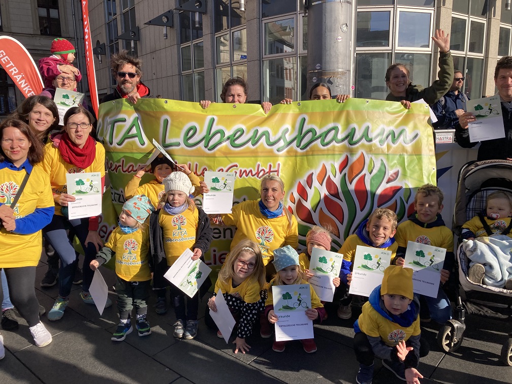 zum Mitteldeutschen Marathon nahmen wir, als Kita, am Schnupperlauf teil. Unsere Kleinsten fühlten sich am Größten. Alle kleinen, flinken Beine kamen erfolgreich nach 750 m ins Ziel. Die vorgegebene Zeit von 10 Minuten wurde eingehalten. Mit einem riesigen Banner, waren wir als einzige Kita vertreten. Sogar bei "du bist Halle" waren wir zu sehen.