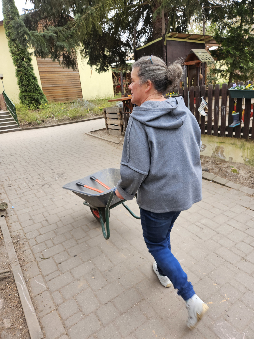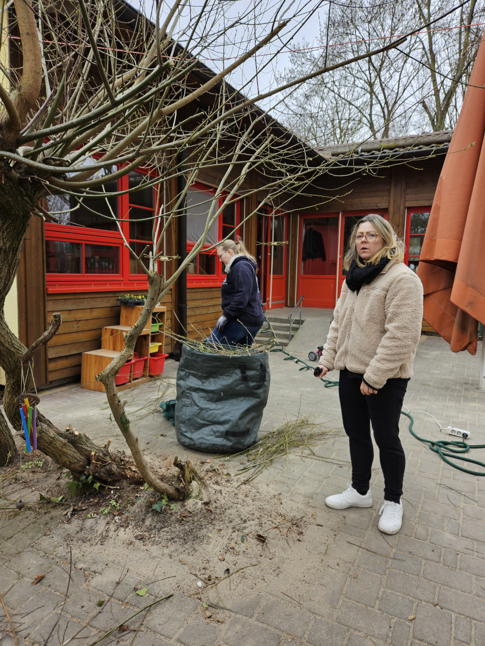 Am 29.03.25 fand in diesem Jahr unser erster Arbeitseinsatz mit den Eltern statt. Bei recht kühlen Temperaturen traf sich ein Teil der Erzieherinnen mit einigen fleißigen Eltern. Gemeinsam haben wir das Außengelände unserer Kita aus dem Winterschlaf geholt und auf den bevorstehenden Frühling vorbereitet. So hat das Spielhaus auf unserer rote Krippenterrasse eine Tür erhalten; viele Pflanzen wurden verschnitten; der Fallschutz unter dem Klettergerüst und der Nestschaukel wurde umgegraben; einige unserer Beete wurden umgegraben und für die Bepflanzung mit den Kindern vorbereitet; die Brombeeren wurden verschnitten; das Rosenbeet wurde von Unkraut ebenso befreit, wie unser Nutzgartenbereich vor der Kita und die Matschstrecke und Terrasse wurde gereinigt. Die Erde im Quartier unserer Hasen Schoko und Caramel wurde ebenfalls umgegraben und mit einer neuen Röhre versehen. Nun können sich beide Hasen wieder ausgiebig dem Buddeln von Gängen widmen.