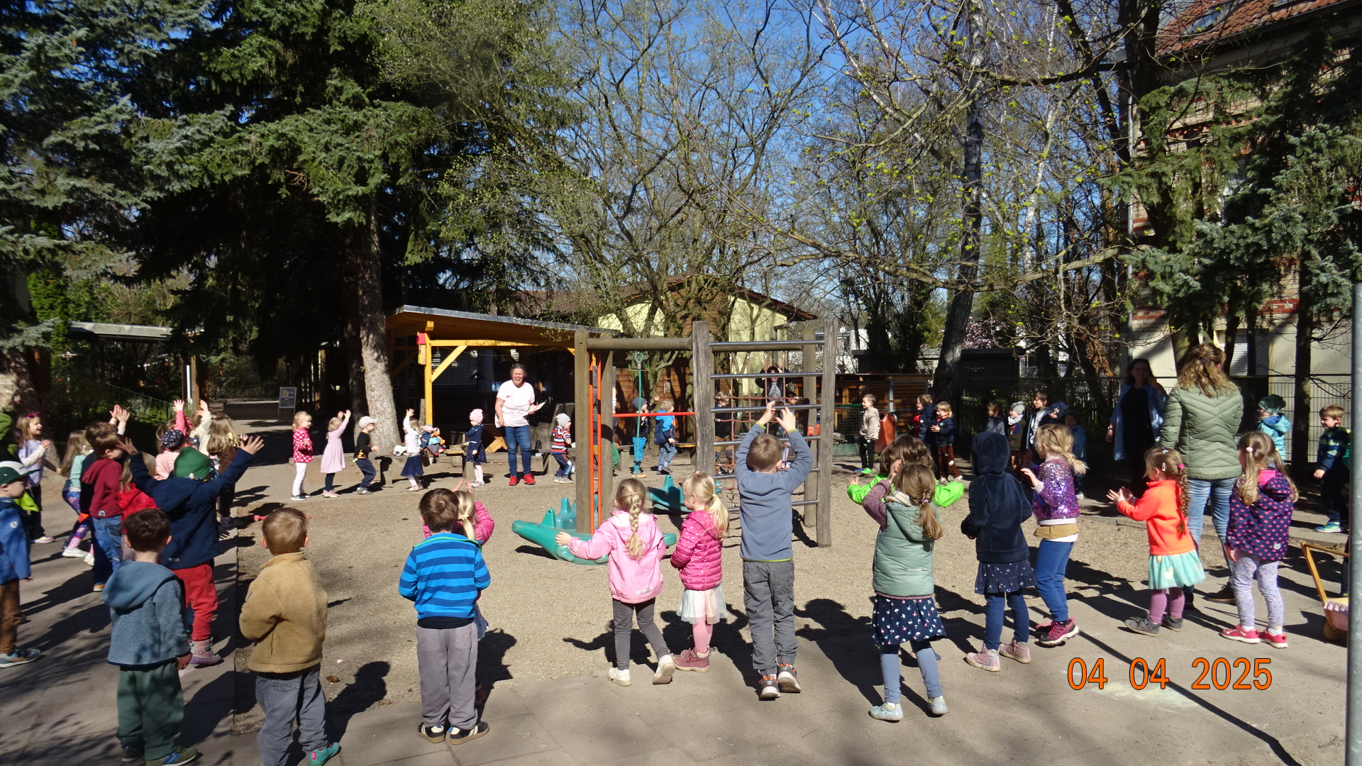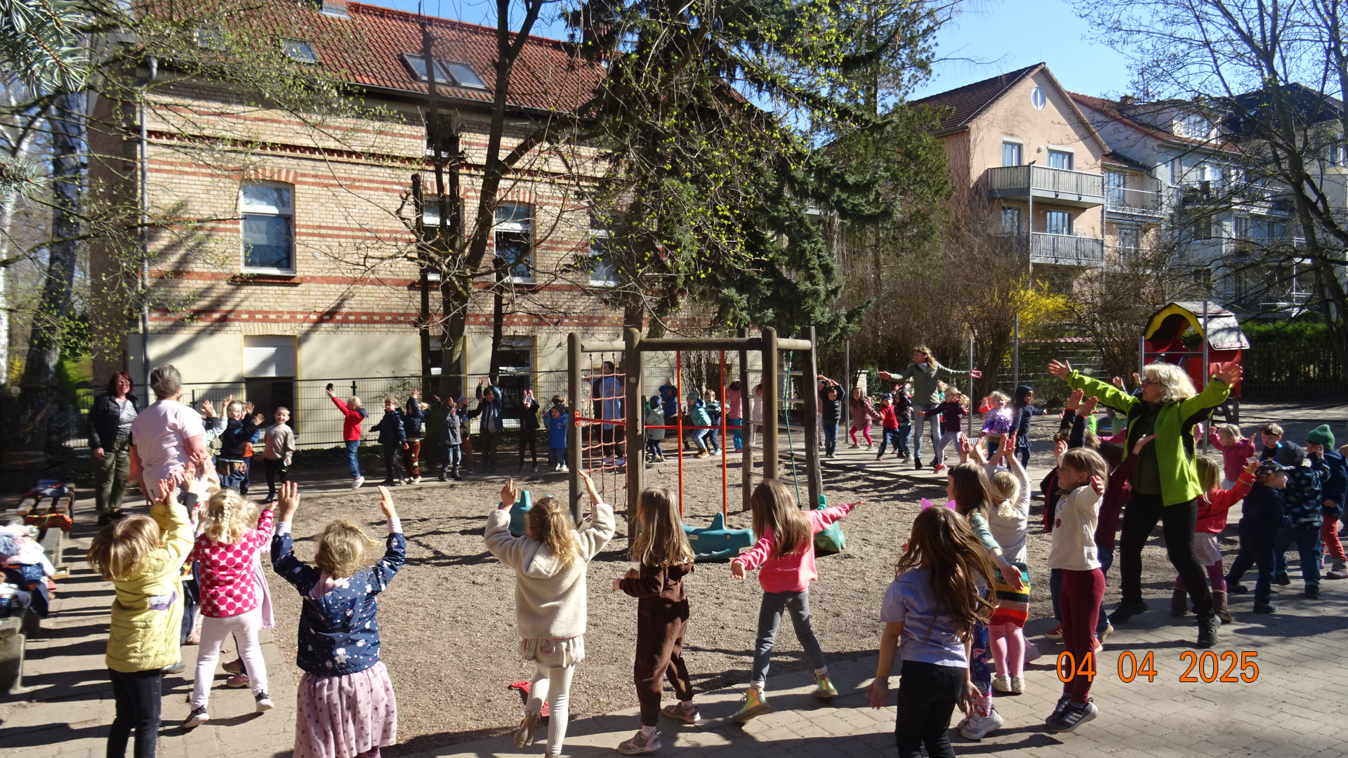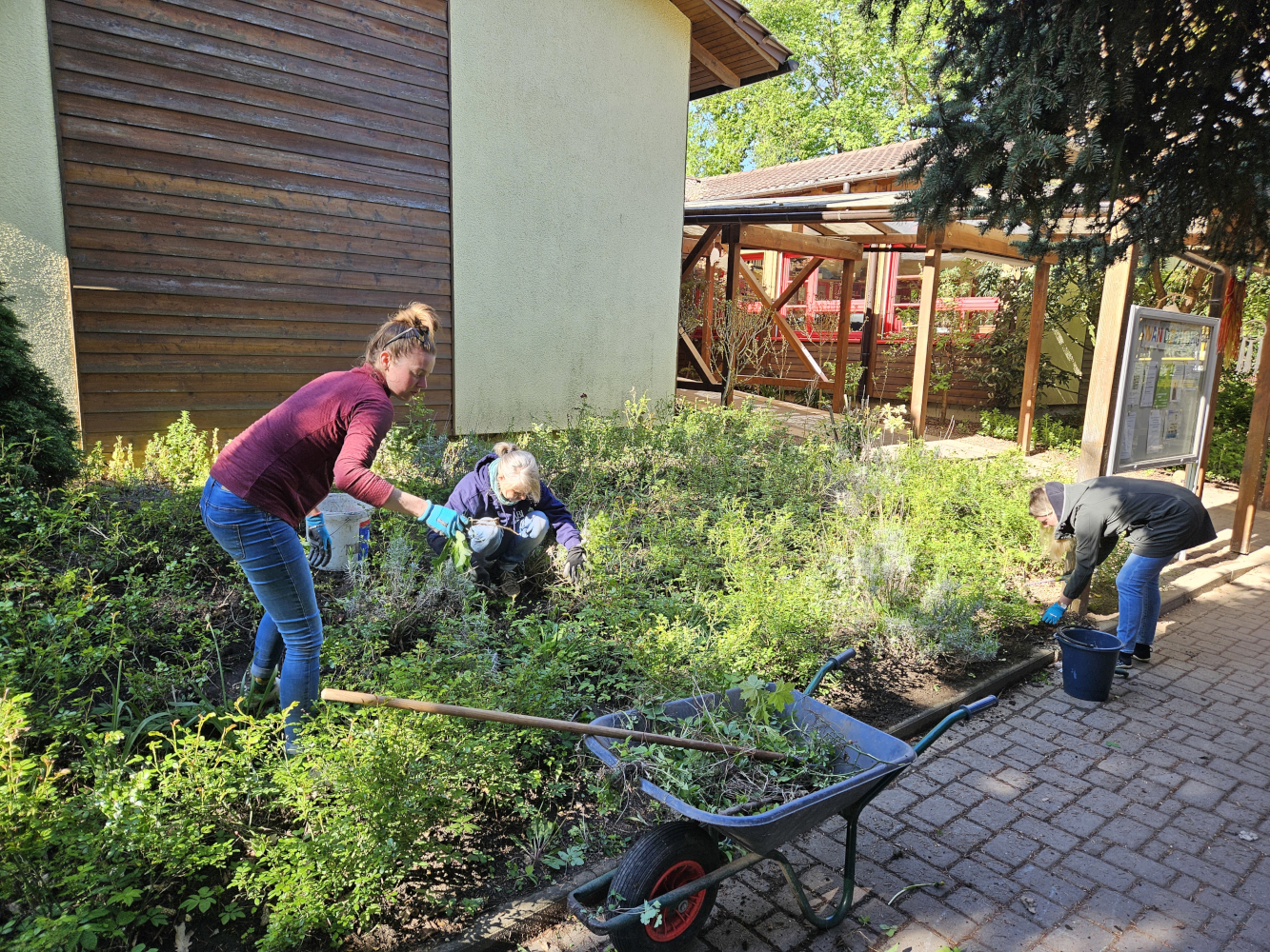 Unser zweiter Arbeitsansatz gemeinsam mit den Eltern fand bei strahlendem Sonnenschein am 26.04.2025 statt. Mit vielen fleißigen Helfern haben wir in verschiedenen Beeten Unkraut gejätet und auch die Wege davon befreit. Auf der grünen Terrasse haben wir den Sandkasten umgegraben, den Fallschutz gereinigt sowie einen Teil der Brücke und des Spielhauses abgeschliffen und neu lasiert. Auch das Schachbrett hat einen neuen Anstrich bekommen. Am Eingangsbereich haben wir Stolperstellen beseitigt, das Spielhaus im Garten gesäubert und das Lager aufgeräumt und sortiert.