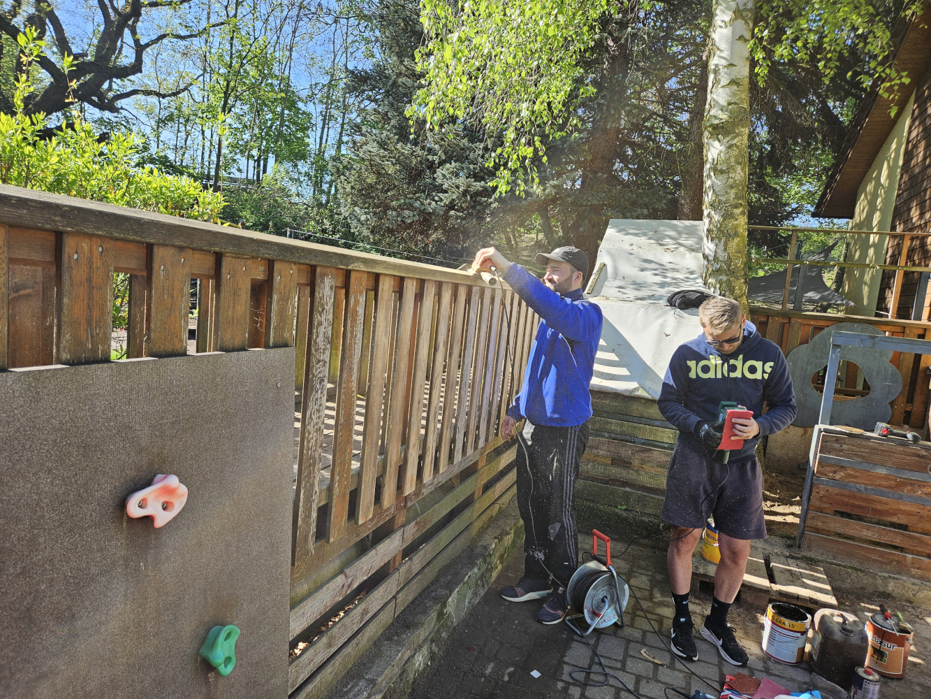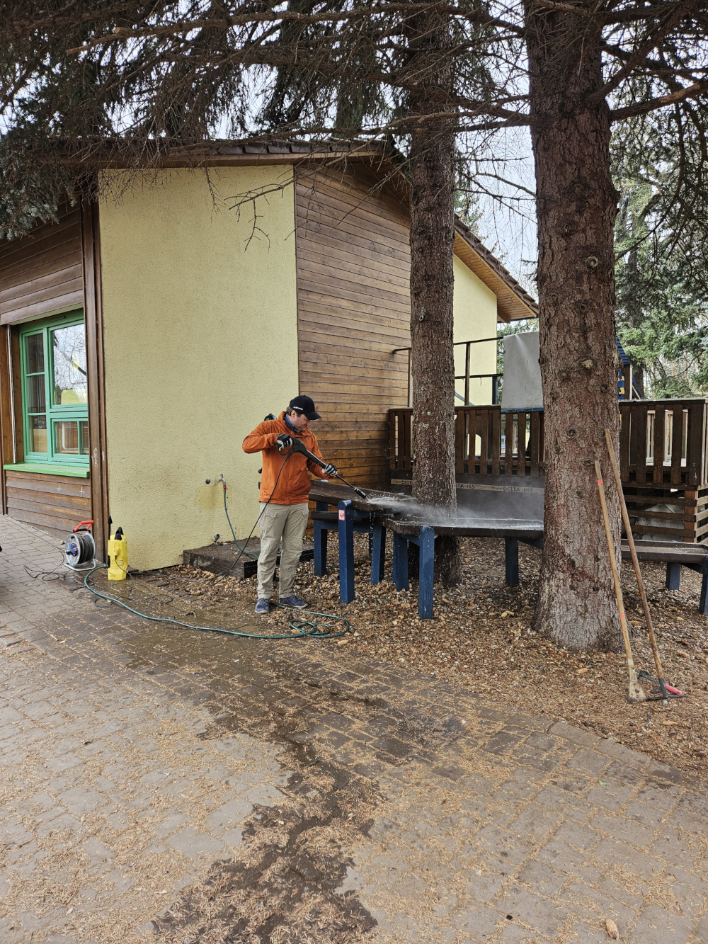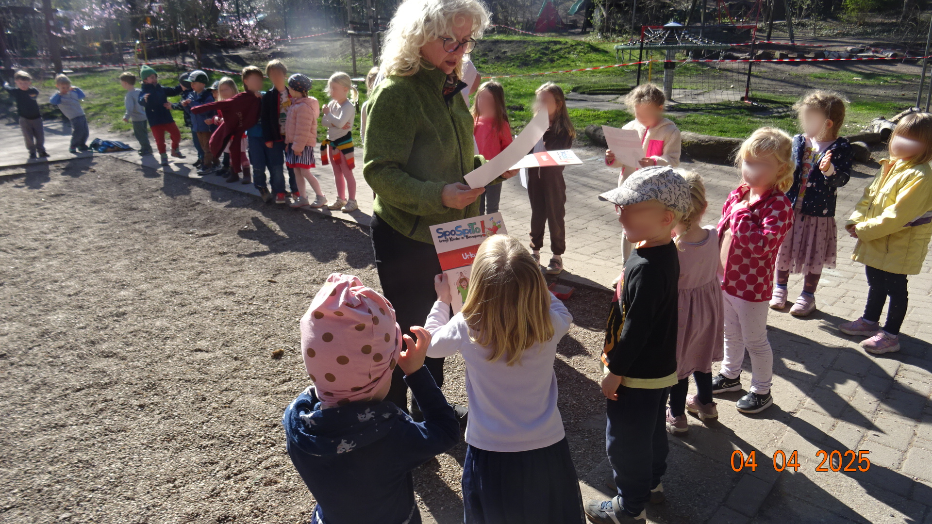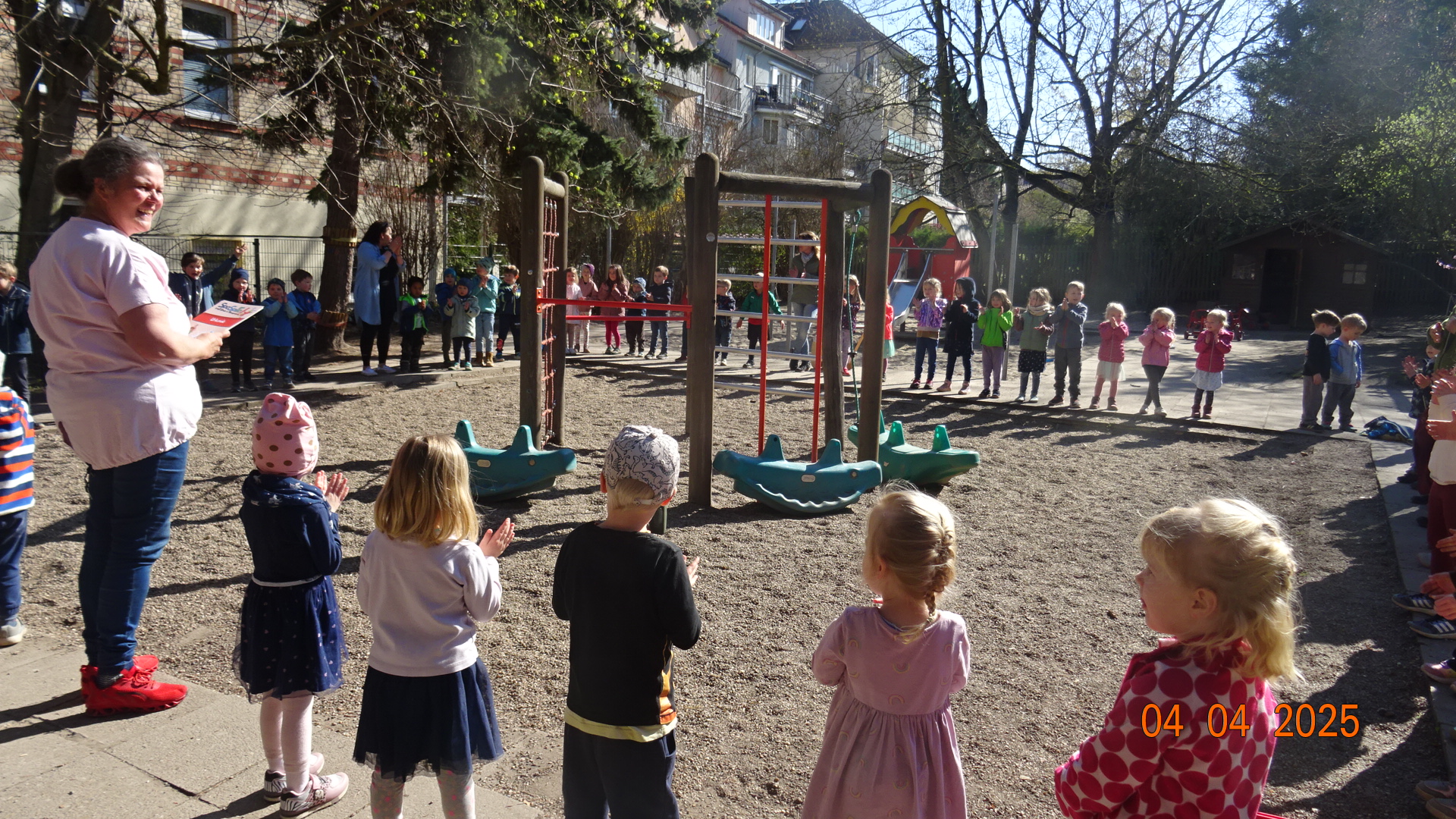 Unser zweiter Arbeitsansatz gemeinsam mit den Eltern fand bei strahlendem Sonnenschein am 26.04.2025 statt. Mit vielen fleißigen Helfern haben wir in verschiedenen Beeten Unkraut gejätet und auch die Wege davon befreit. Auf der grünen Terrasse haben wir den Sandkasten umgegraben, den Fallschutz gereinigt sowie einen Teil der Brücke und des Spielhauses abgeschliffen und neu lasiert. Auch das Schachbrett hat einen neuen Anstrich bekommen. Am Eingangsbereich haben wir Stolperstellen beseitigt, das Spielhaus im Garten gesäubert und das Lager aufgeräumt und sortiert.