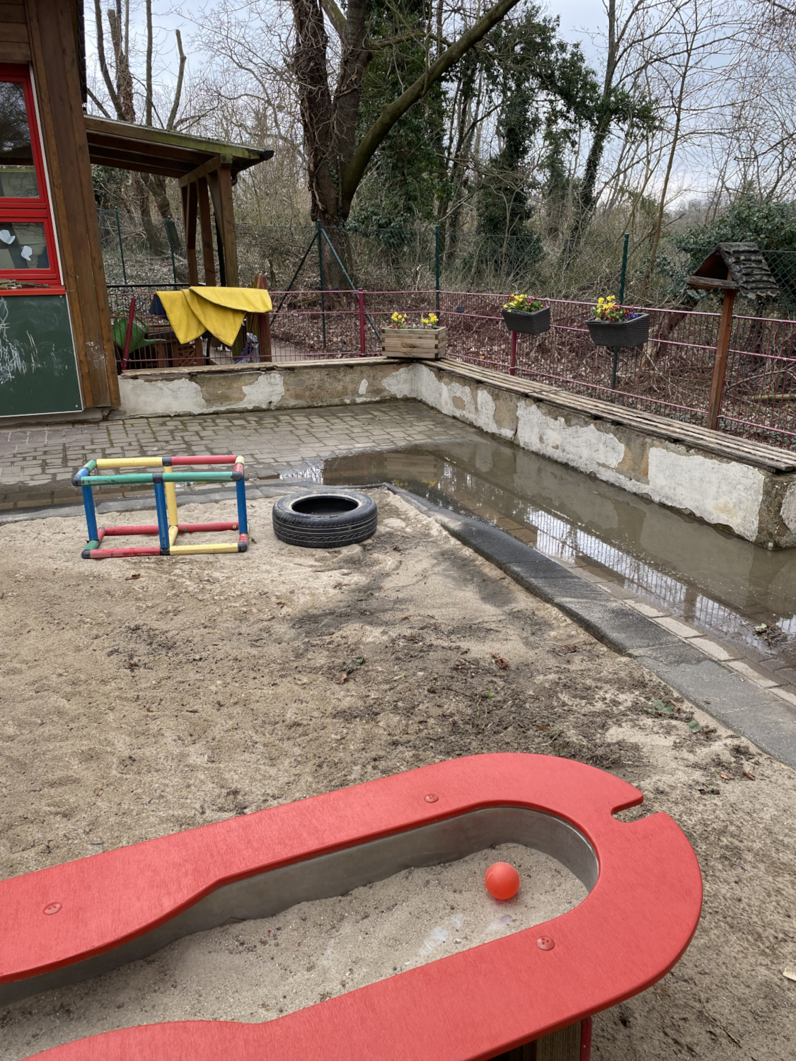 Unsere beiden Häuser (Krippen- und Kindergartenhaus) befinden sich in mitten eines großen, bepflanzten Außengeländes, welche ebenerdig durch einen überdachten Weg verbunden sind. Die Terrassen sind von allen Räumen zugänglich.