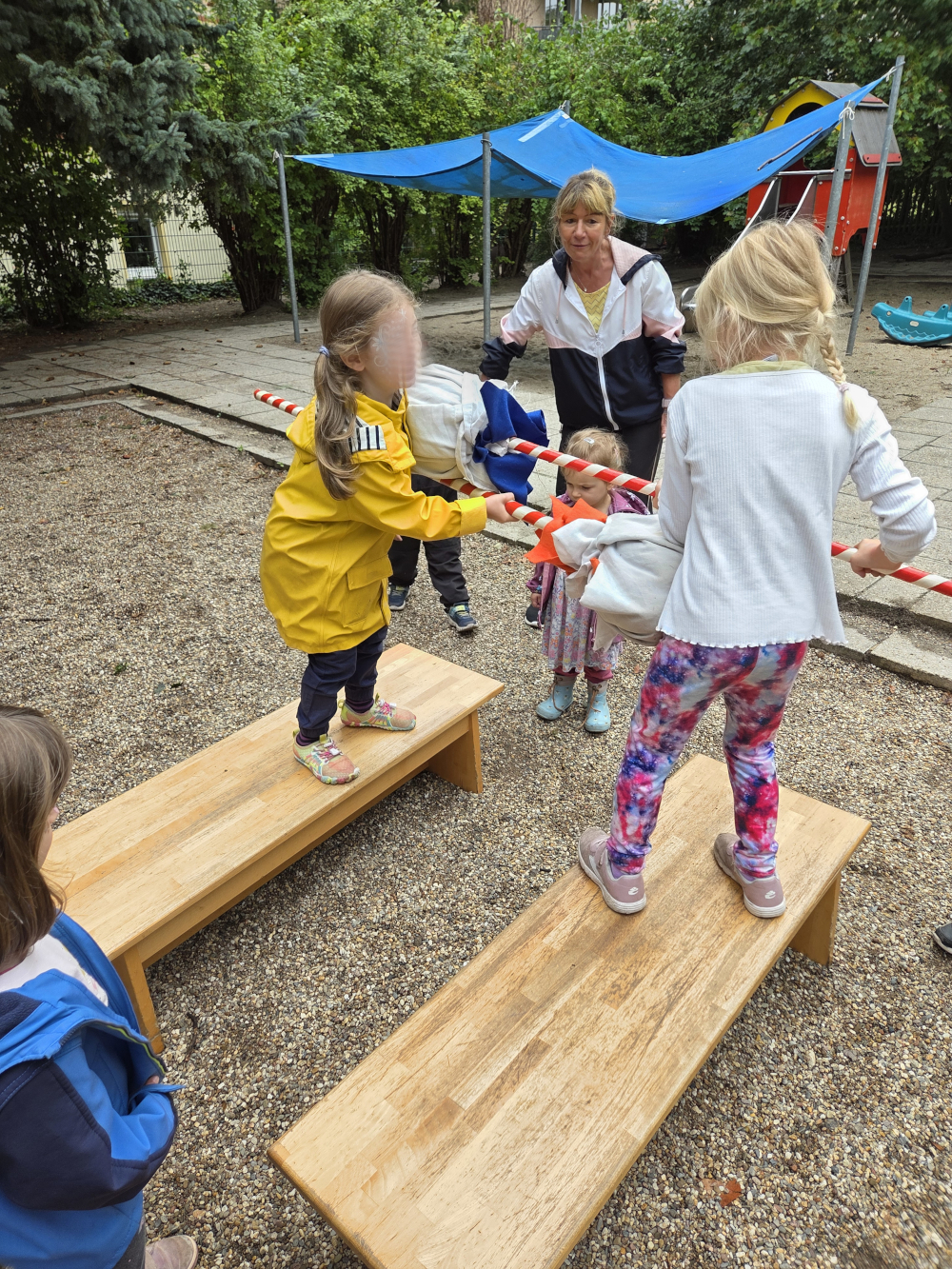 Am Dienstag stand unsere große 5km-Wanderung durch den Wald, zur Schleuse und Marina, an. Sie endete auf dem großen Abenteuerspielplatz.