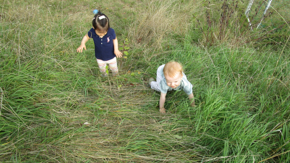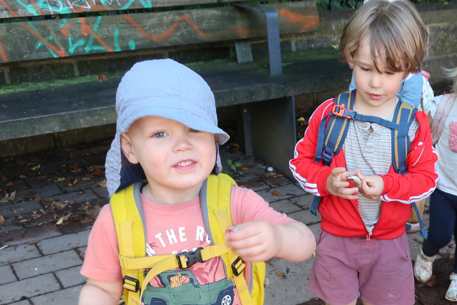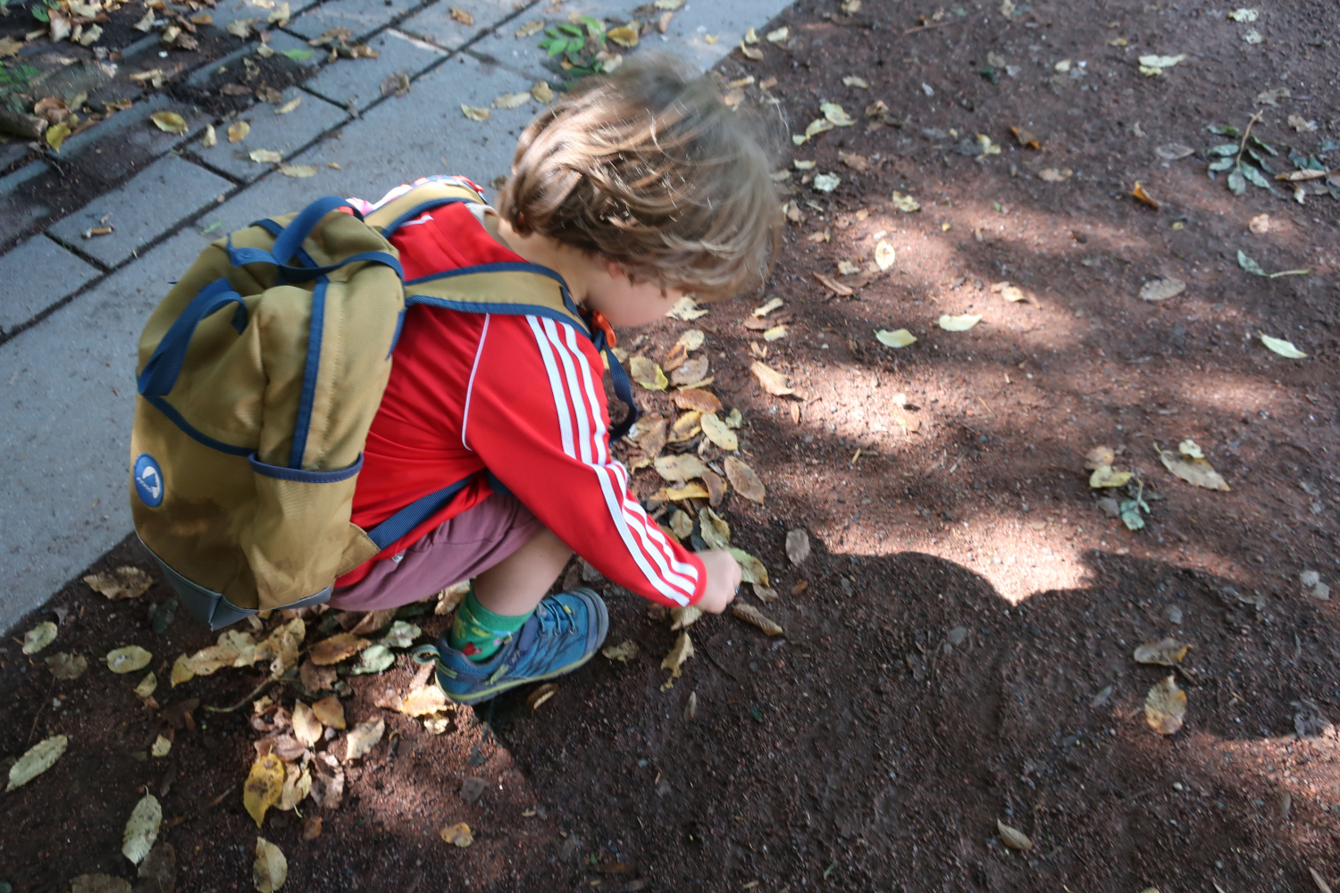 Die Gruppe der 1 bis 2-jährigen Kinder hat zum ersten Mal den angrenzenden Sportplatz erkundet. Sie haben u.a. Fußball gespielt. An den Hängen hatten die Kinder viel Spaß daran, sich auszuprobieren, wie sie nach unten und wieder nach oben kommen.