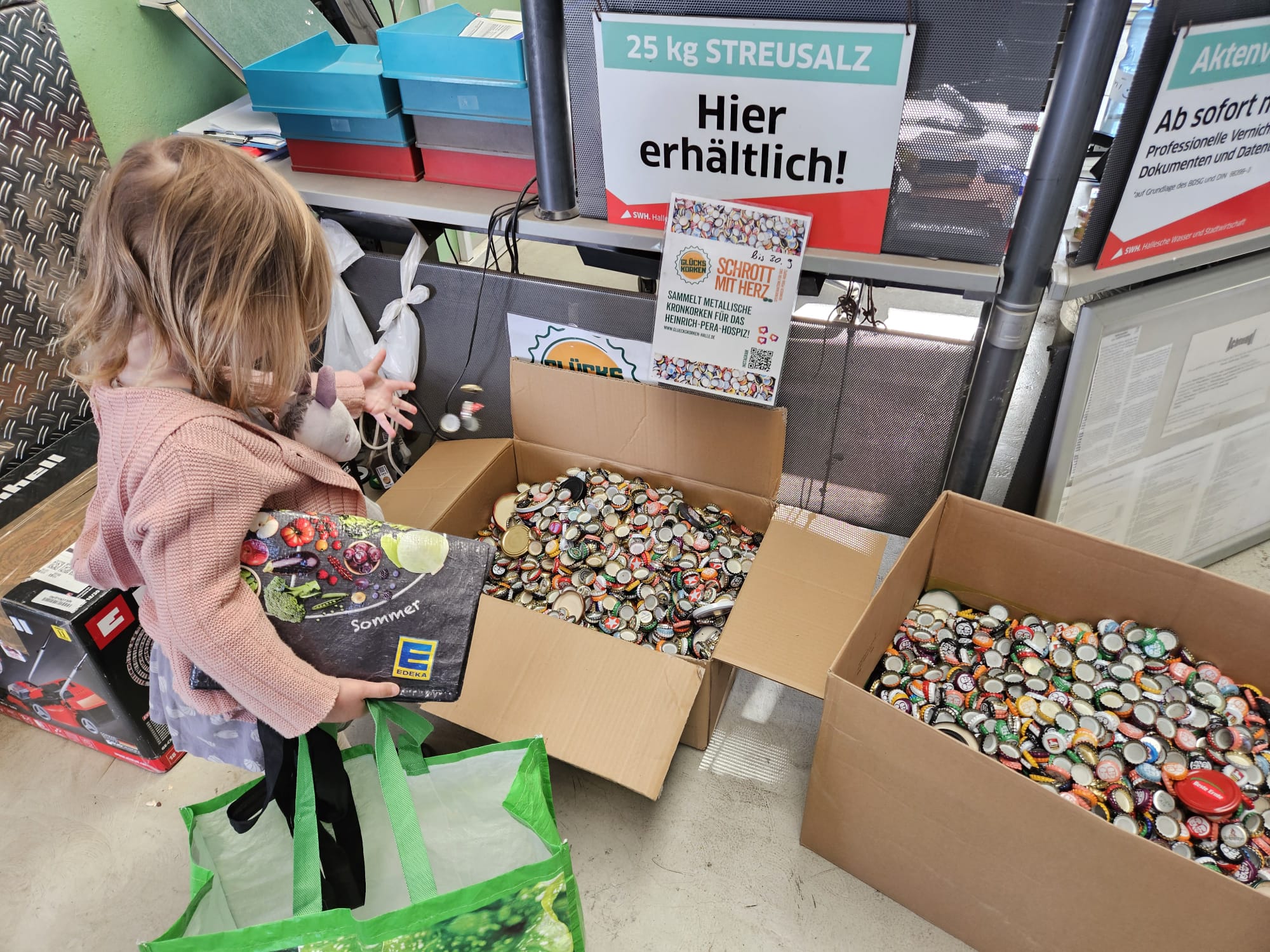 Wer den Abgabezeitraum bei uns in der Kita verpasst hat, kann noch bis zum 30. September die Glückskorken in der Hordorfer Straße oder direkt beim Heinrich-Pera-Hospiz abgeben.