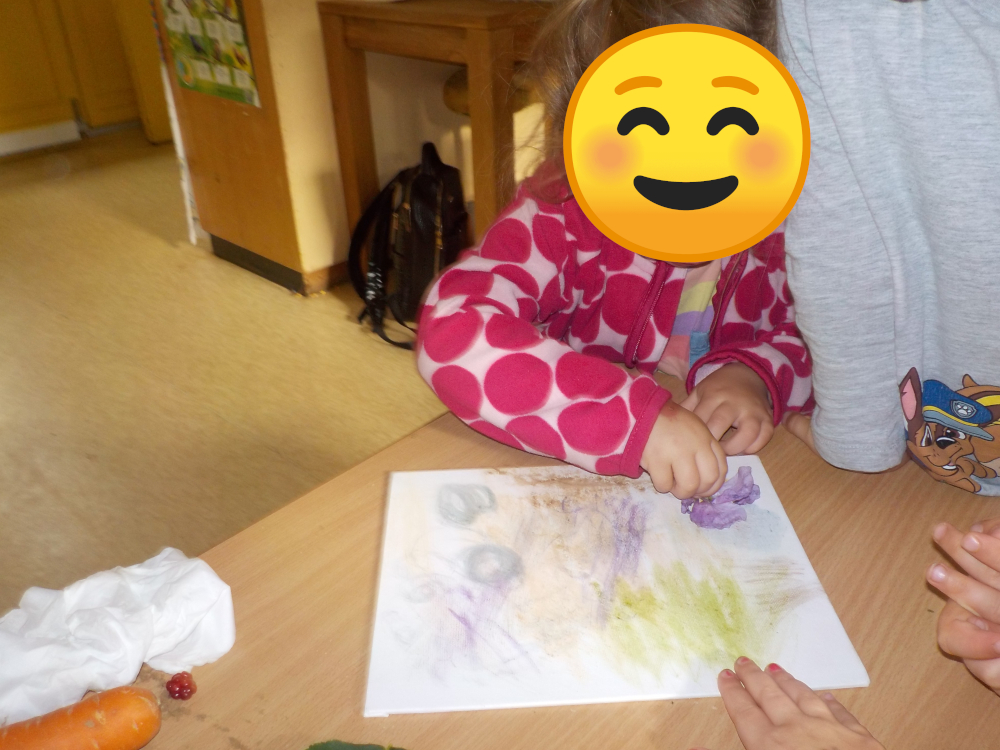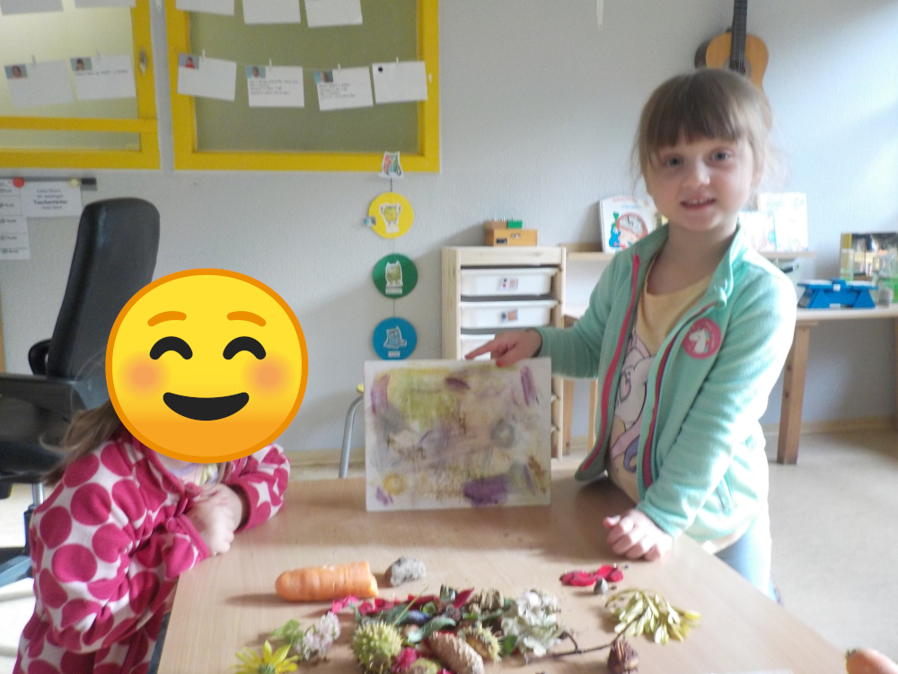 Die Kinder experimentieren mit verschieden Naturmaterialien. Dabei stellen sie sich der Frage, ob Früchte, Pflanzen und Gemüse Spuren hinterlassen. Sie erfahren bei diesem Experiment Selbstwirksamkeit und erlangen naturwissenschaftliche Kenntnisse.