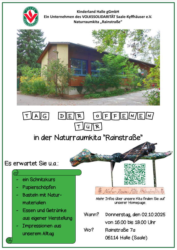 Seit Mai 2017 ist unsere Kita in Trägerschaft der Kinderland Halle gGmbH, einer Tochtergesellschaft des VOLKSSOLIDARITÄT Saale-Kyffhäuser e.V..