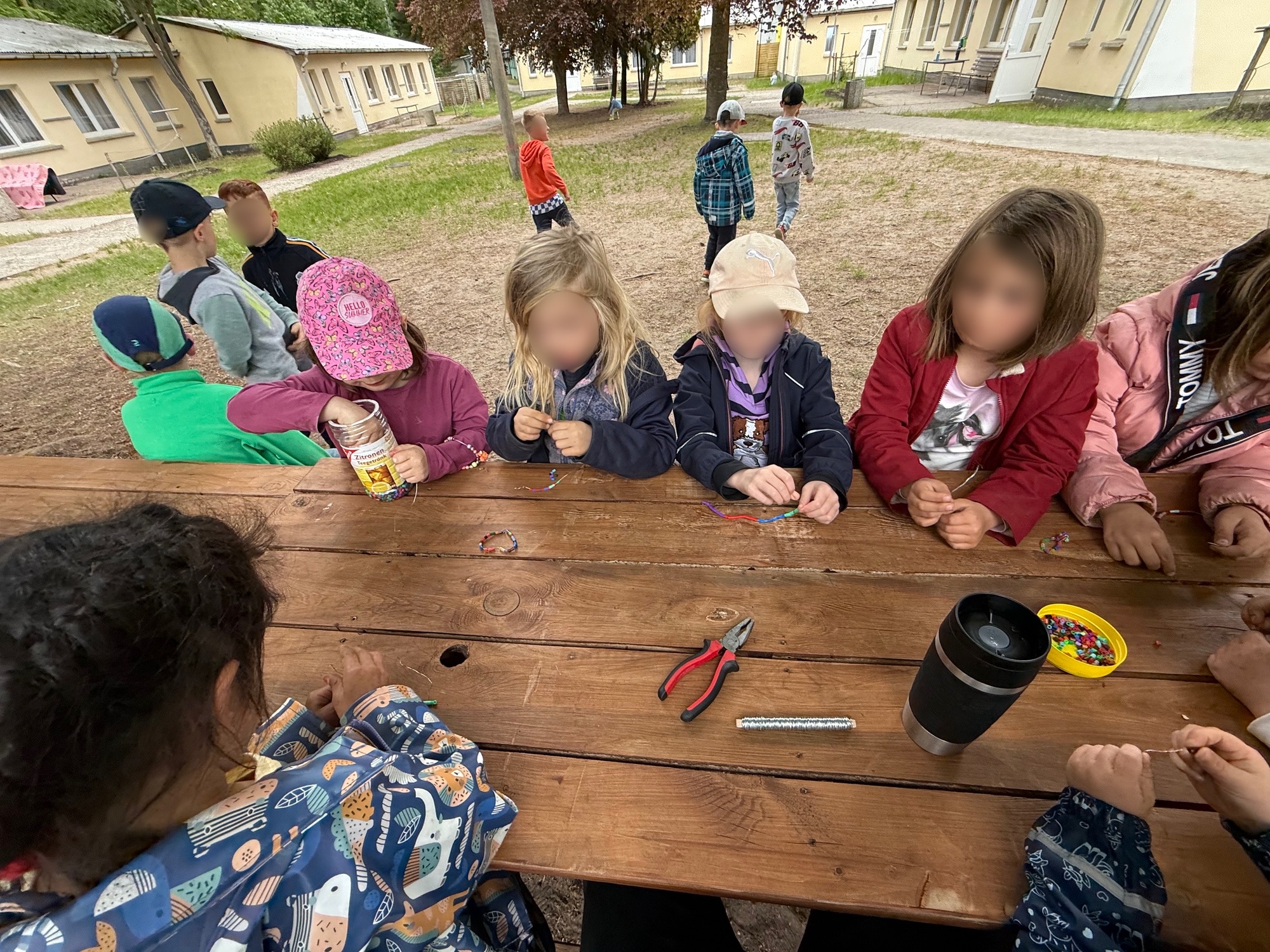 Auf dem Programm standen unter anderem ein Spaziergang durch den Wald mit spannender Entdeckungstour, ein gemeinsamer Besuch im Tierpark sowie ein Eisessen. Darüber hinaus gab es zahlreiche kreative Angebote, wie das Basteln von Blumen und Anhängern, das Gestalten von Blumensträußen sowie die Anfertigung von Orden – unter anderem als Geschenk für die Mütter. Ein besonderes Highlight war der über die gesamte Woche hinweg angebotene Springseil-Wettbewerb.
