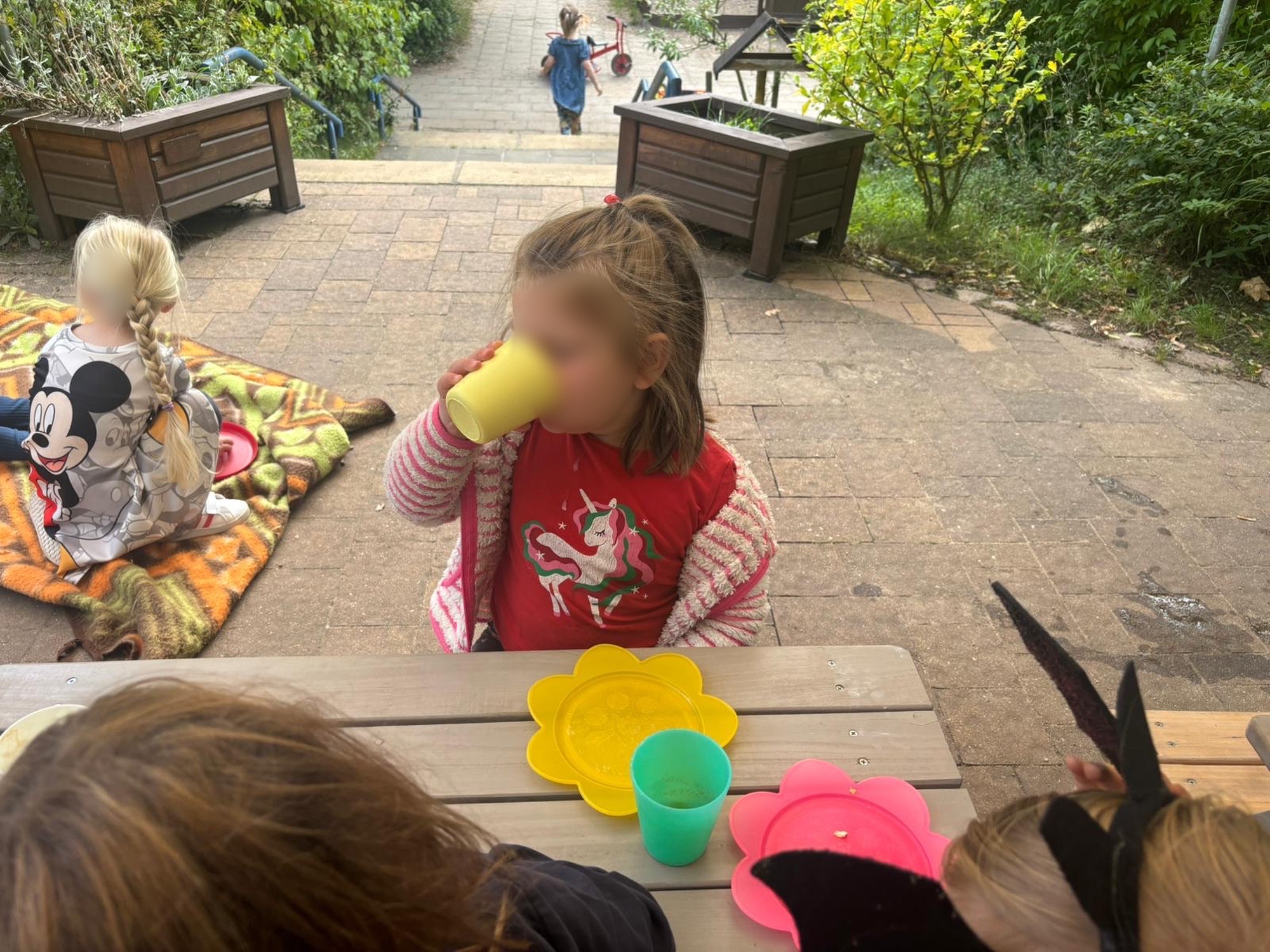 Die Kinder konnten den gesamten Prozess – vom Pflücken bis hin zum fertigen Getränk – aktiv miterleben und dabei entdecken, wie wertvoll unsere natürlichen Ressourcen sind. Das gemeinsame Ausprobieren förderte nicht nur das Verständnis für Nachhaltigkeit, sondern bereitete allen auch viel Freude. Beim anschließenden Vesper wurde der selbst hergestellte Saft mit Genuss getrunken – ein echtes Highlight im Kita-Alltag.