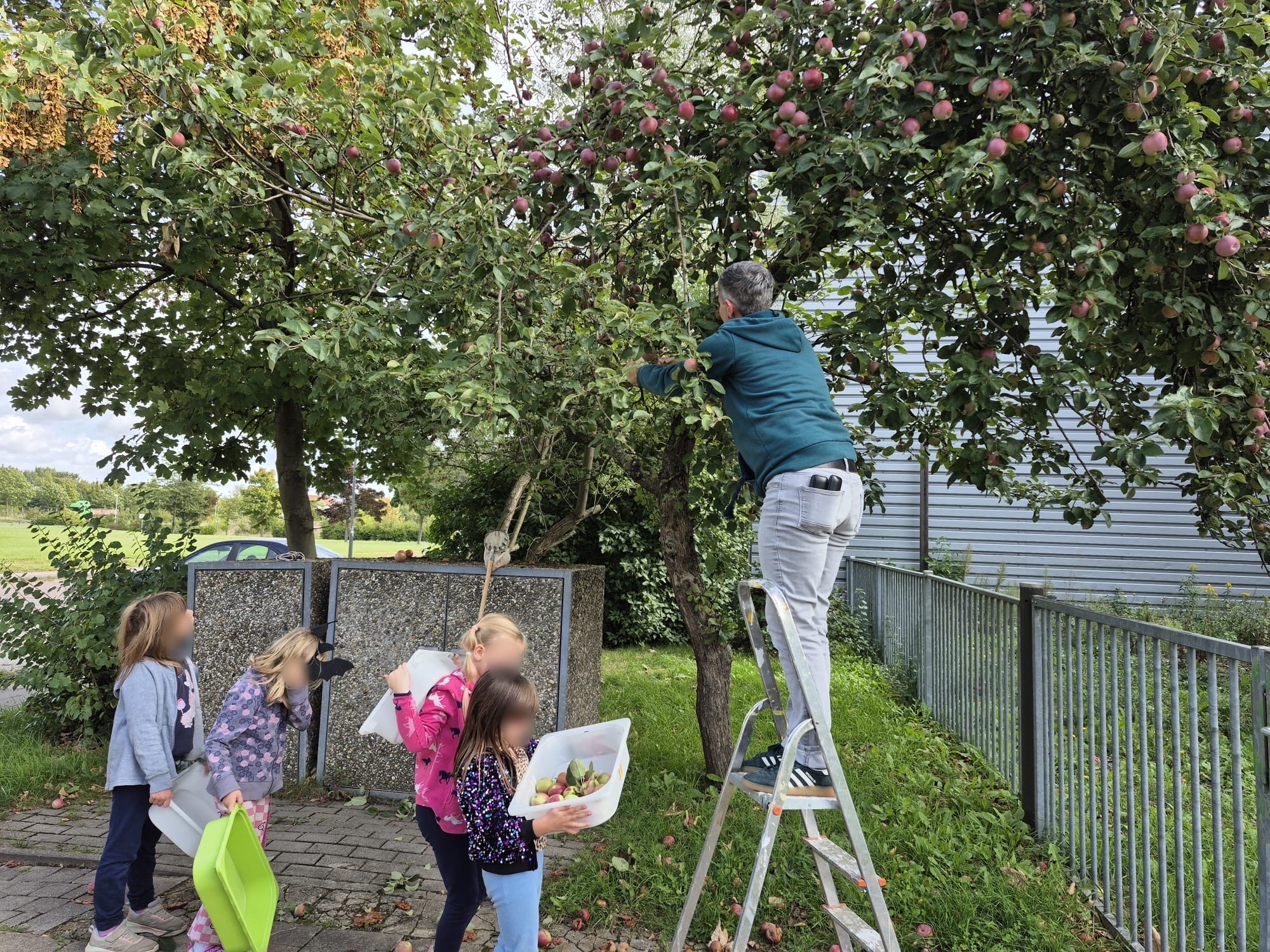 An unserer Kita steht ein großer Apfelbaum, dessen Früchte die Kinder in diesem Jahr mit Begeisterung geerntet haben. Gemeinsam wurden die Bio-Äpfel sorgfältig gesammelt und anschließend mit unserer Entsafter-Maschine zu frischem Apfelsaft verarbeitet.