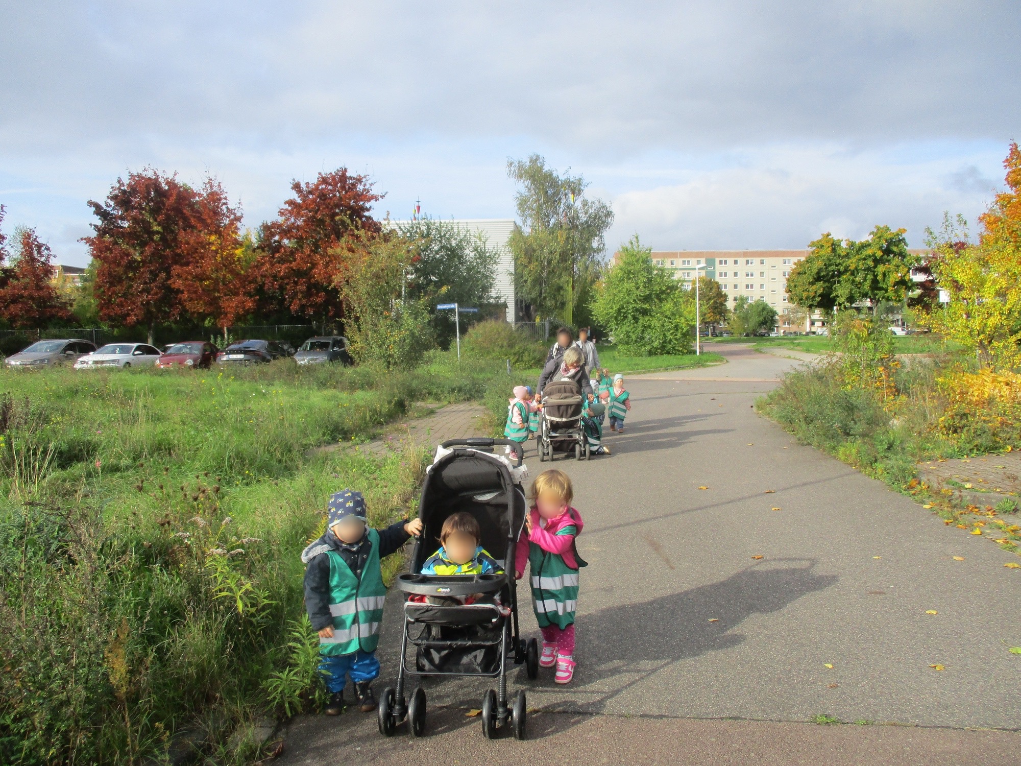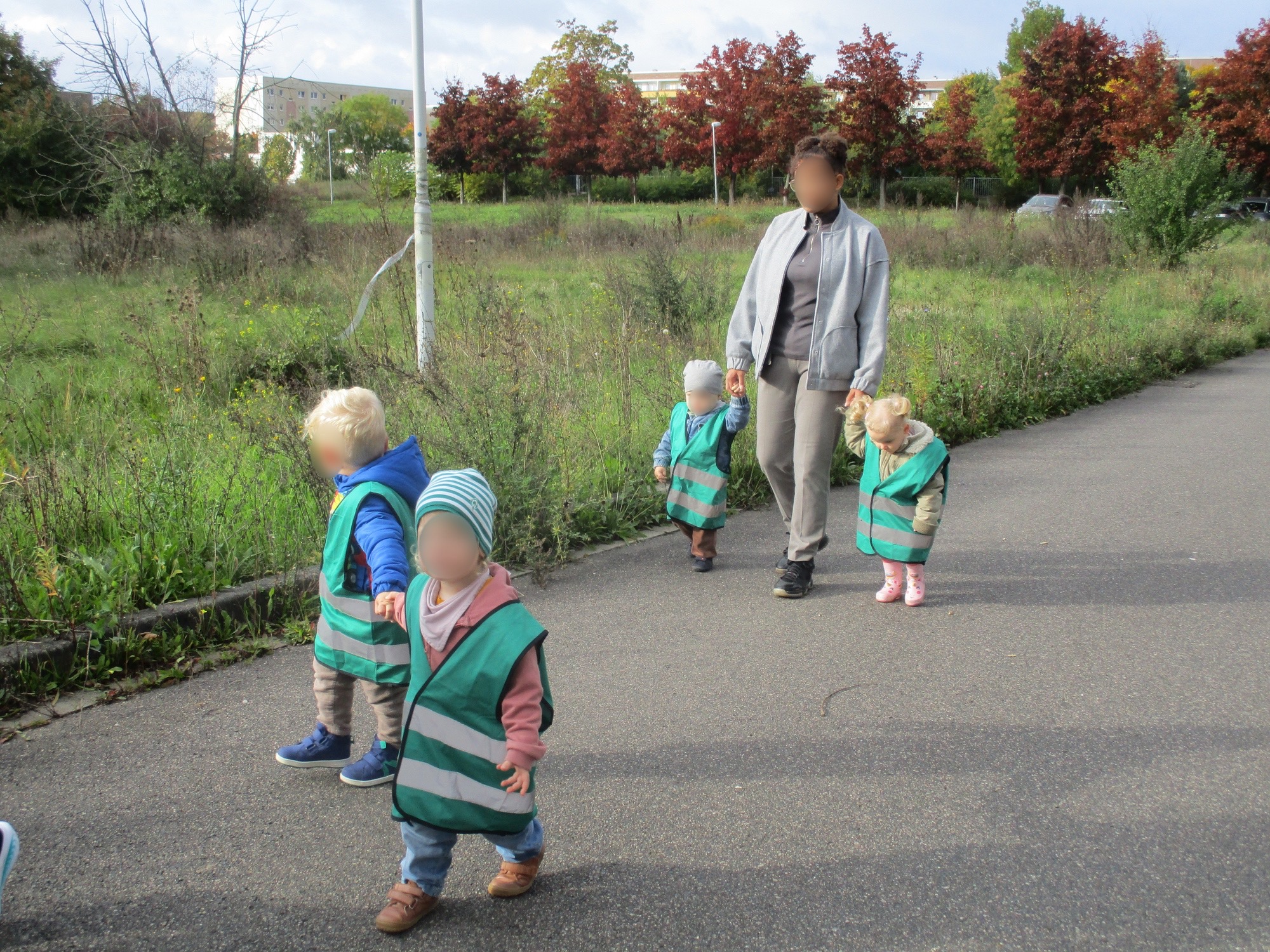 An einem solchen Tag geht die Kindergruppe gemeinsam hinaus in die nahegelegene Natur – auf eine Wiese, in den Wald oder an einen kleinen Bach. Dort können die Kinder krabbeln, rennen, Blätter sammeln, Käfer beobachten und das Rauschen der Bäume hören. Es geht nicht um Leistung, sondern um Entdecken, Fühlen und Staunen. Die Erzieherinnen begleiten und unterstützen die Kinder dabei, ihre Umwelt mit Neugier zu erforschen und ein Gefühl für Natur und Jahreszeiten zu entwickeln.