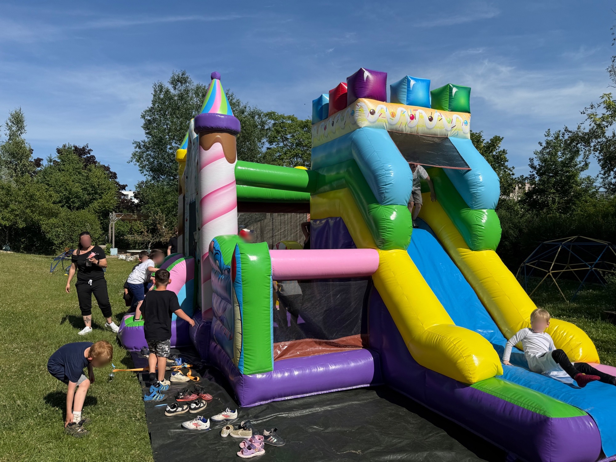 Am Nachmittag startete um 16:00 Uhr das Fest auf dem Kitagelände. Die Vorschulkinder führten mit Unterstützung ihrer BezugserzieherInnen verschiedene liebevoll einstudierte Aufführungen und begeisterten damit ihre Familien. Im Anschluss konnten sich die Kinder an verschiedenen Stationen frei bewegen – unter anderem gab es Kinderschminken, eine Hüpfburg, Bastelangebote wie Schmetterlinge gestalten, sowie ein reichhaltiges Buffet.