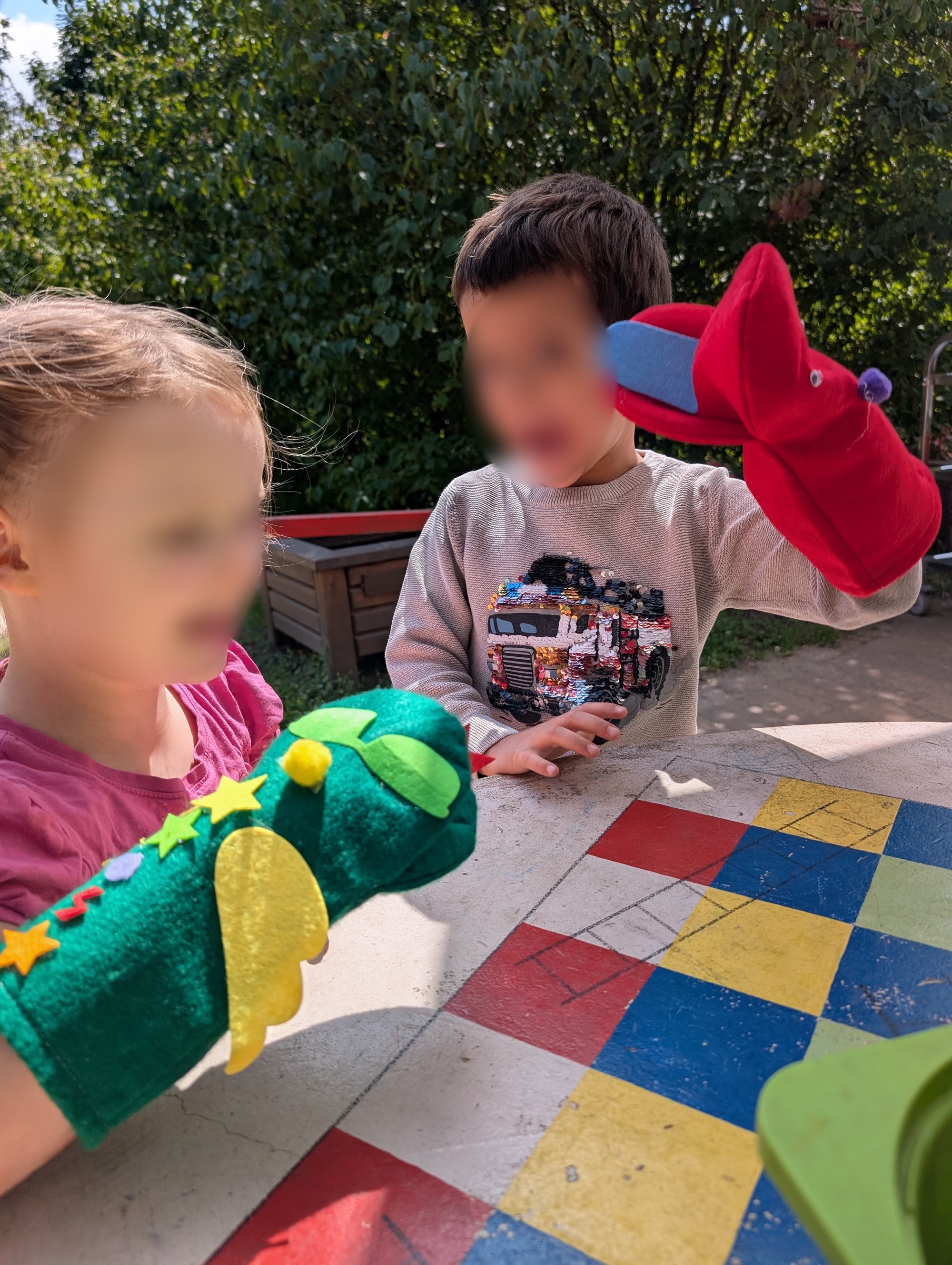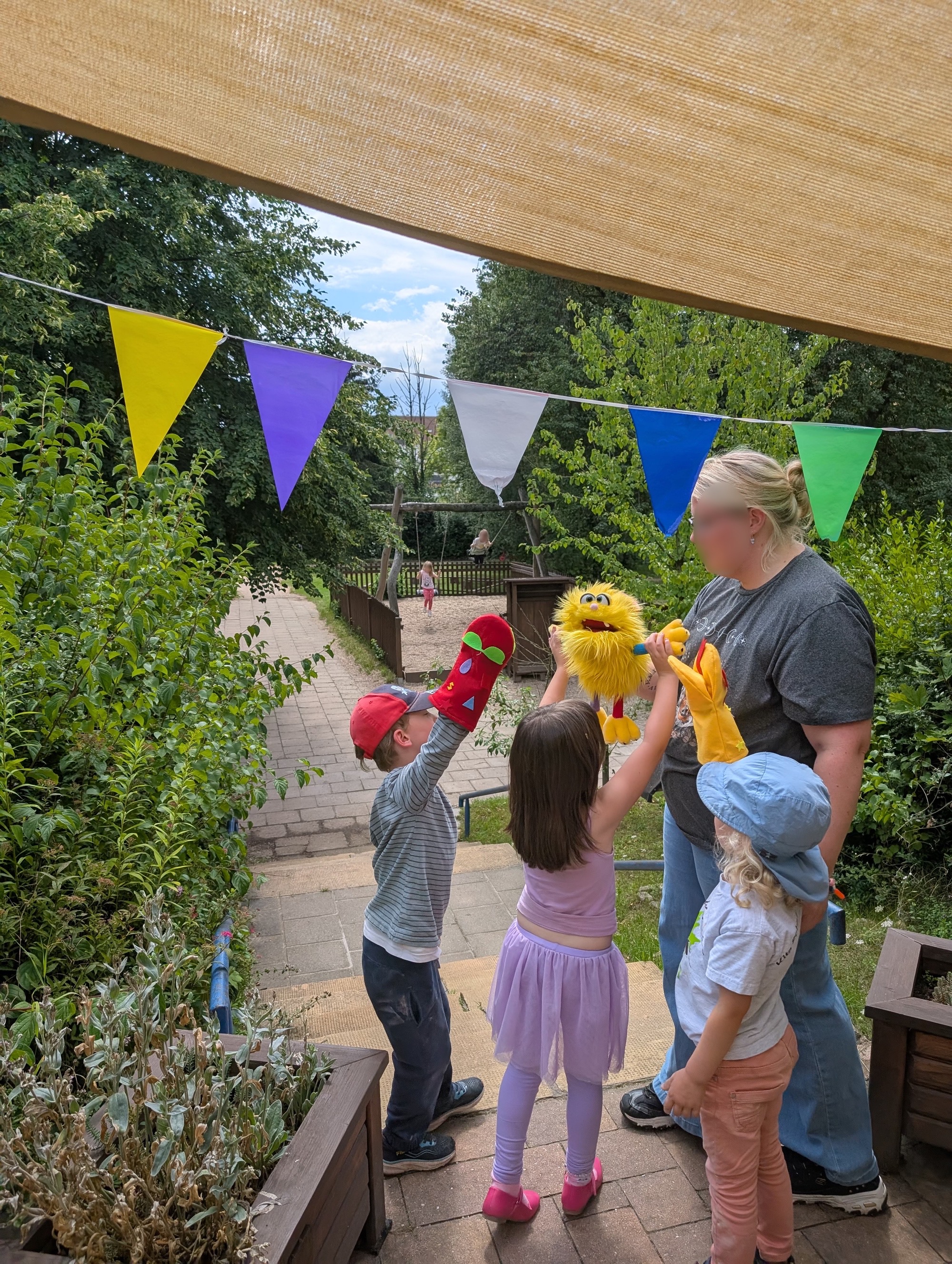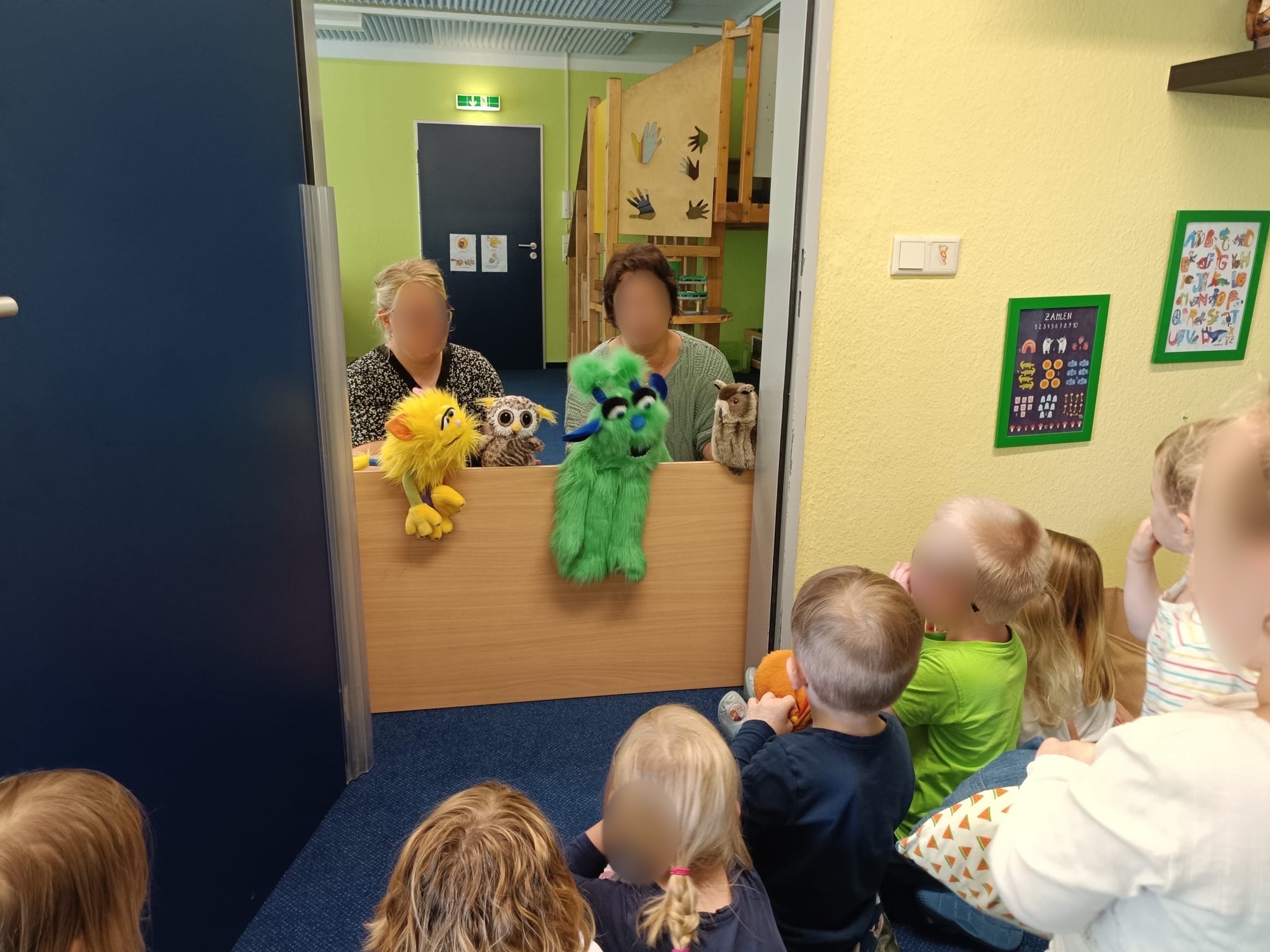 Ein besonderes Highlight ist die kreative Werkstatt, in der die Kinder eigene Handpuppen gestalten. Zum Abschluss präsentieren die Erzieherinnen die Puppen in einer kleinen Aufführung – ein schöner Moment, um Erlebtes zu zeigen und stolz zu sein.