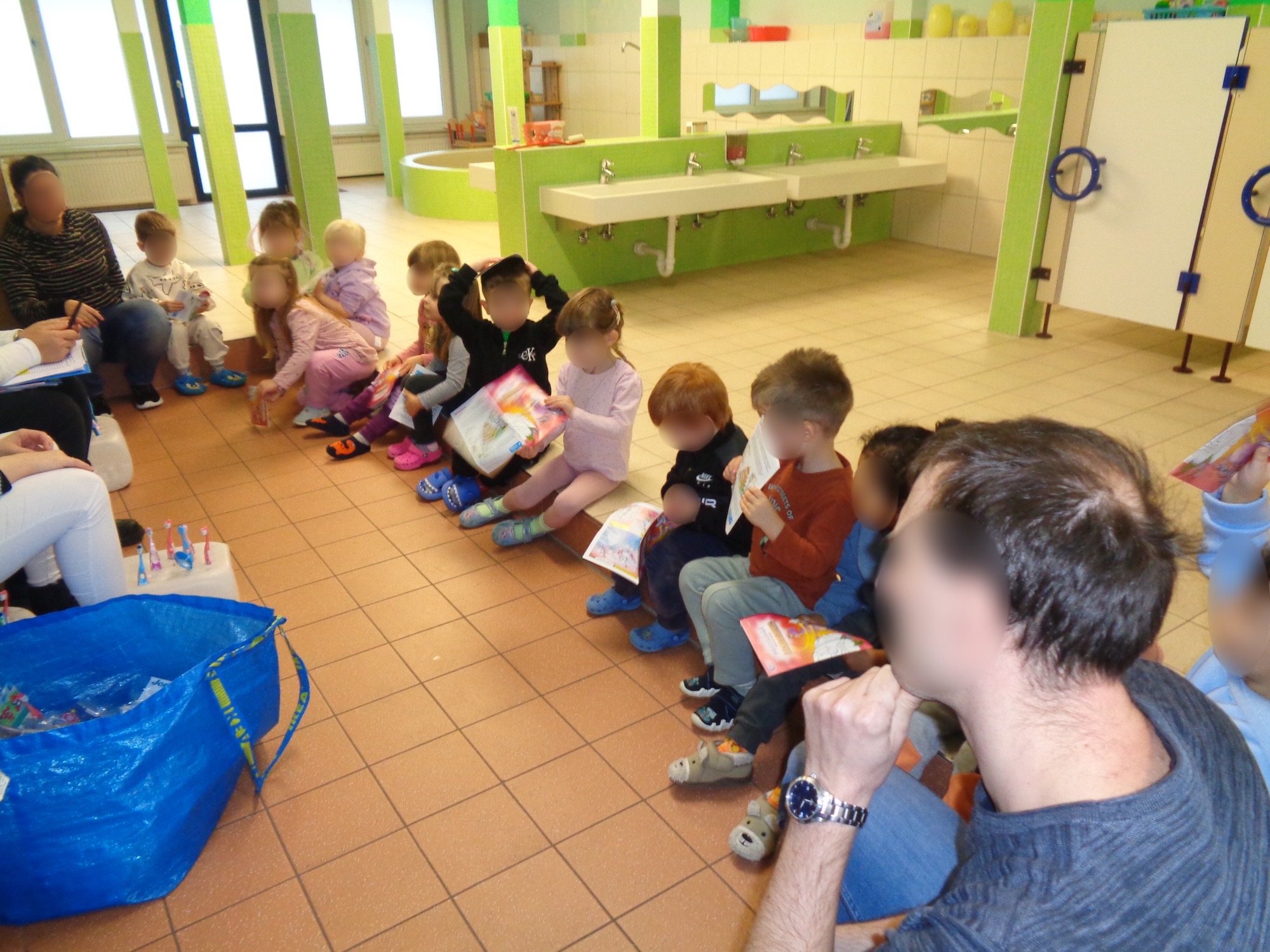 Am 04. März 2025 besuchte uns die Zahnärztin für eine kindgerechte Aufklärung zur Zahngesundheit. Gemeinsam mit den Kindern sprach sie darüber, welche Lebensmittel gesund für die Zähne sind und welche vermieden werden sollten. Anschließend demonstrierte sie die richtige Zahnputztechnik, die die Kinder direkt selbst umsetzten. Nach dem Zähneputzen überprüfte die Zahnärztin die Putztechnik der Kinder und gab wertvolle Tipps für eine optimale Zahnpflege.