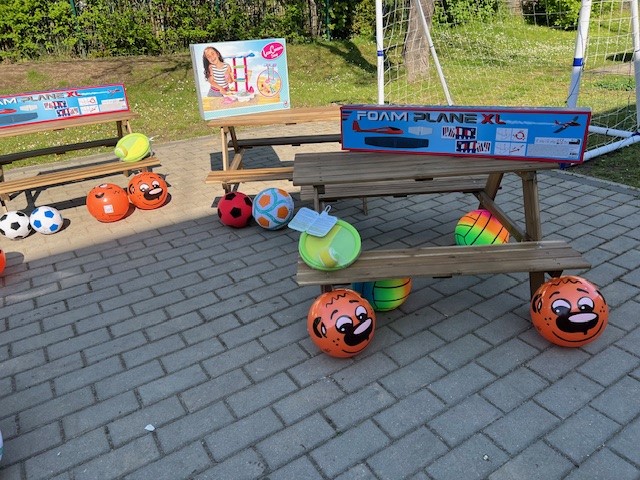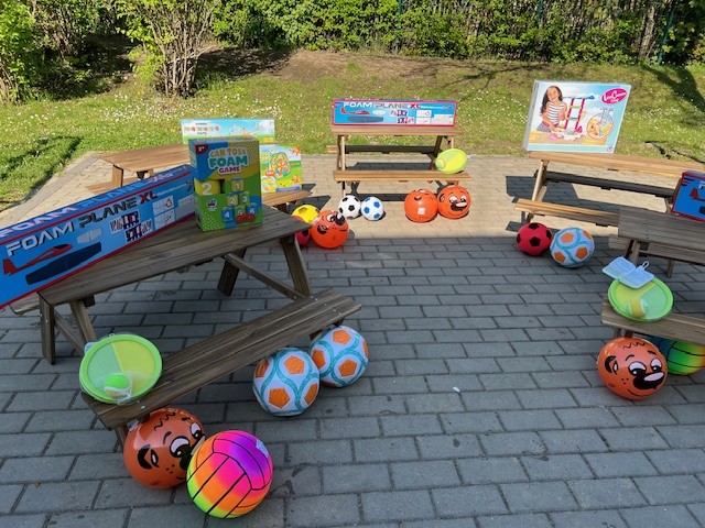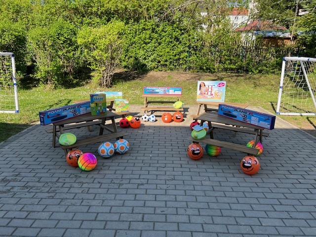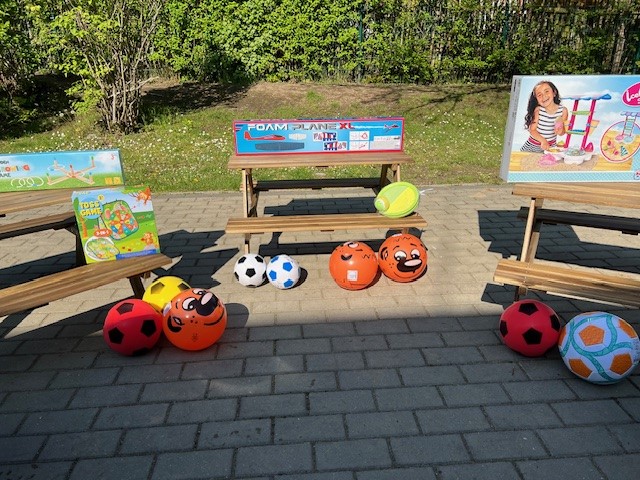 Weiterhin haben wir ganz viele tolle Bälle bekommen und können nun Fußball spielen und uns die Bälle zuwerfen. Es gab auch noch ganz tolle Spielsachen für draußen.